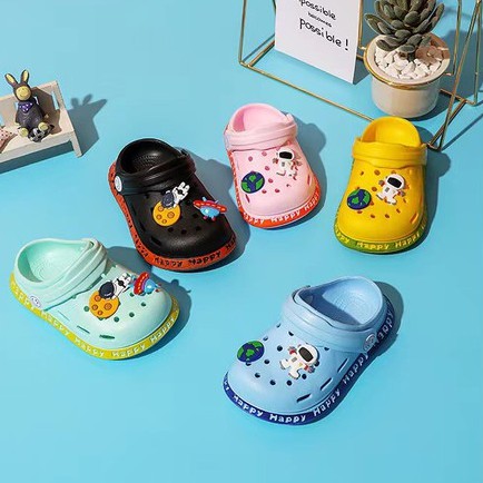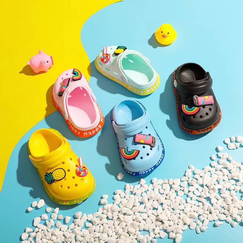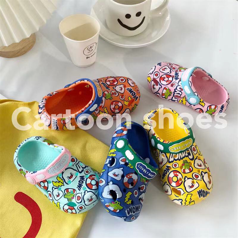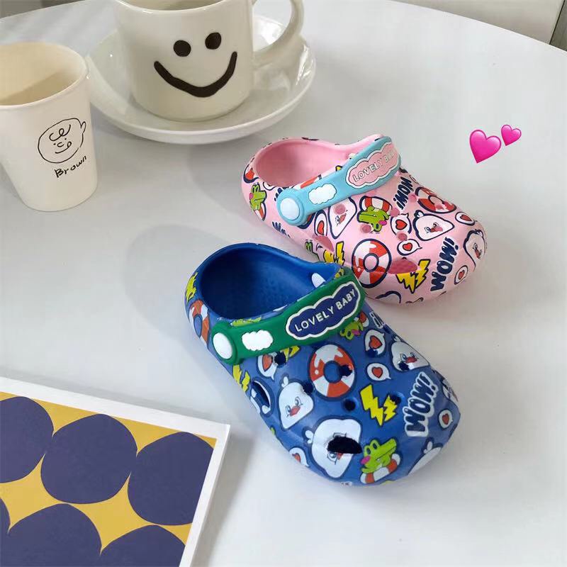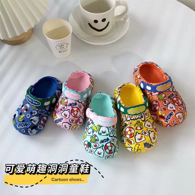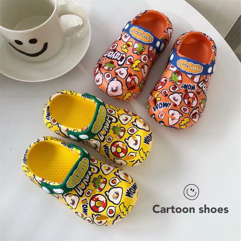 รองเท้าหลุมเด็กชายฤดูร้อนสไตล์ใหม่แฟชั่นการ์ตูนห้องน้ํากันลื่นพื้นนิ่มน้ําหนักเบาสวมใส่ด้านนอกชายหาดรองเท้าแตะระบายอากาศ