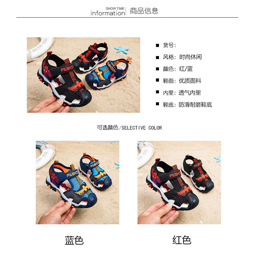 รองเท้าแตะปิดนิ้วเท้าสำหรับเด็กอายุ 3-12 ปี รองเท้าชายหาดกีฬาที่ระบายอากาศได้