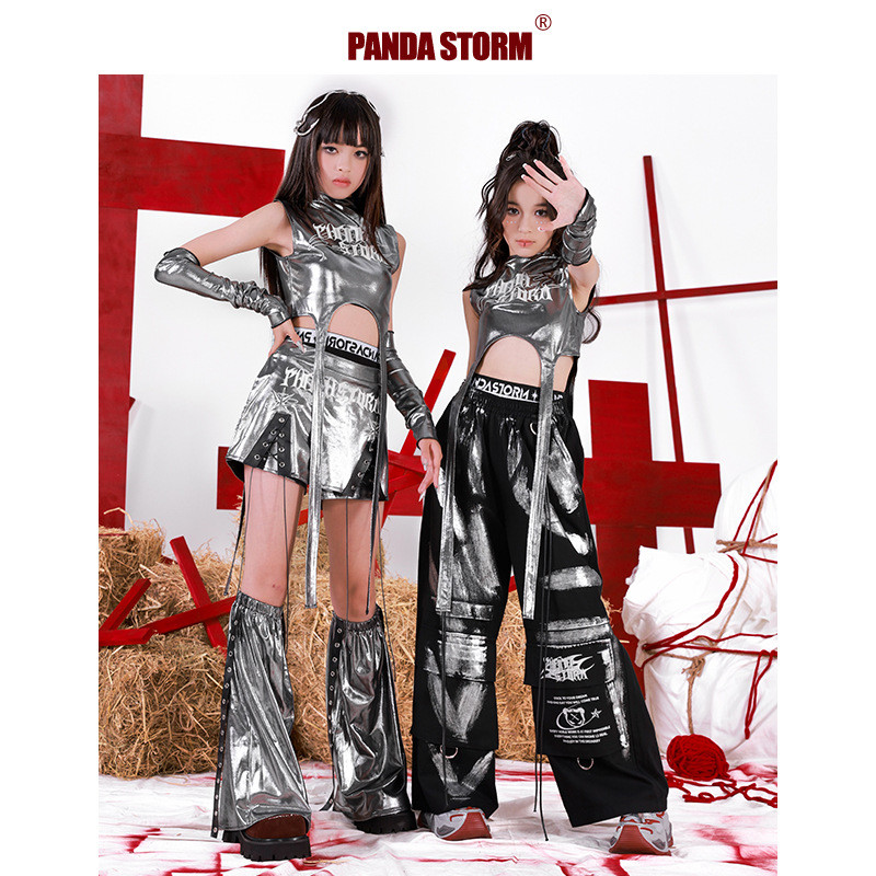 ?พร้อมส่ง? เต้นรำเนตรนารี ชุดกระโปรงสะดือ Jazz / ชุดเต้นโชว์เด็กฮิปฮอป