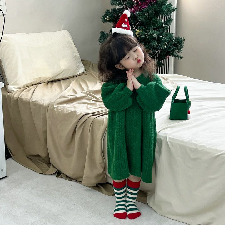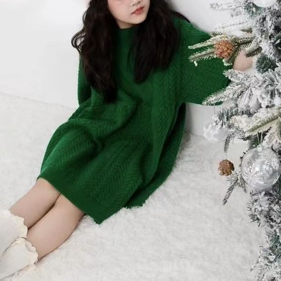 [ริโคนนี] คริสต์มาสปีใหม่ผลิตภัณฑ์ใหม่ฤดูใบไม้ร่วงฤดูหนาวสาวบิดกลางความยาวเสื้อกันหนาวชุดกลางเด็กเล็กหลวมสีทึบสไตล์ย้อนยุคเสื้อสวมหัวเด็ก สวี