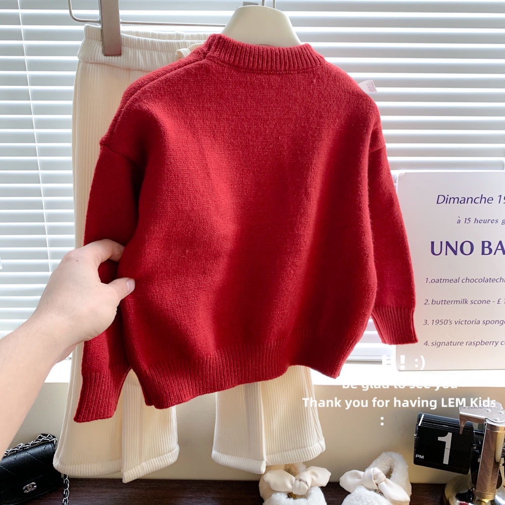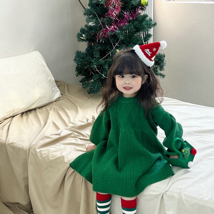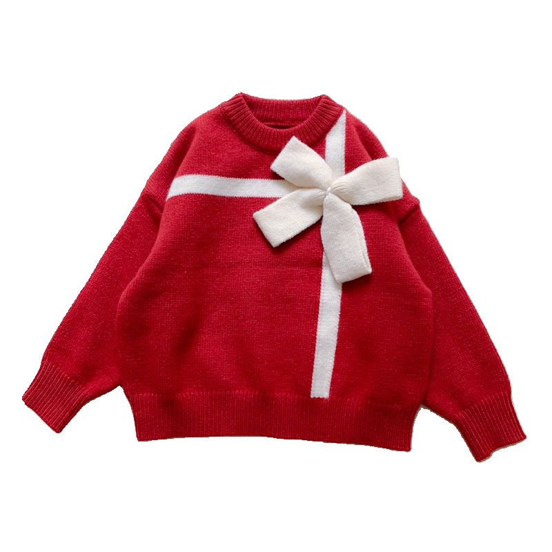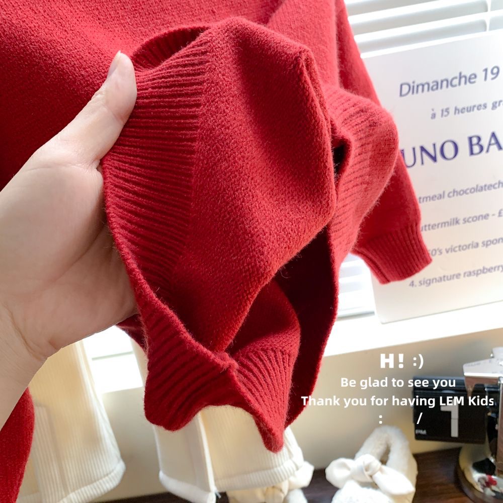 [ปีใหม่/ชุดคริสต์มาส] 2025สาวน่ารักสุดน่ารักหมีเสื้อกันหนาวคลุมด้วยผ้าสวมใส่ปีใหม่~เสื้อสวมหัวฤดูใบไม้ร่วงฤดูหนาวอินขนาดเล็กขนาดกลางเวอร์จินสาวทารกถักเสื้อกันหนาวคริสต์ม