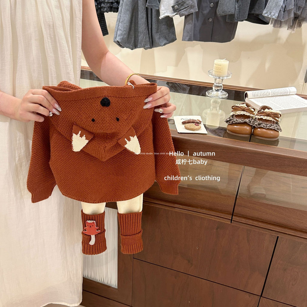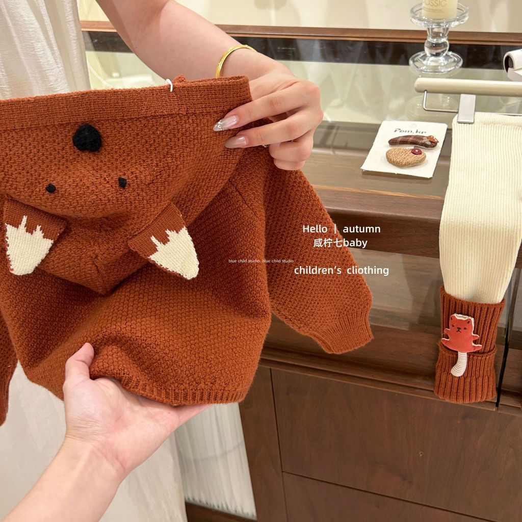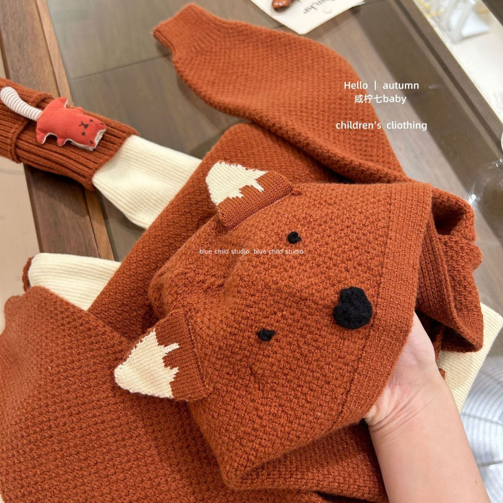 [ปีใหม่/ชุดคริสต์มาส] 2025สาวน่ารักสุดน่ารักหมีเสื้อกันหนาวคลุมด้วยผ้าสวมใส่ปีใหม่~เสื้อสวมหัวฤดูใบไม้ร่วงฤดูหนาวอินขนาดเล็กขนาดกลางเวอร์จินสาวทารกถักเสื้อกันหนาวคริสต์ม