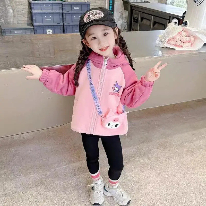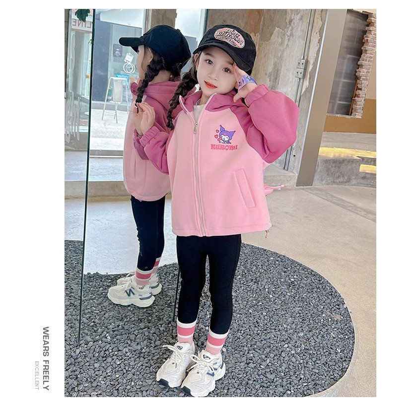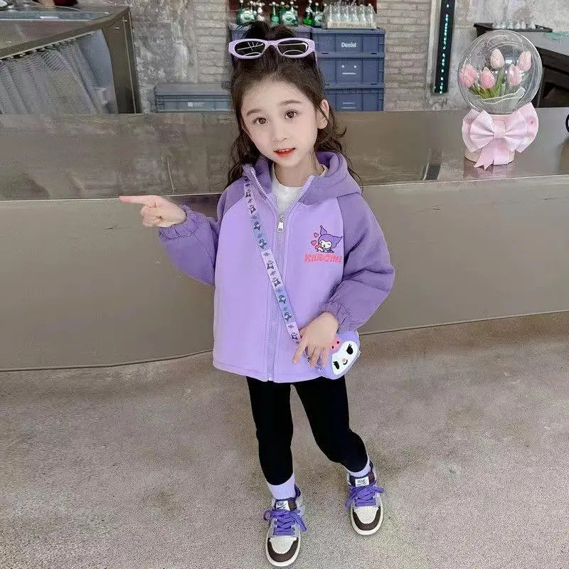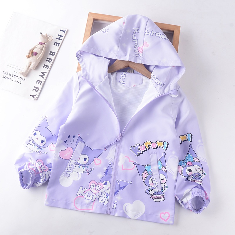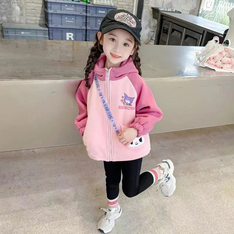 [100-160] Kuromi Jacket Girls Hooded Top Spring Autumn Hooded Small Jacket University T