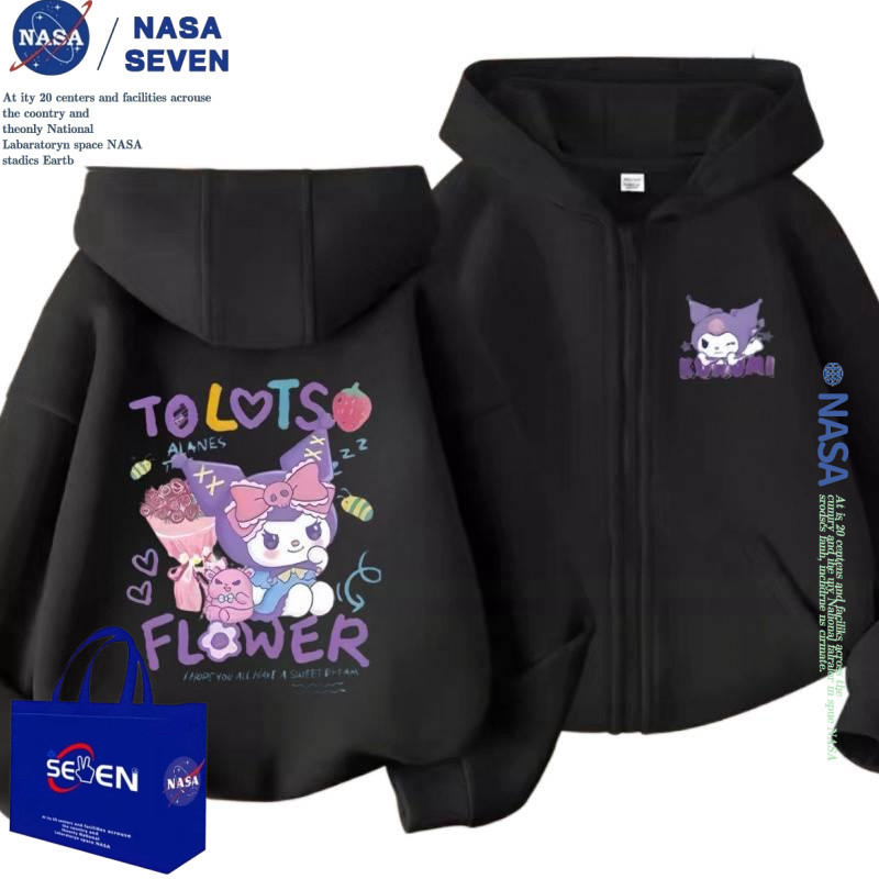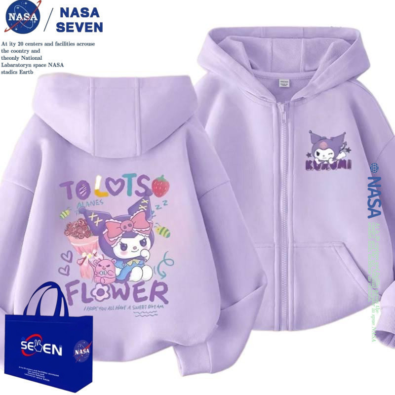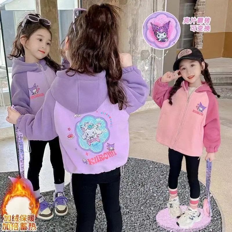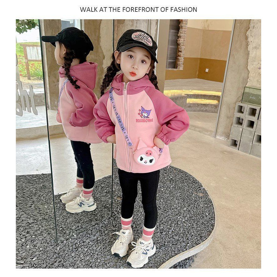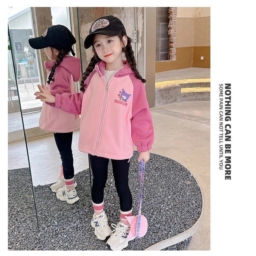 [100-160] Kuromi Jacket Girls Hooded Top Spring Autumn Hooded Small Jacket University T