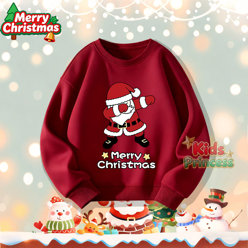 (จัดส่งตลอด 24 ชั่วโมง) สินค้าใหม่ เทศกาลคริสต์มาส 2026 kids คอกลม เสื้อวีนที่แขนยาว เสื้อวินเทจคอกลม 100% ผ้าใบหม้อ W68