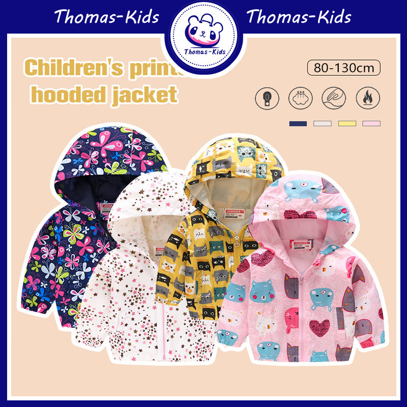 [THOMAS KIDS] เสื้อเด็กแฟชั่นการ์ตูนพิมพ์รูปแบบฤดูใบไม้ร่วงแจ็คเก็ตซิปเสื้อกันหนาวหมวกสําหรับเด็กผู้ชายผู้หญิง