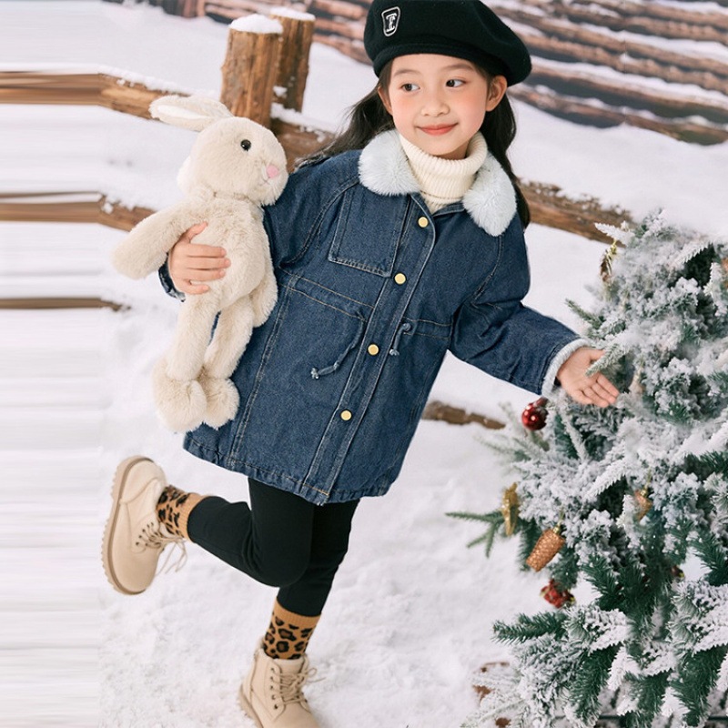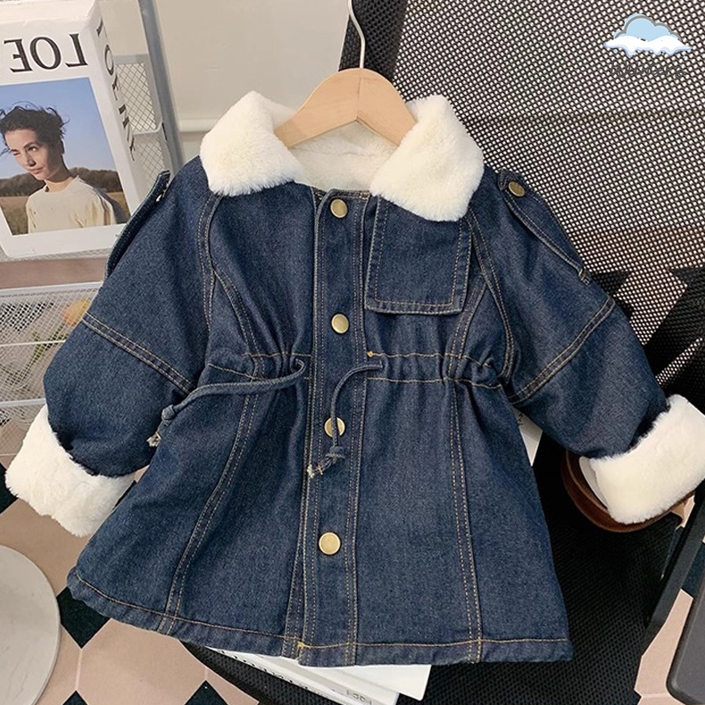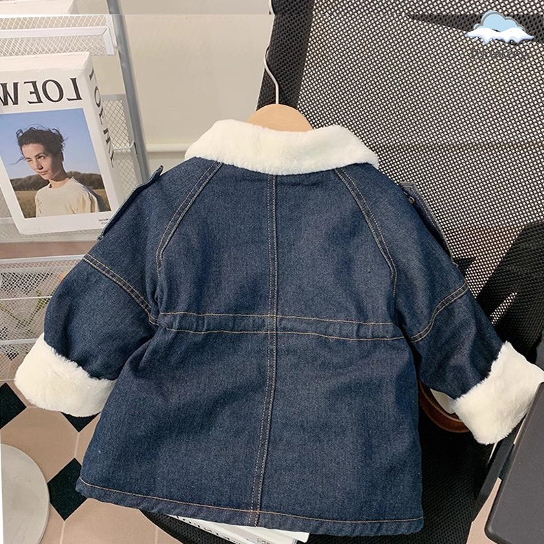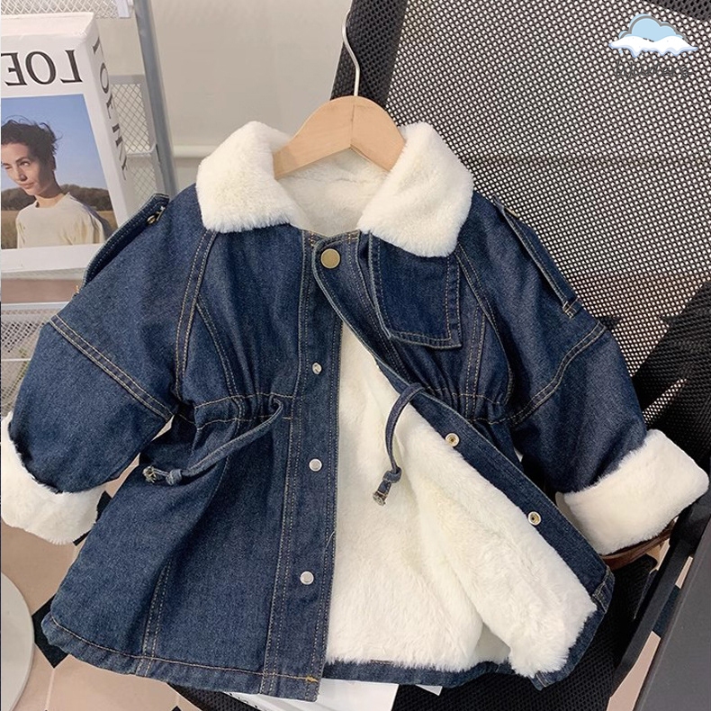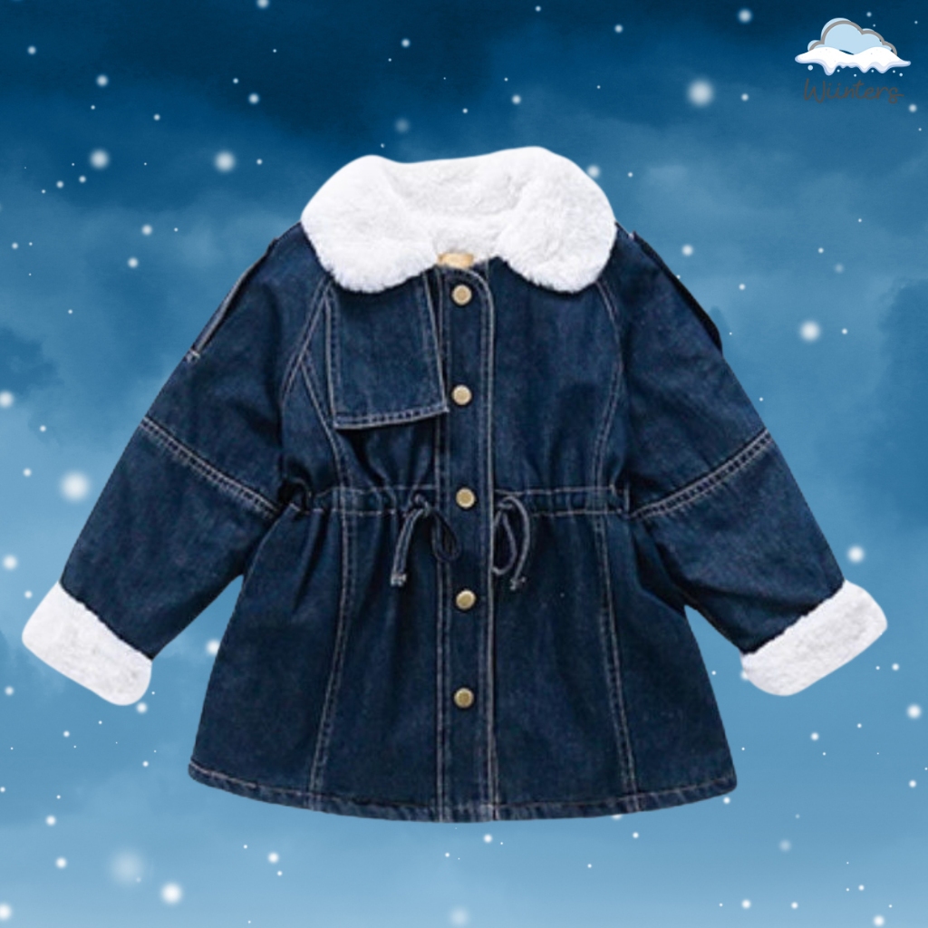 [ Joobs Kid’s Jeans Jacket Coat ] เสื้อโค้ทเด็ก คอปก บุขนด้านใน ยีนส์เด็ก เสื้อกันหนาวเด็ก มีเชือกที่เอว กันหนาวติดลบ