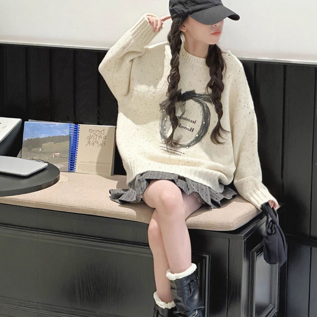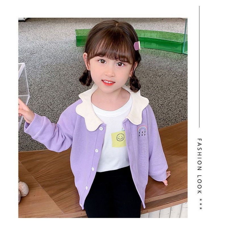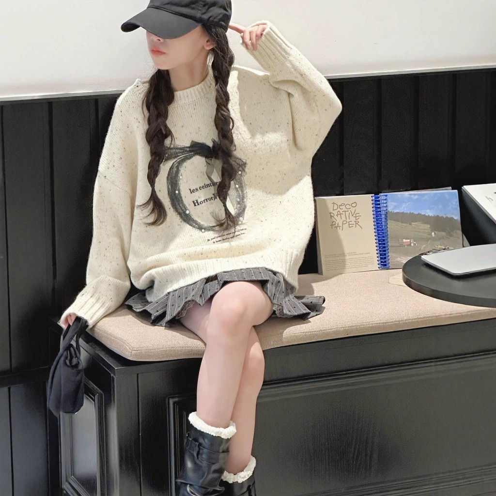 เสื้อกันหนาวสาวฤดูใบไม้ผลิและฤดูใบไม้ร่วงใหม่สไตล์เกาหลีเสื้อผ้าเด็กสไตล์ตะวันตก