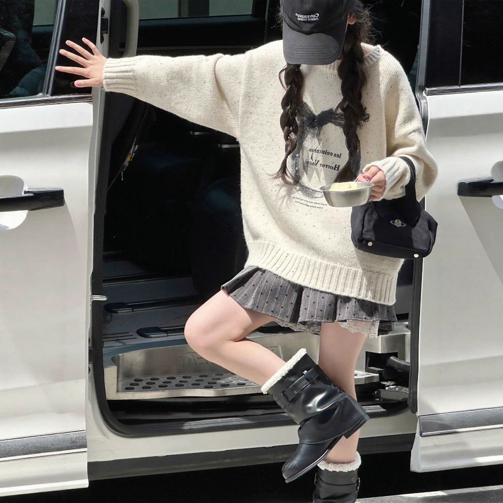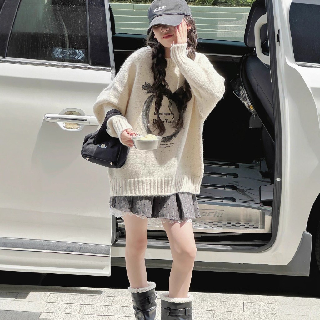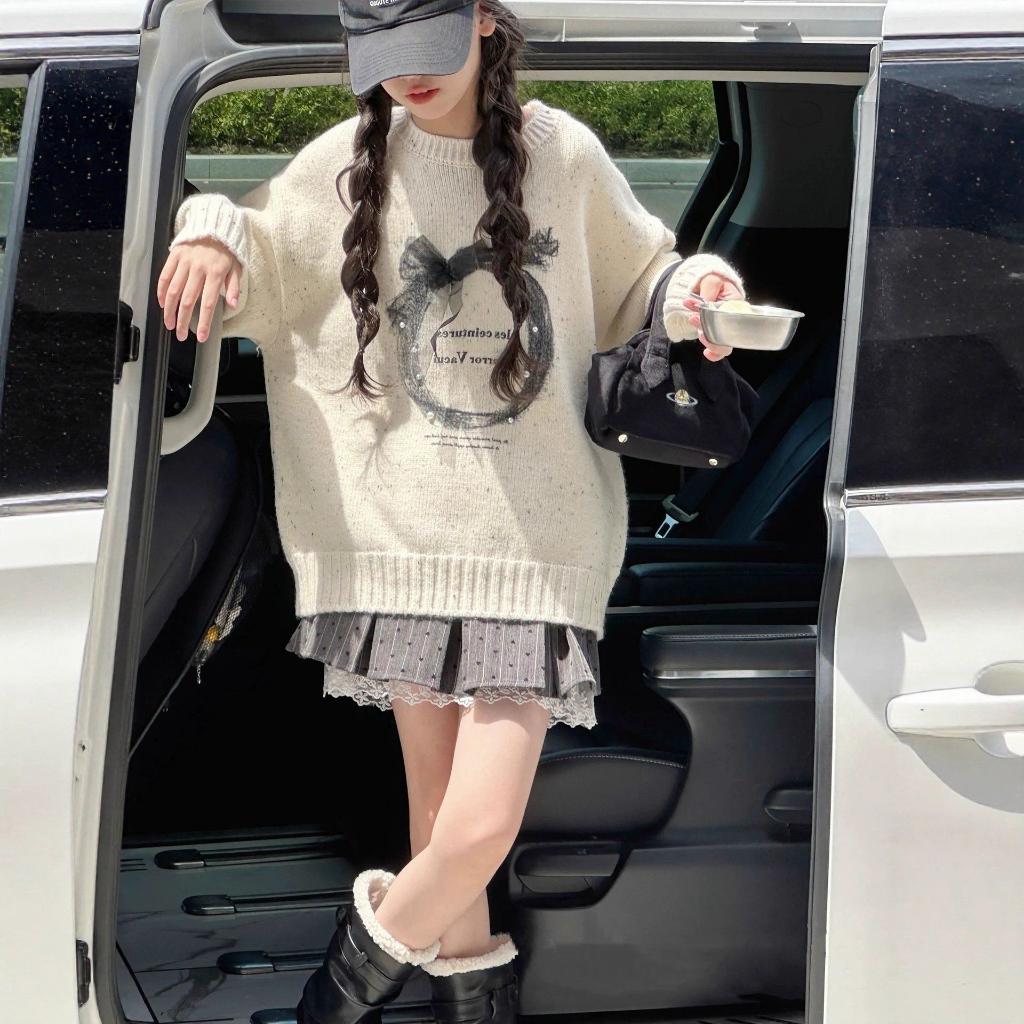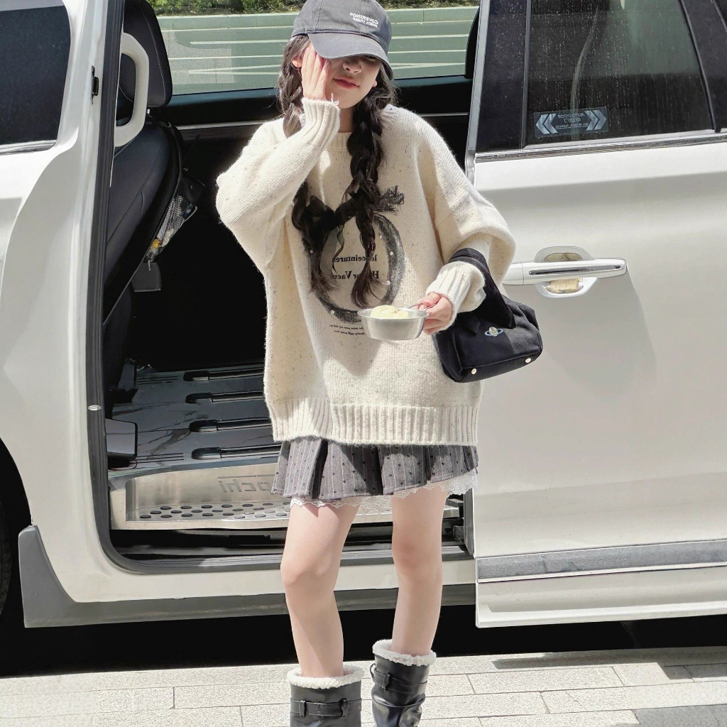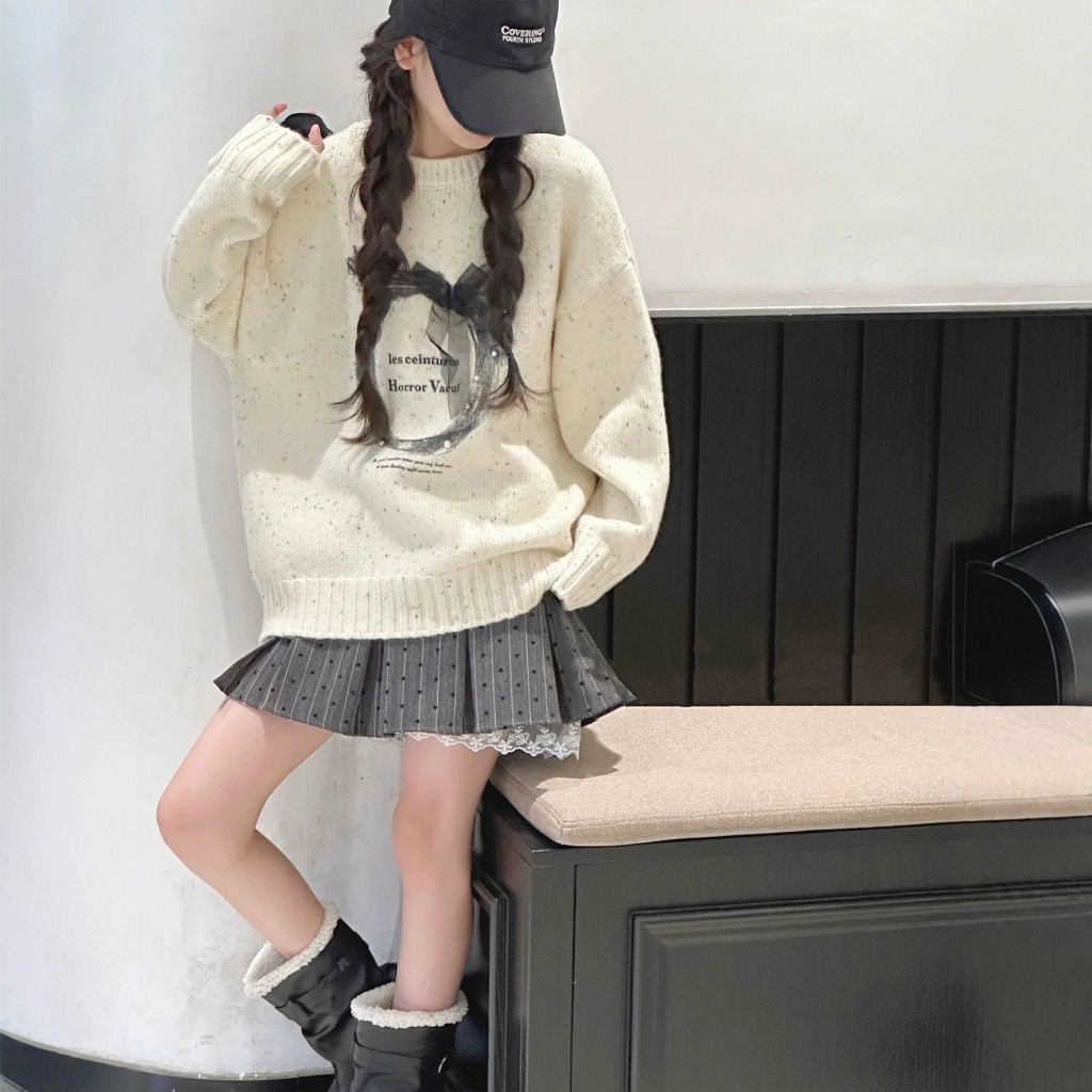 เสื้อกันหนาวสไตล์เกาหลี เหมาะสำหรับฤดูใบไม้ร่วงและฤดูหนาว พร้อมลายพิมพ์คริสต์มาสสำหรับเด็กหญิง