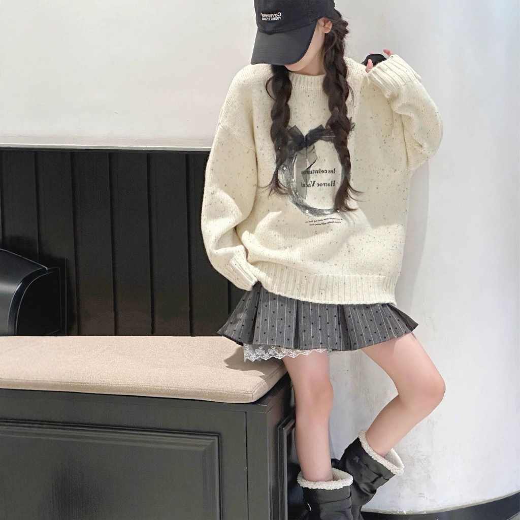 เสื้อกันหนาวเด็กผู้หญิง อายุ 3-14 ปี เวอร์ชั่นเกาหลี รอบคอดูเก๋