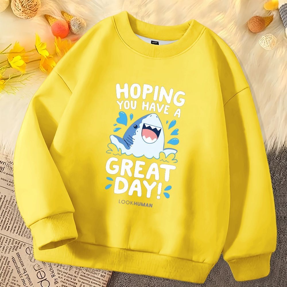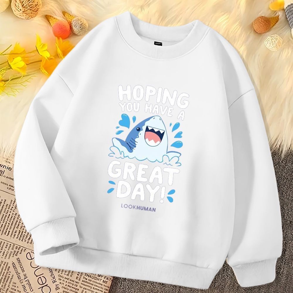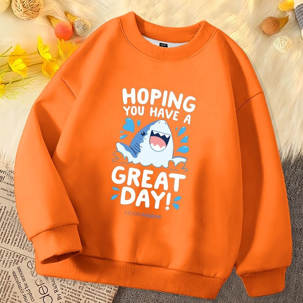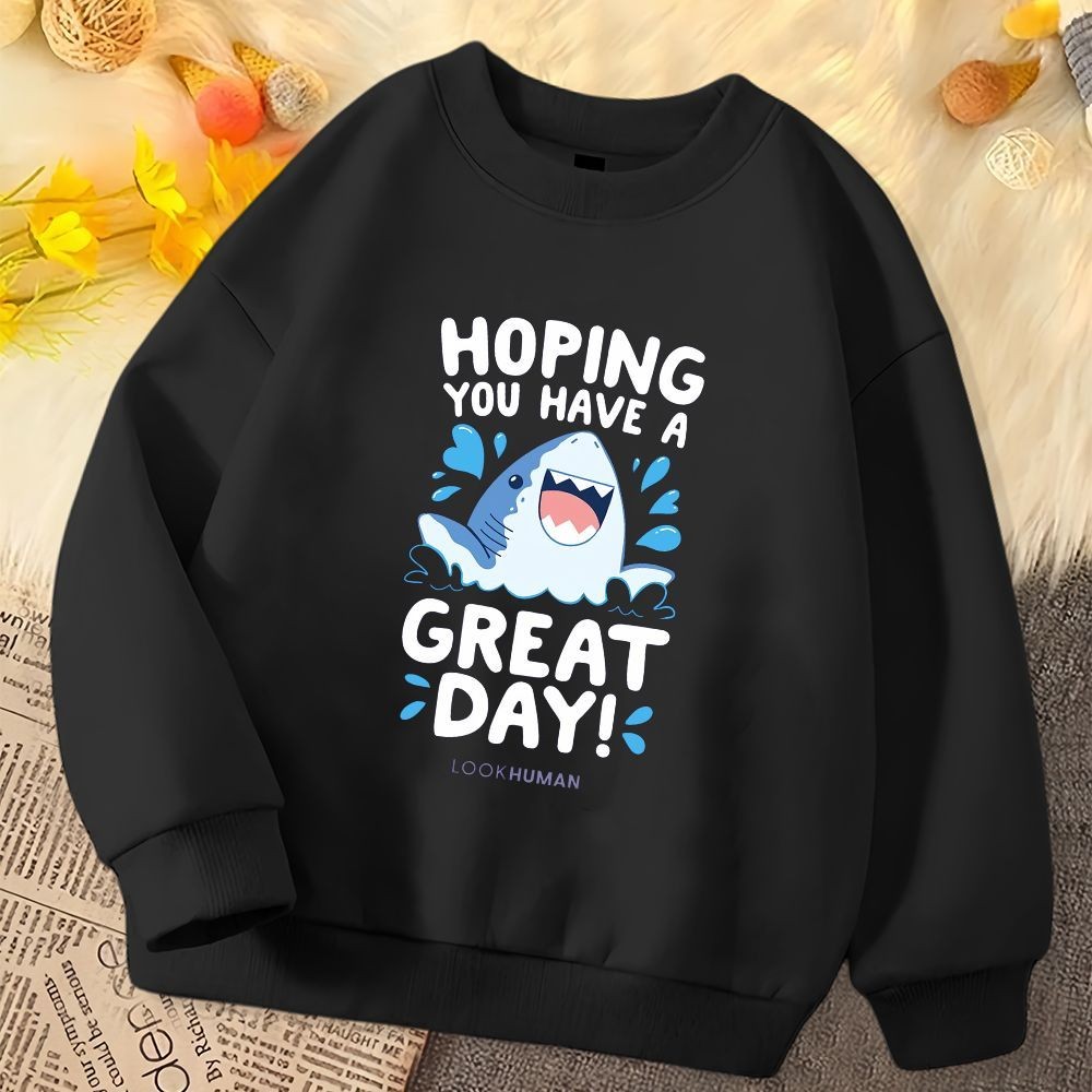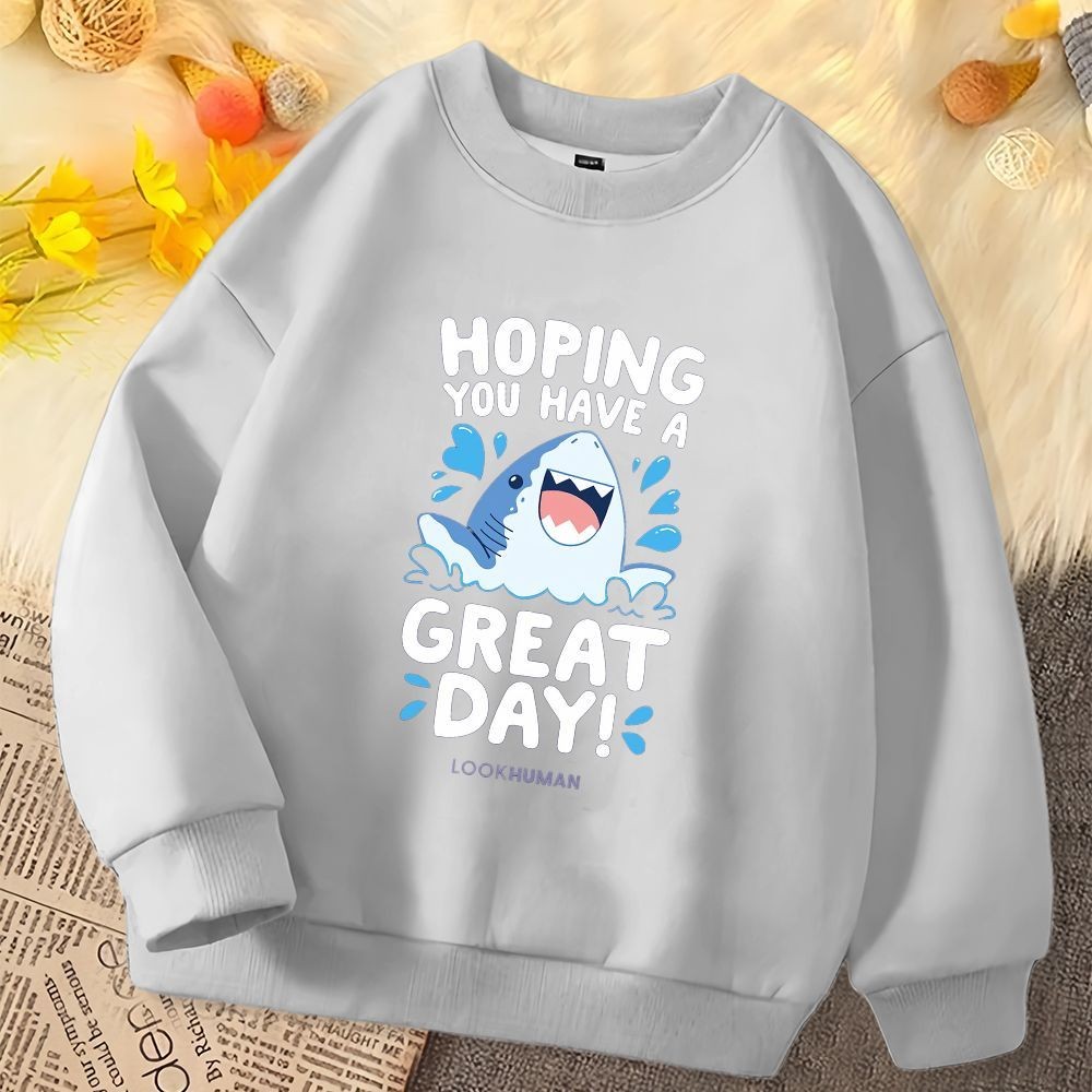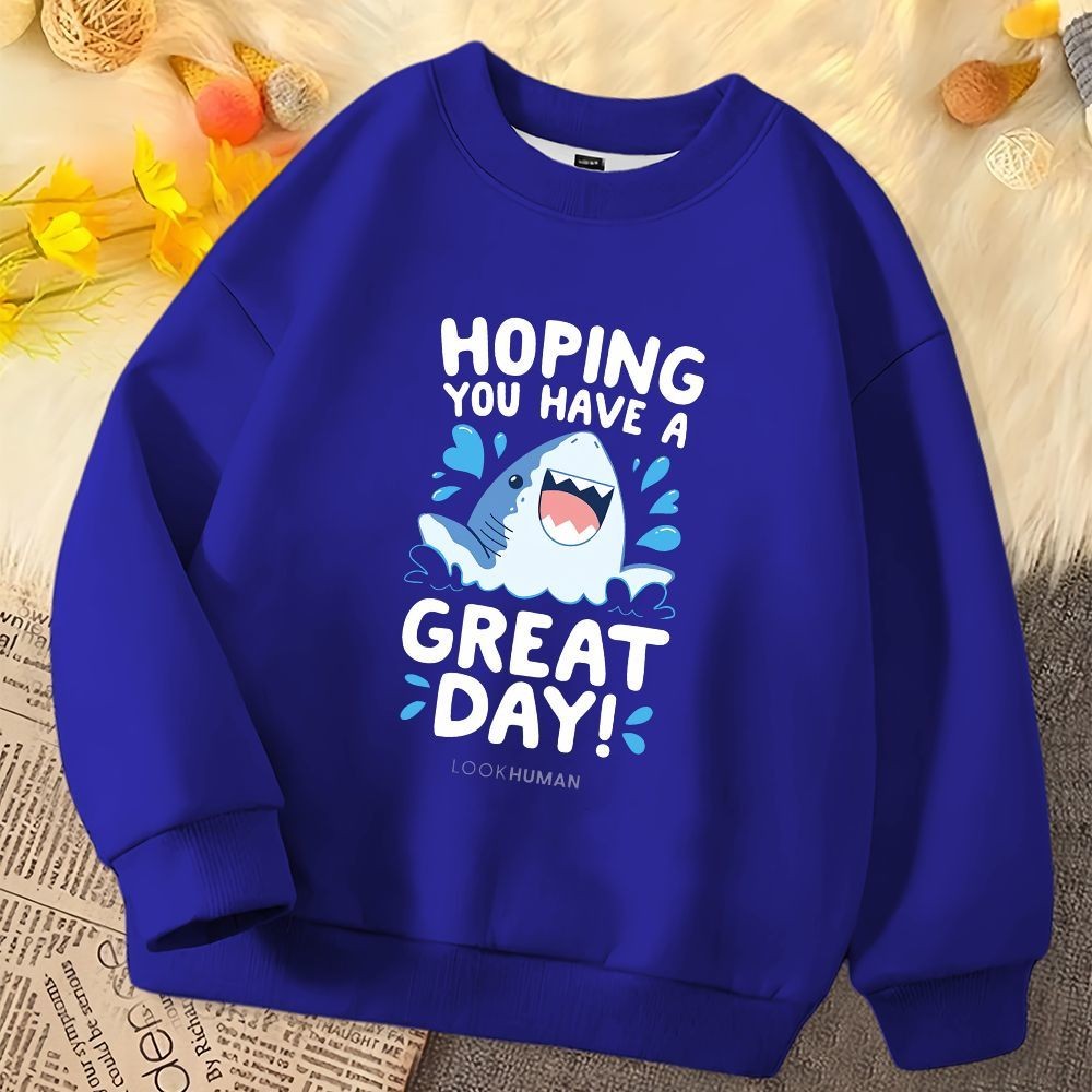เสื้อกันหนาวสำหรับเด็ก ออกแบบลายฉลามการ์ตูน คอกลม แขนยาว นุ่มนวลใส่สบาย