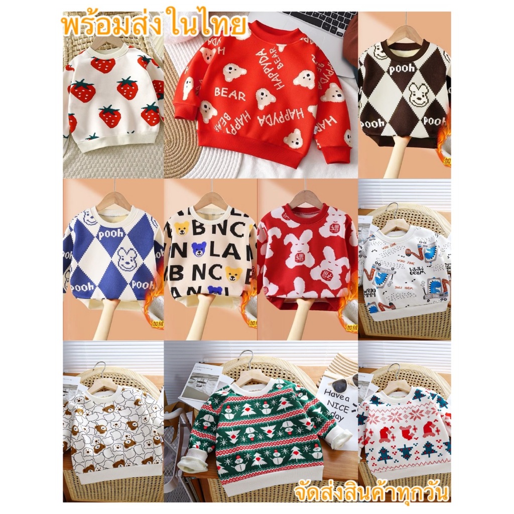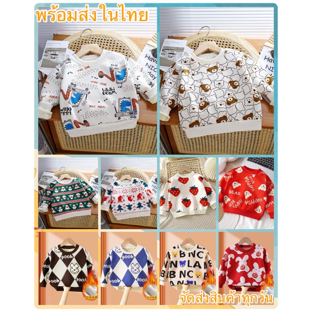 เสื้อกันหนาว เสื้อแขนยาวขนบุด้านใน ลายน้องหมี น่ารักๆ