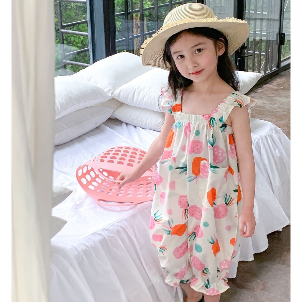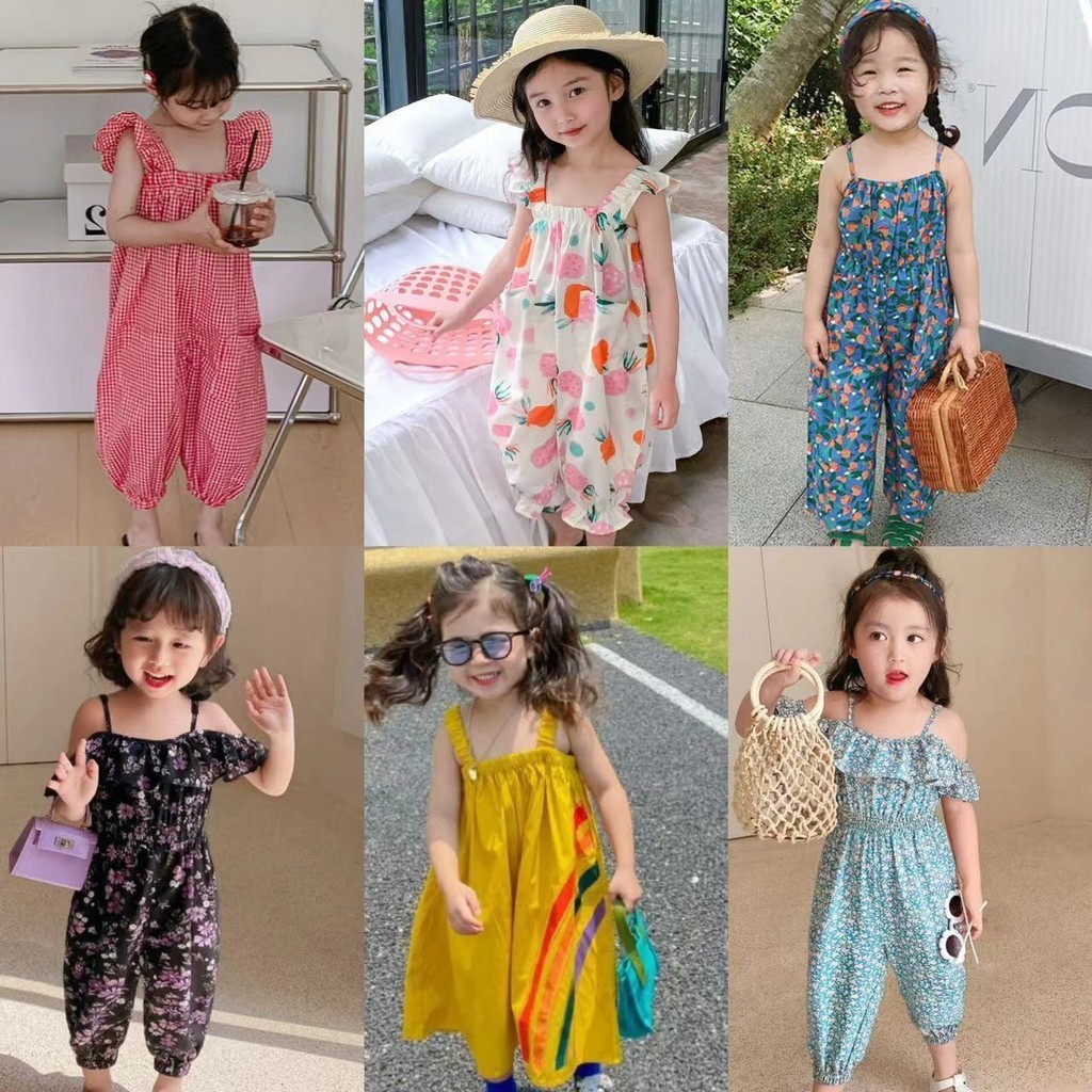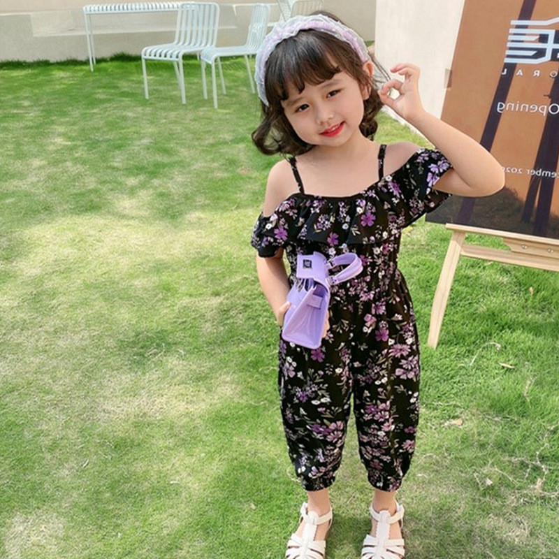 เสื้อผ้าเด็ก ชุดจั๊มสูทเด็กผู้หญิงฤดูร้อนสไตล์ใหม่ดอกไม้จั๊มสูทเปิดไหล่การค้าต่างประเทศเด็ก