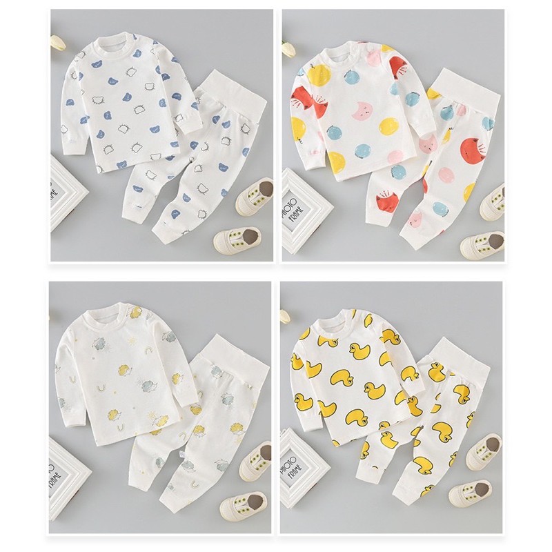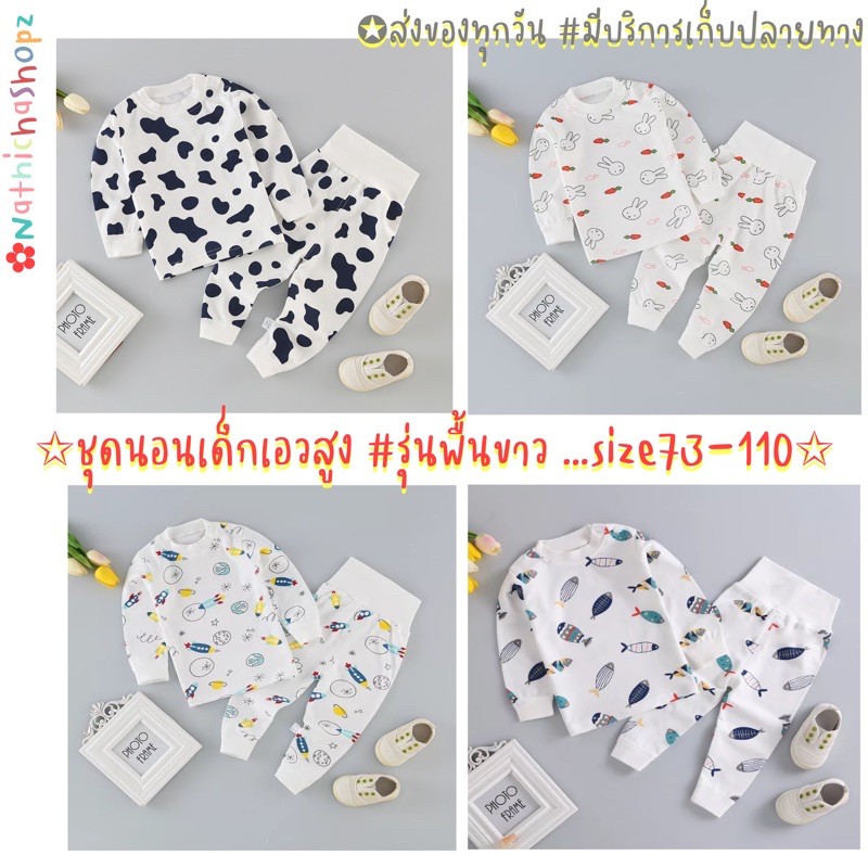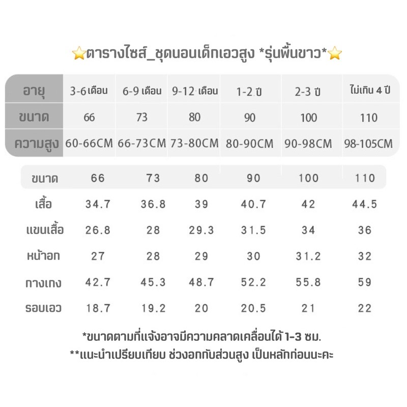 [COD]❤️ชุดนอนเด็กปิดพุง ชุดนอนเอวสูง ชุดนอนกันหนาว [โทนขาว] ไร้กังวลเด็กนอนดิ้น ไม่ชอบห่มผ้า