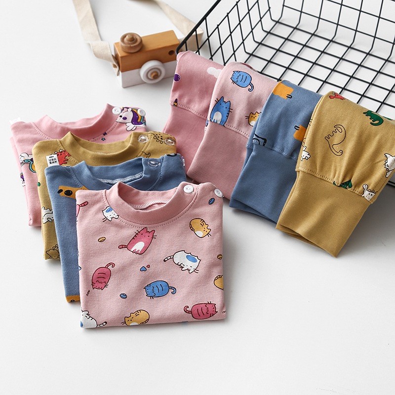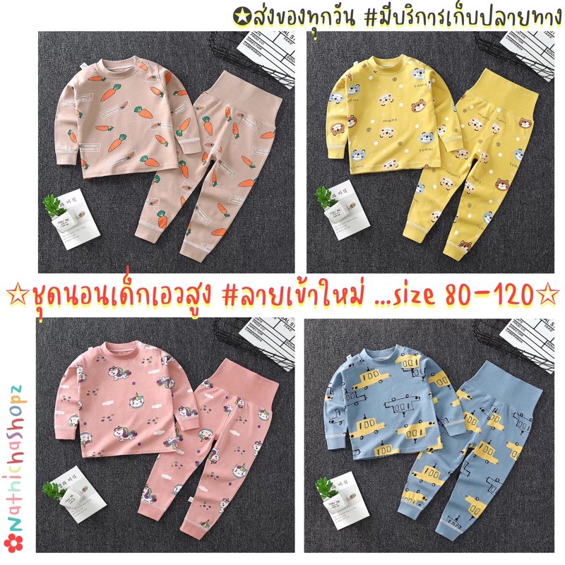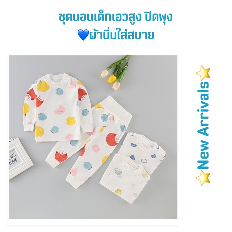 [COD]เข้าใหม่!!?ชุดนอนเด็กเอวสูง ชุดนอนเด็กปิดพุง ชุดนอนเด็กกันหนาว ผ้านิ่ม ใส่สบาย ไม่ต้องคอยห่มผ้า