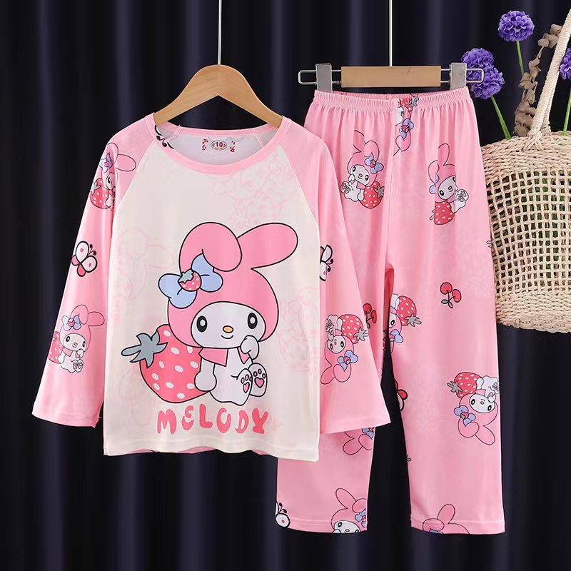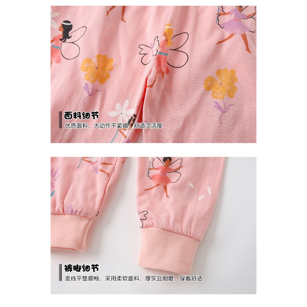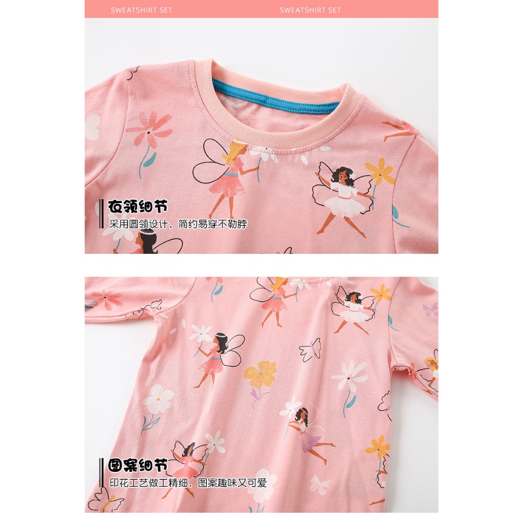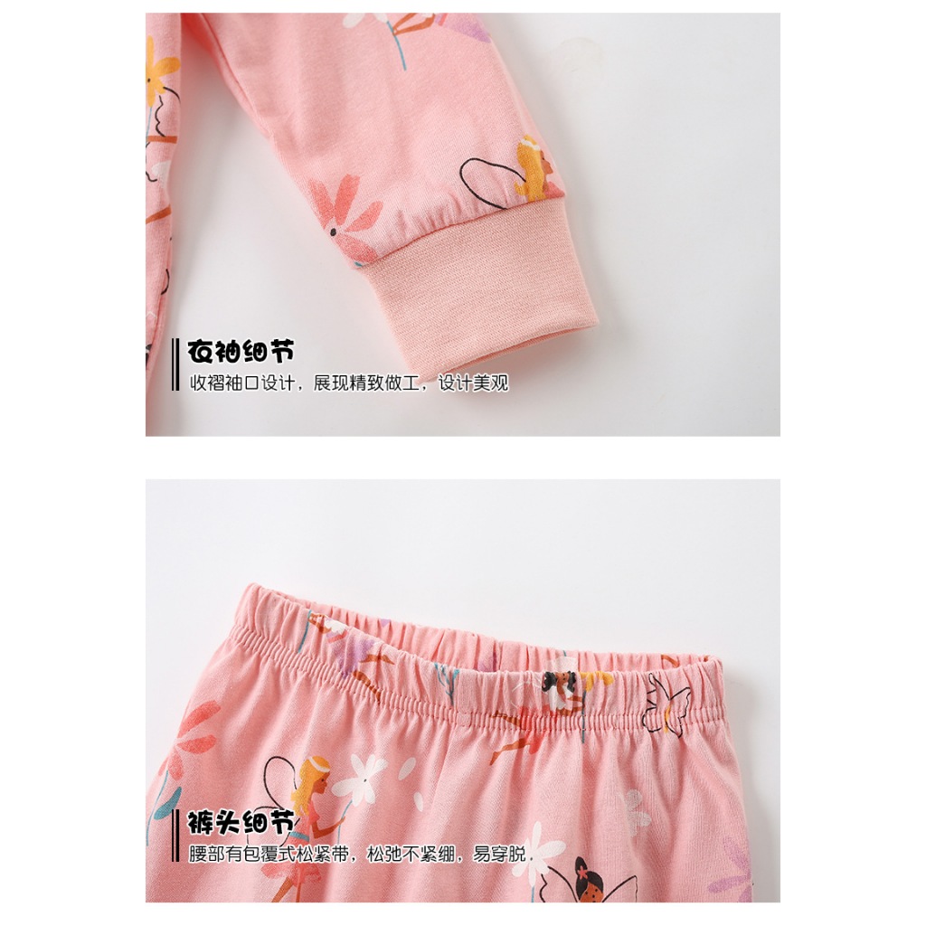 [มล] 90-140ซม ชุดบ้าน เด็กผู้หญิงชุดฤดูใบไม้ผลิสไตล์ใหม่แฟชั่นเด็กหลวมสาวแขนยาวชุดนอนหวานชุดสองชิ้น