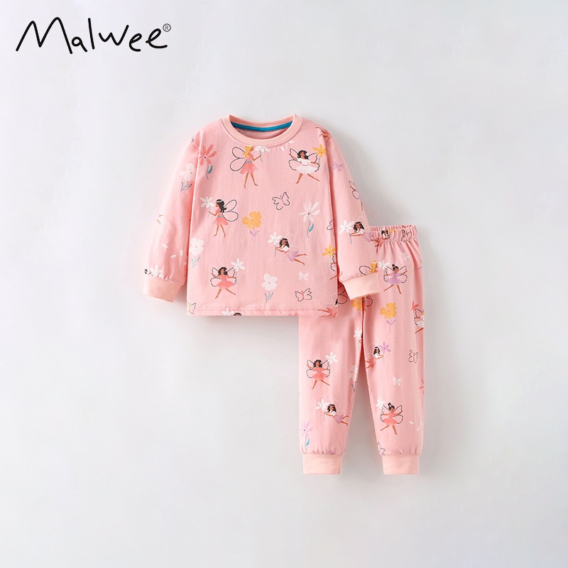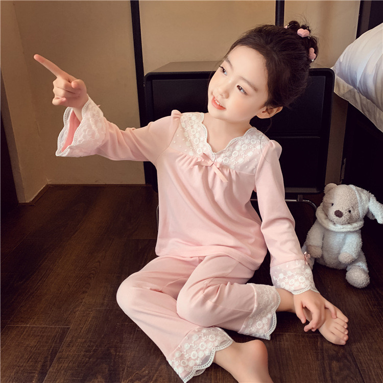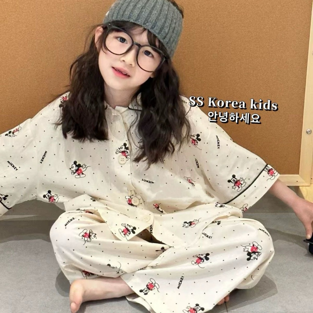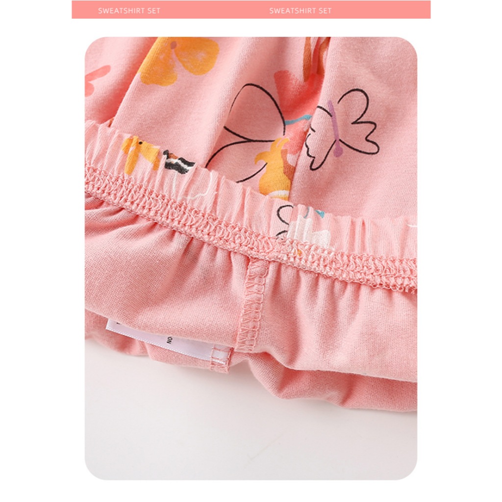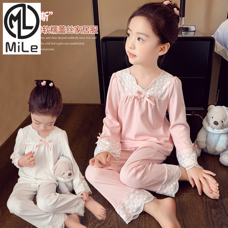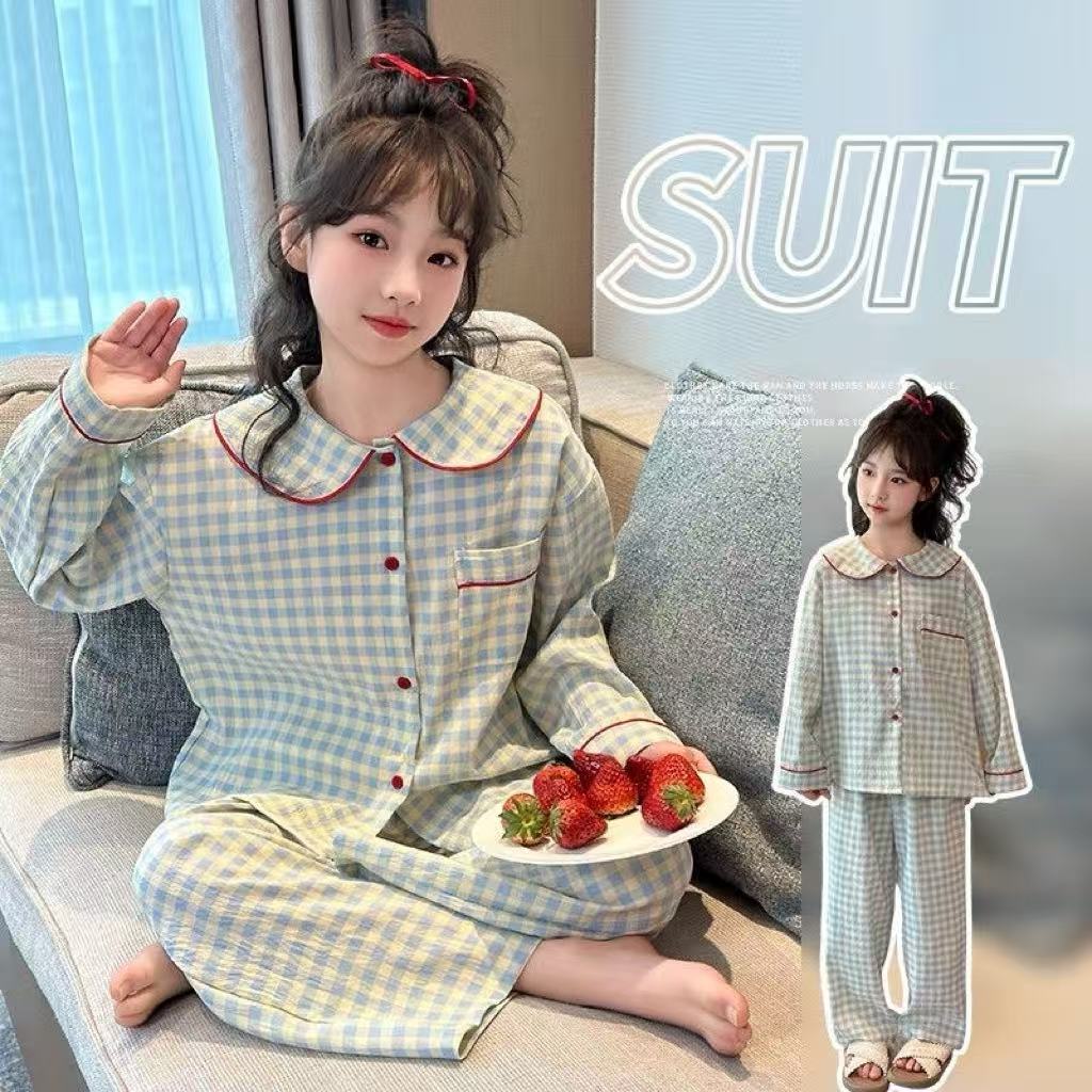 [มล] 90-140ซม ชุดบ้าน เด็กผู้หญิงชุดฤดูใบไม้ผลิสไตล์ใหม่แฟชั่นเด็กหลวมสาวแขนยาวชุดนอนหวานชุดสองชิ้น