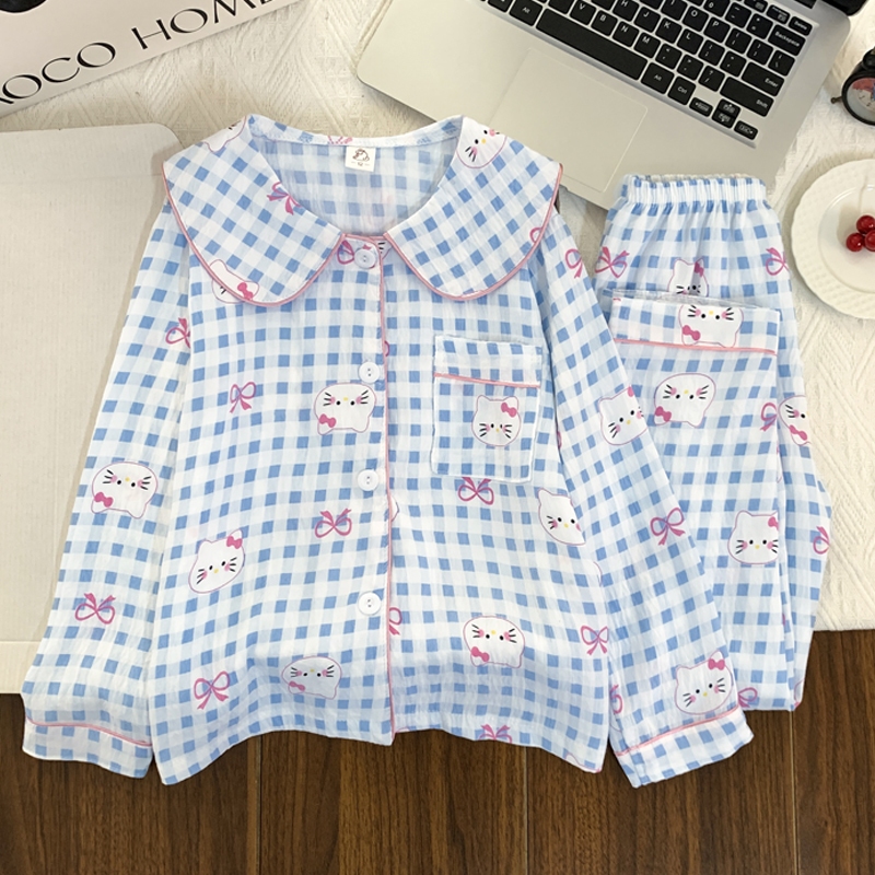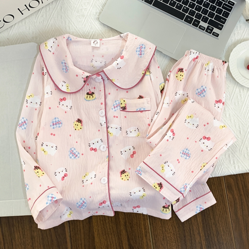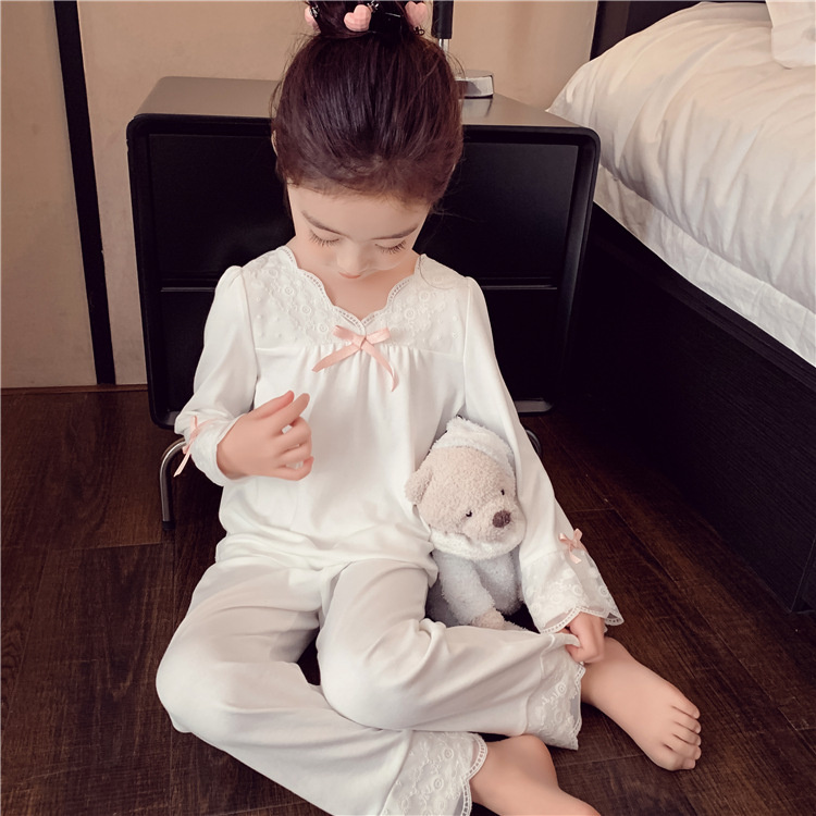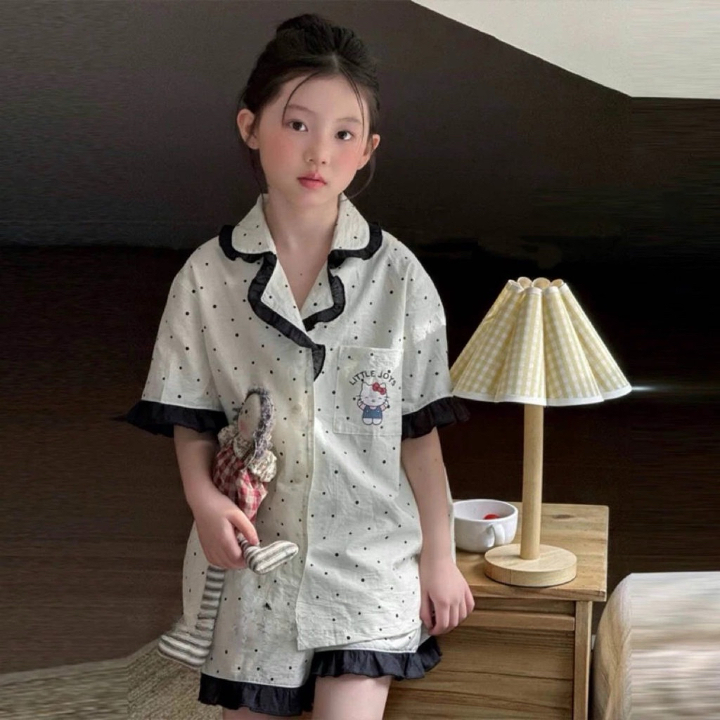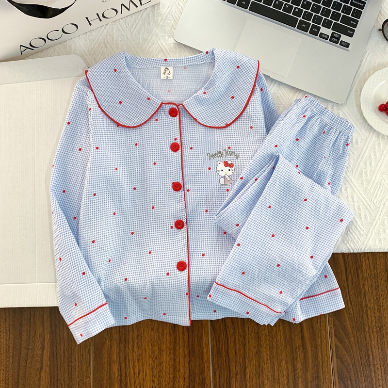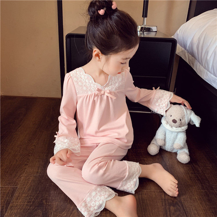 [มล] 90-140ซม ชุดบ้าน เด็กผู้หญิงชุดฤดูใบไม้ผลิสไตล์ใหม่แฟชั่นเด็กหลวมสาวแขนยาวชุดนอนหวานชุดสองชิ้น