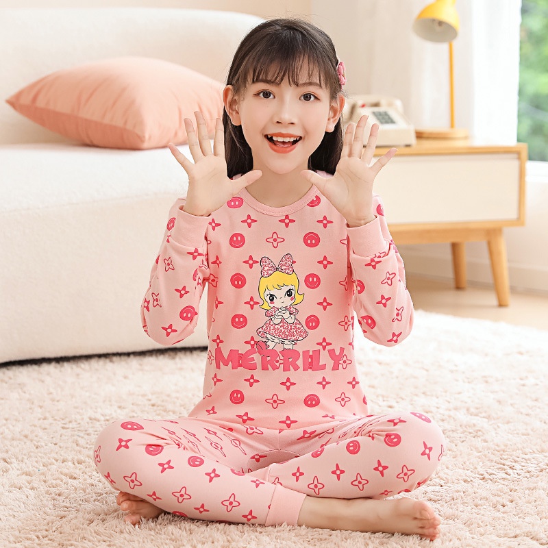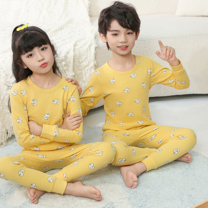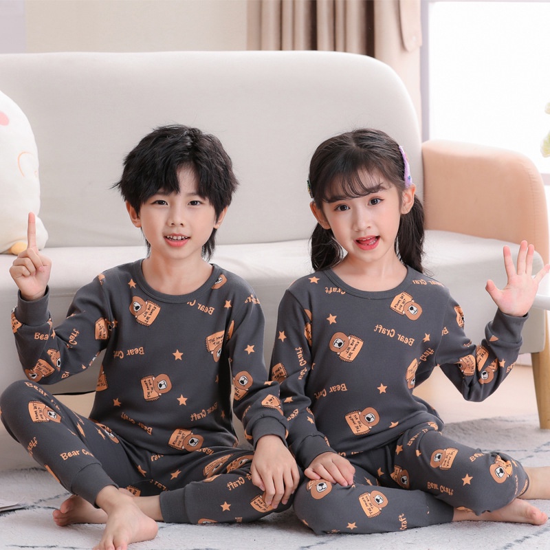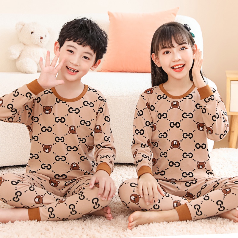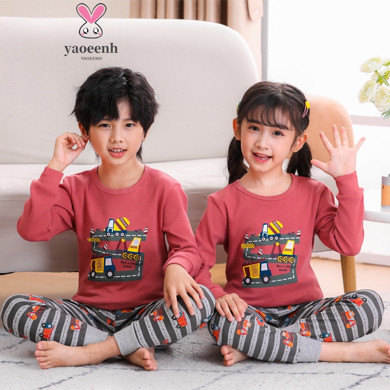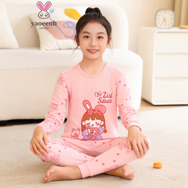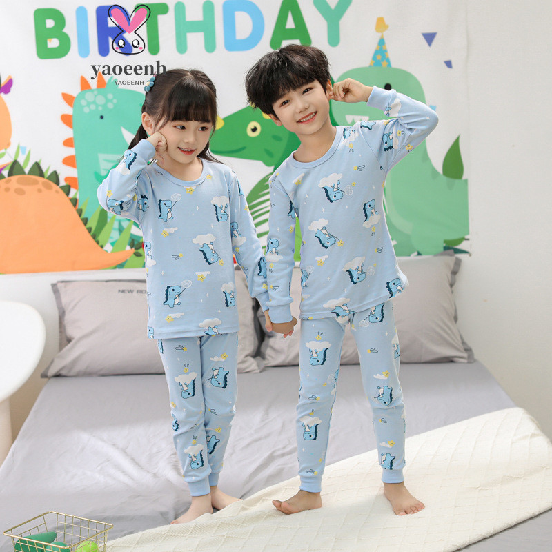 【YAOEENH】100-160เซนติเมตรฤดูใบไม้ผลิฤดูใบไม้ร่วงเด็กลายฐานชุดชั้นในชุดชายหญิงการ์ตูนฤดูใบไม้ร่วงเสื้อผ้ากางเกงขายาวเสื้อผ้าที่บ้านพร้อมสต็อกจัดส่งที่รวดเร