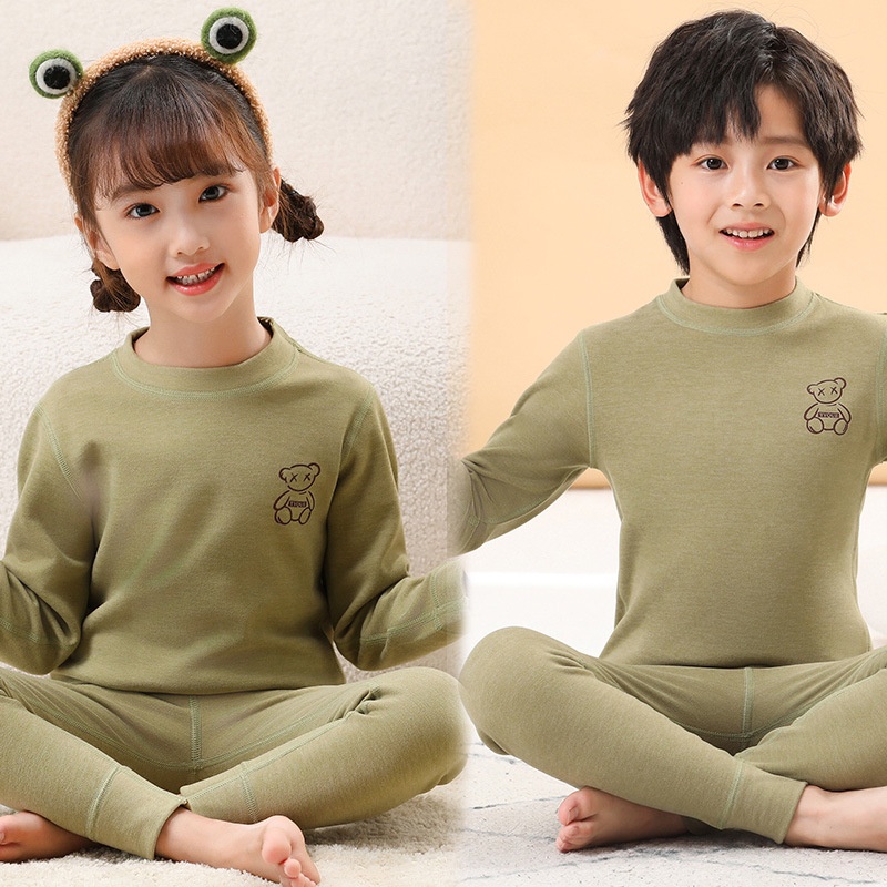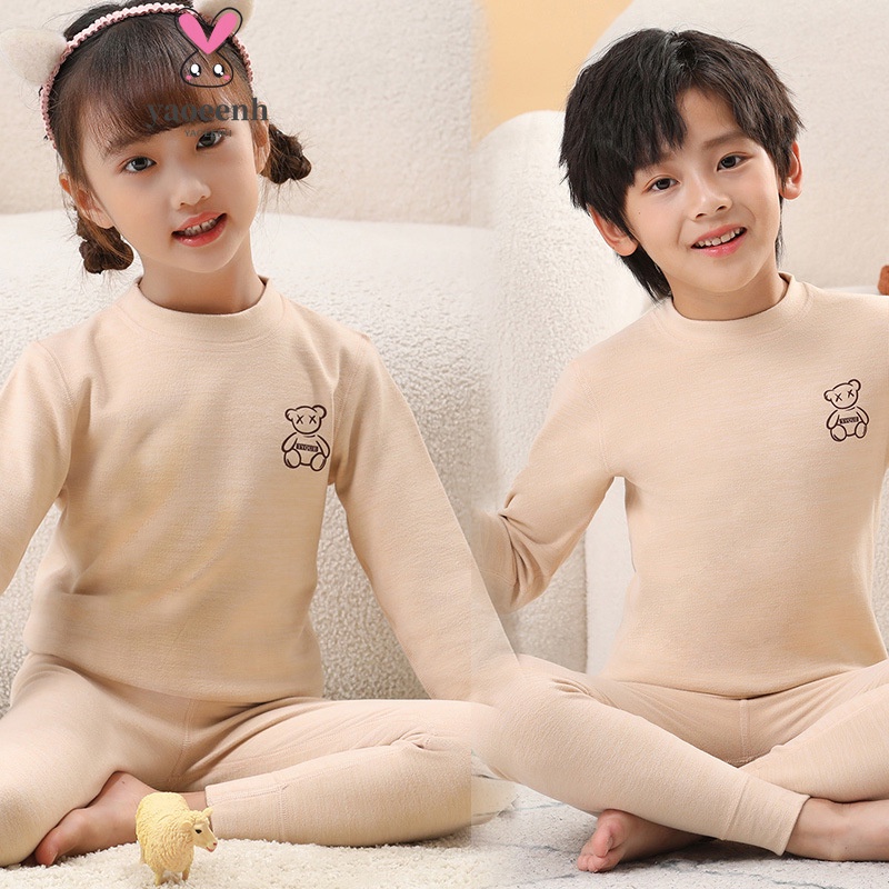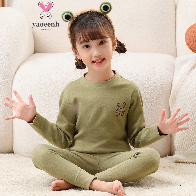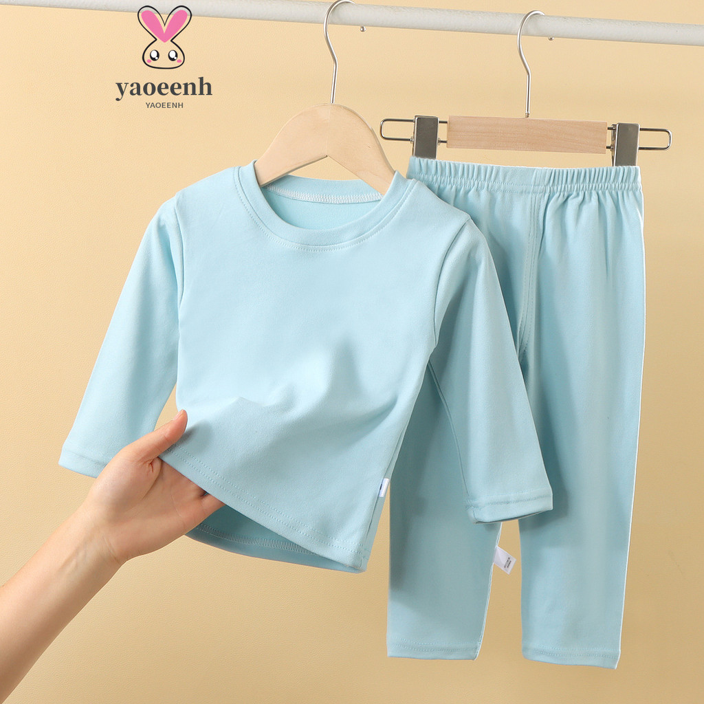 【YAOEENH】ชุดชั้นในสีทึบสำหรับเด็ก 80-160 ซม., ออกแบบเพื่อความอบอุ่นในฤดูใบไม้ร่วงและฤดูหนาว, รอบคอยืดหยุ่น สวมใส่สบาย เป็นชุดบ้าน