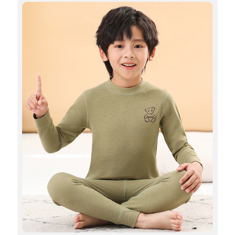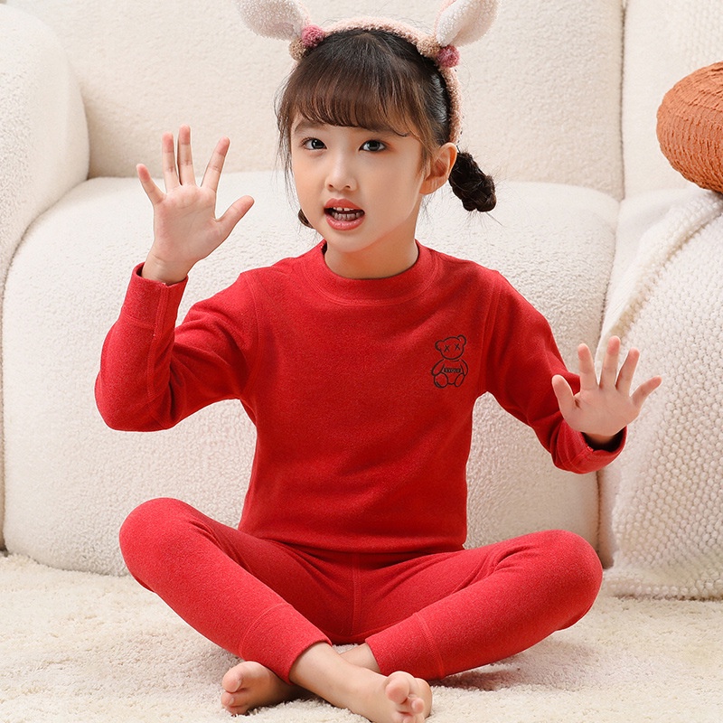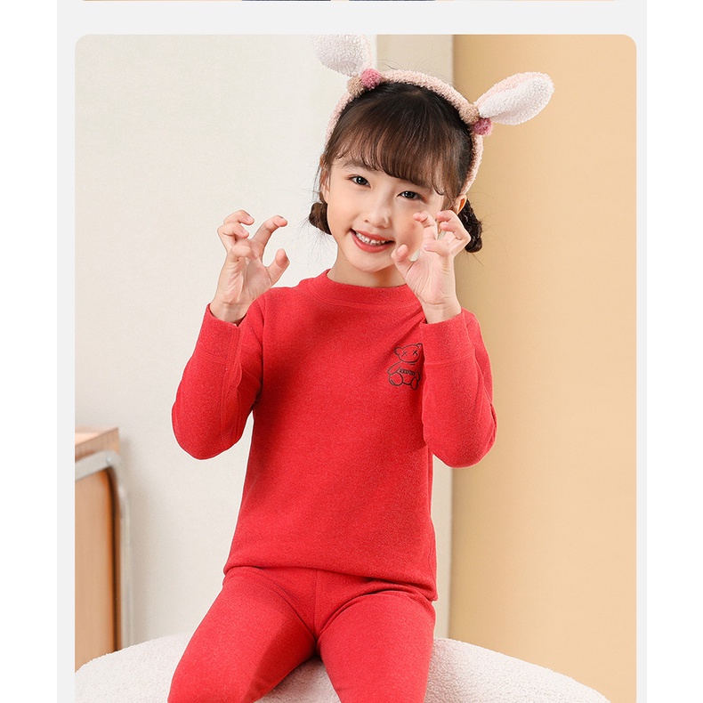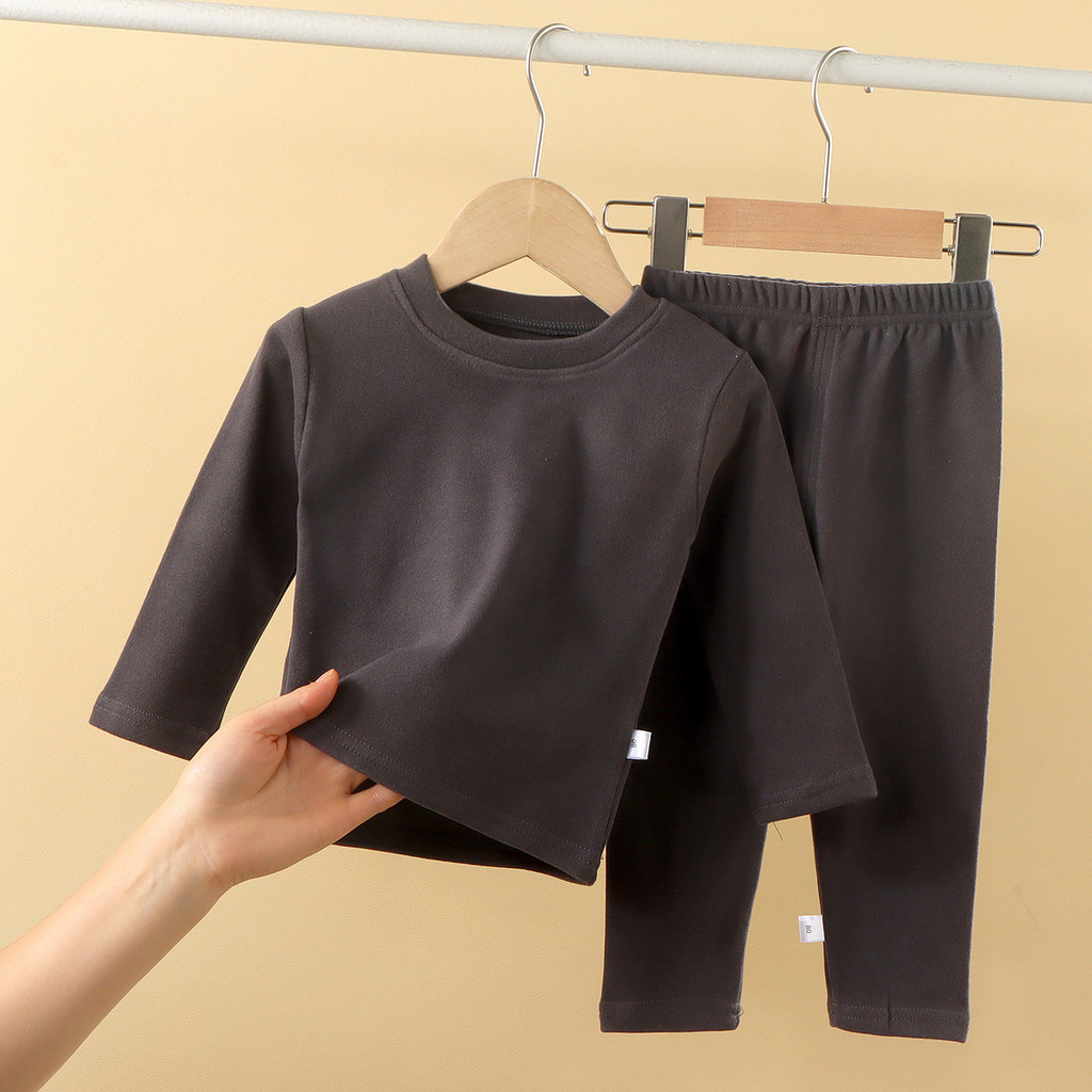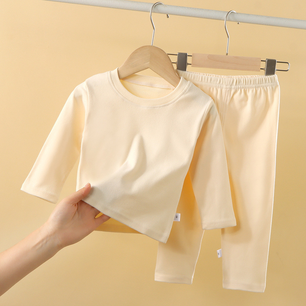 【YAOEENH】100-180 ซม. ฤดูใบไม้ร่วง ฤดูหนาว เด็ก สีพื้น ปกกลาง บอททอม ชุดชั้นใน ความร้อน เด็กชาย หญิง ยืดหยุ่น ชุดอยู่บ้าน พร้อม