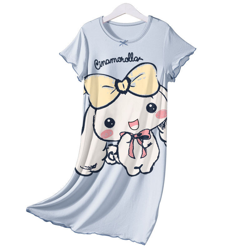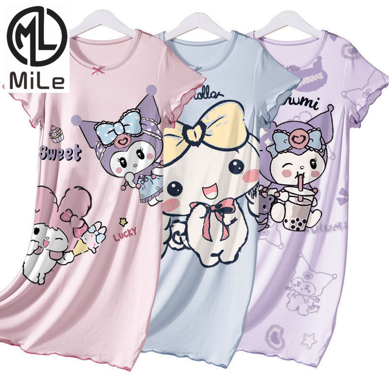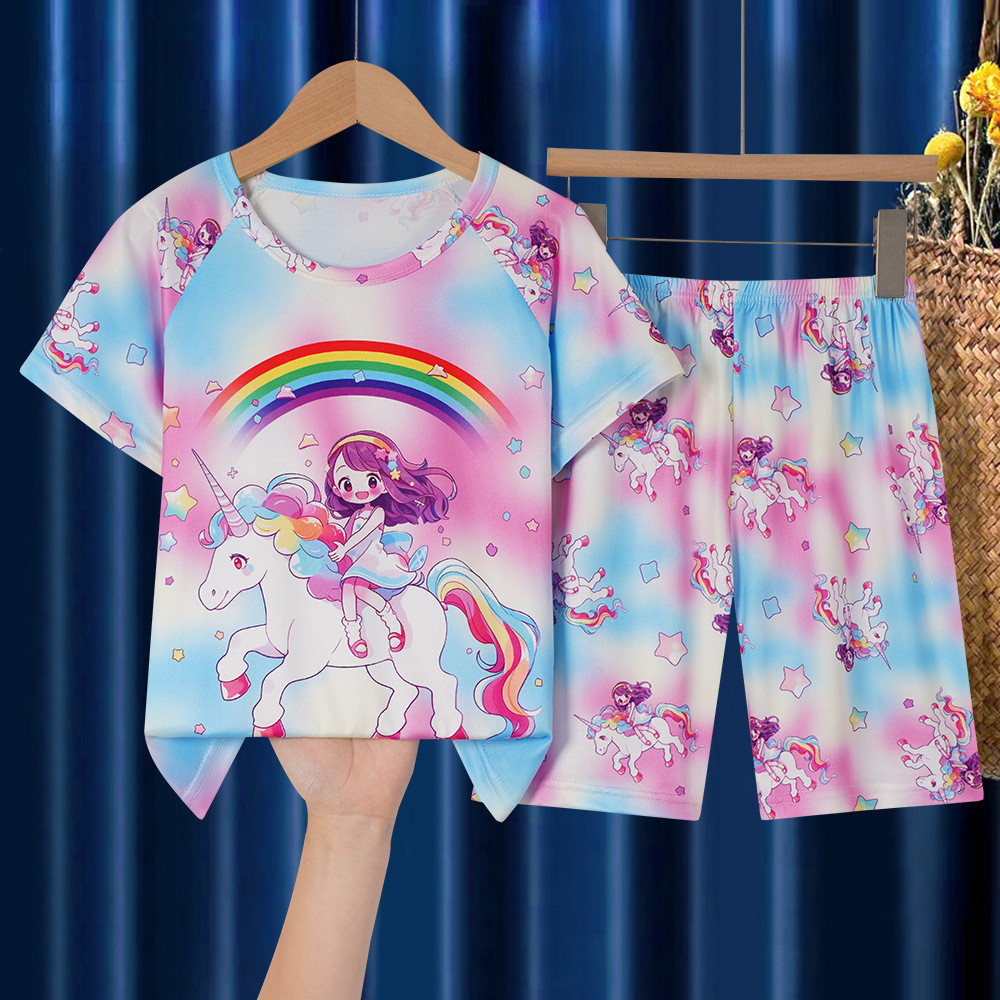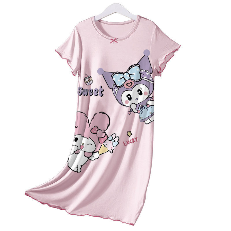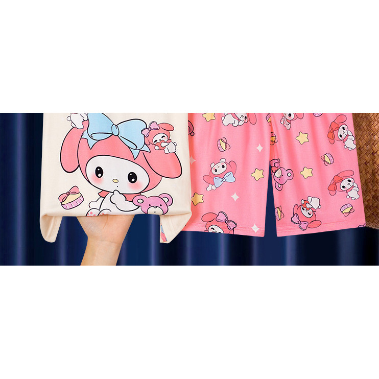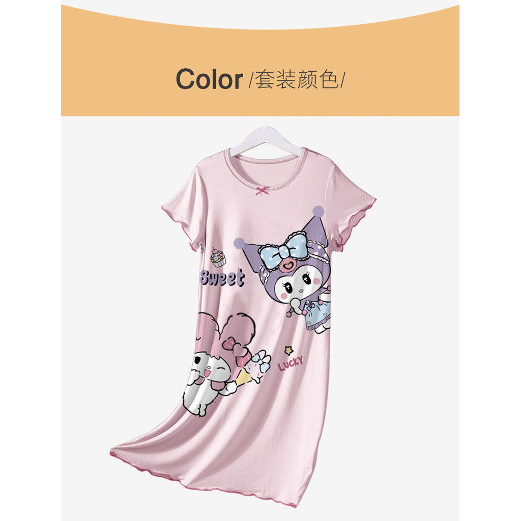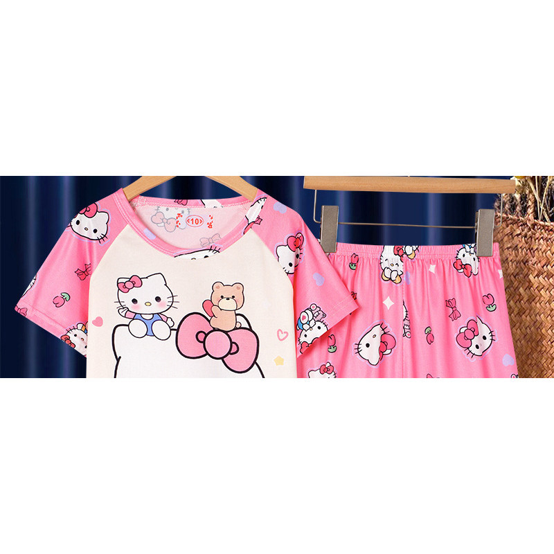 [ML] 90-140 ซม.ผ้าไหมน้ําแข็งฤดูร้อนสไตล์ใหม่ชุดนอนเด็กหญิง Nightdress แขนสั้นฤดูร้อนบางสไตล์สาวการ์ตูนน่ารัก Homewear อินเทรนด์