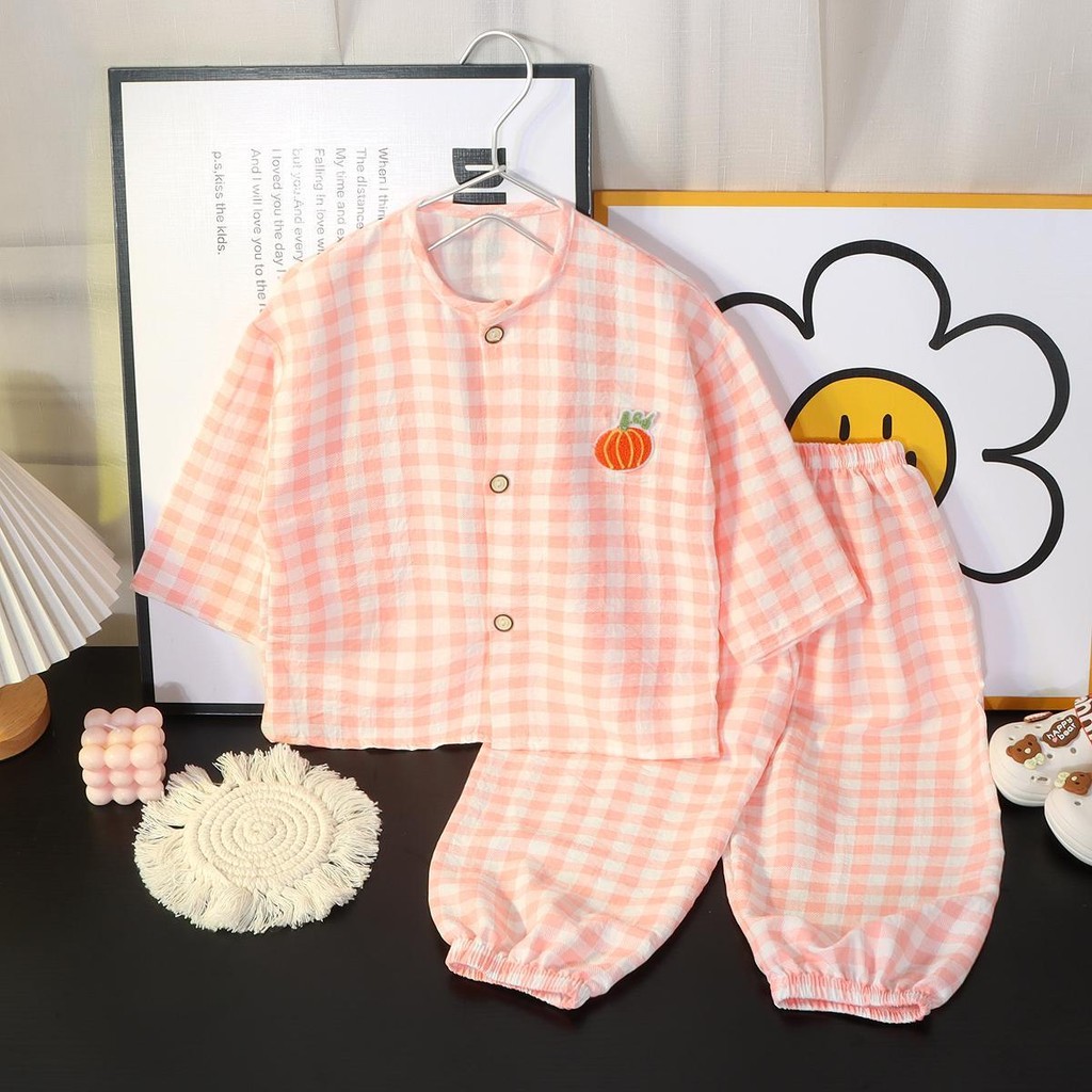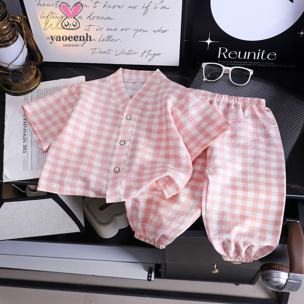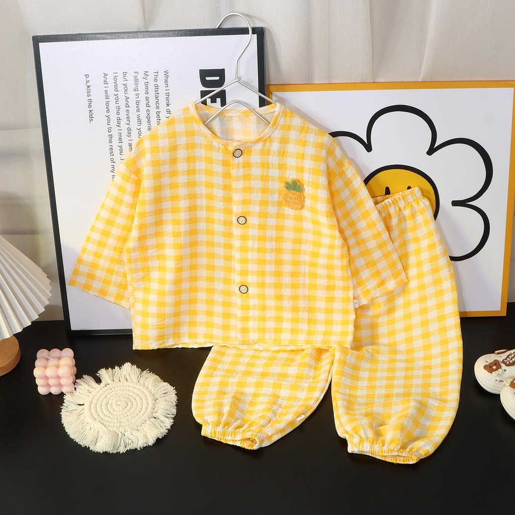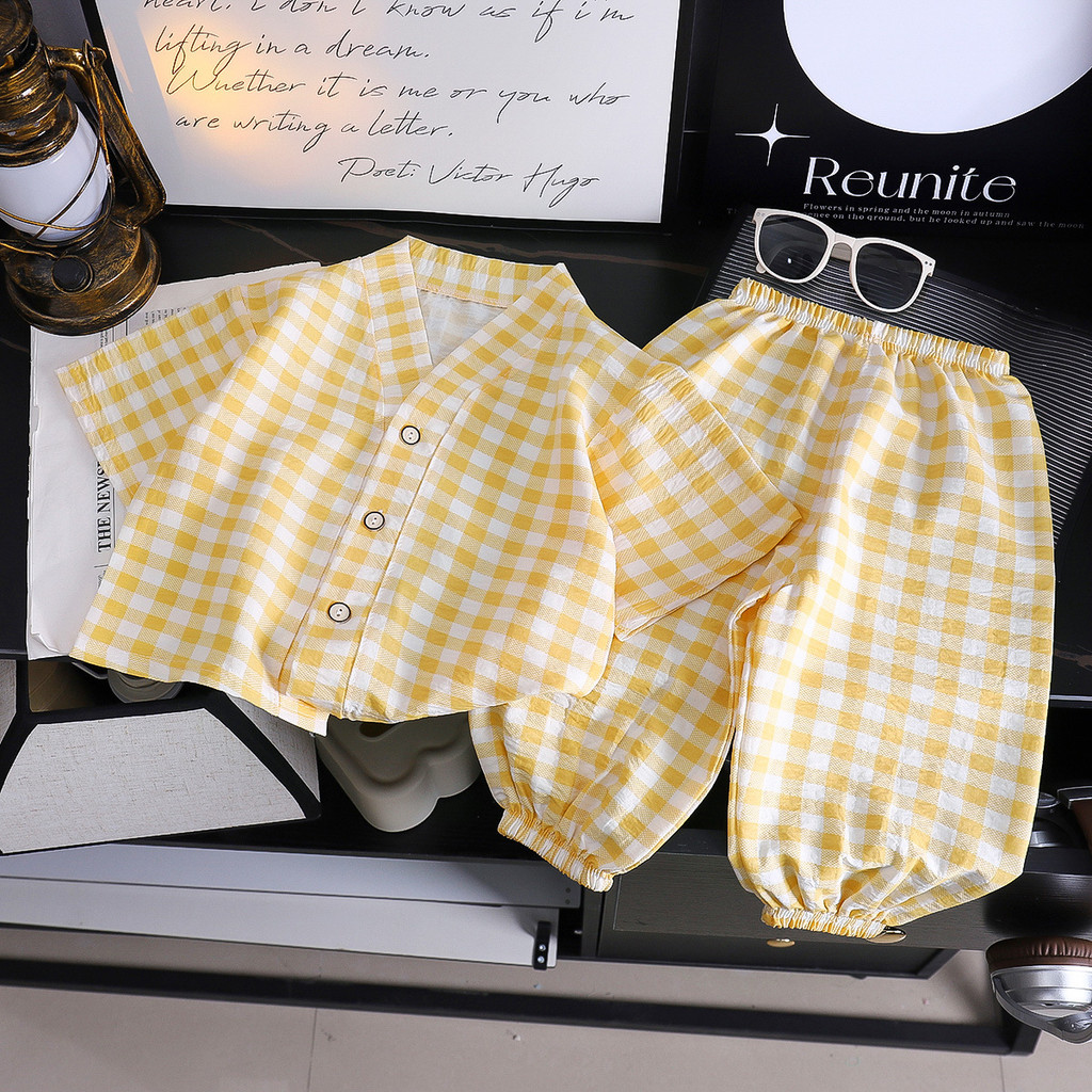 [ส่งไว พร้อมส่ง] ชุดนอนเด็ก ลายสก็อต เกาหลีเซ็ต 2ชิ้น มินิมอลน่ารัก ผ้าไม่ร้อนสำหรับทารก (DA-S)ชุดนอน หญิง ชาย เด็กโต