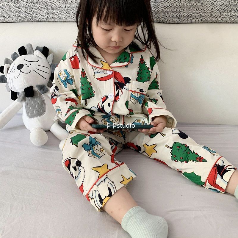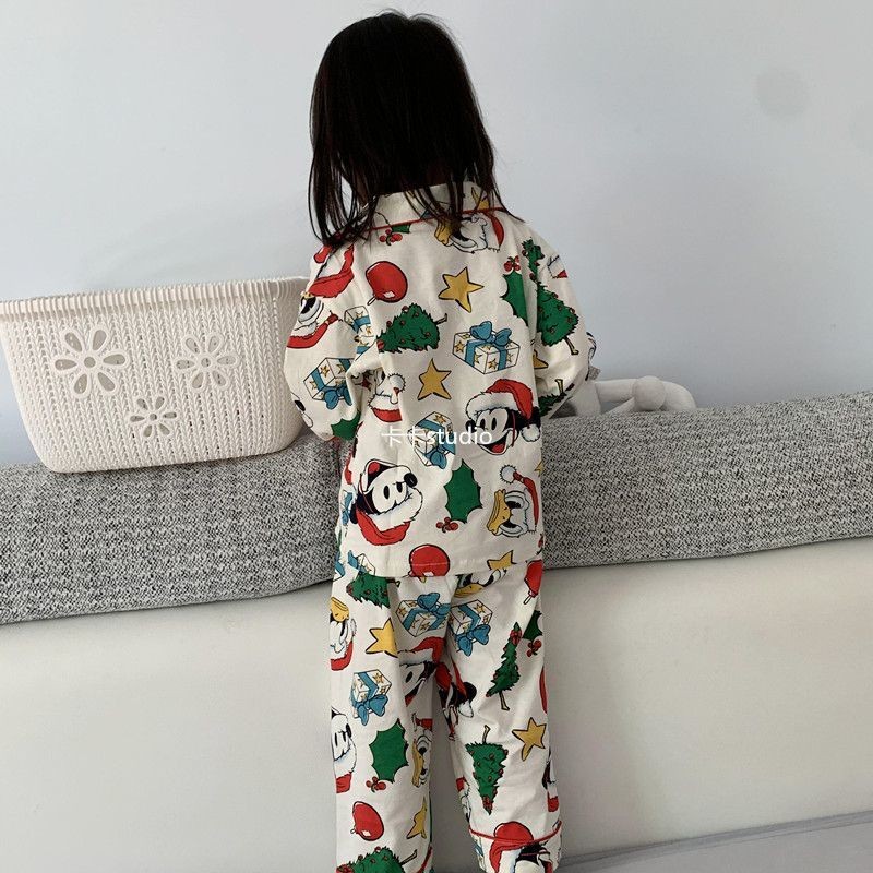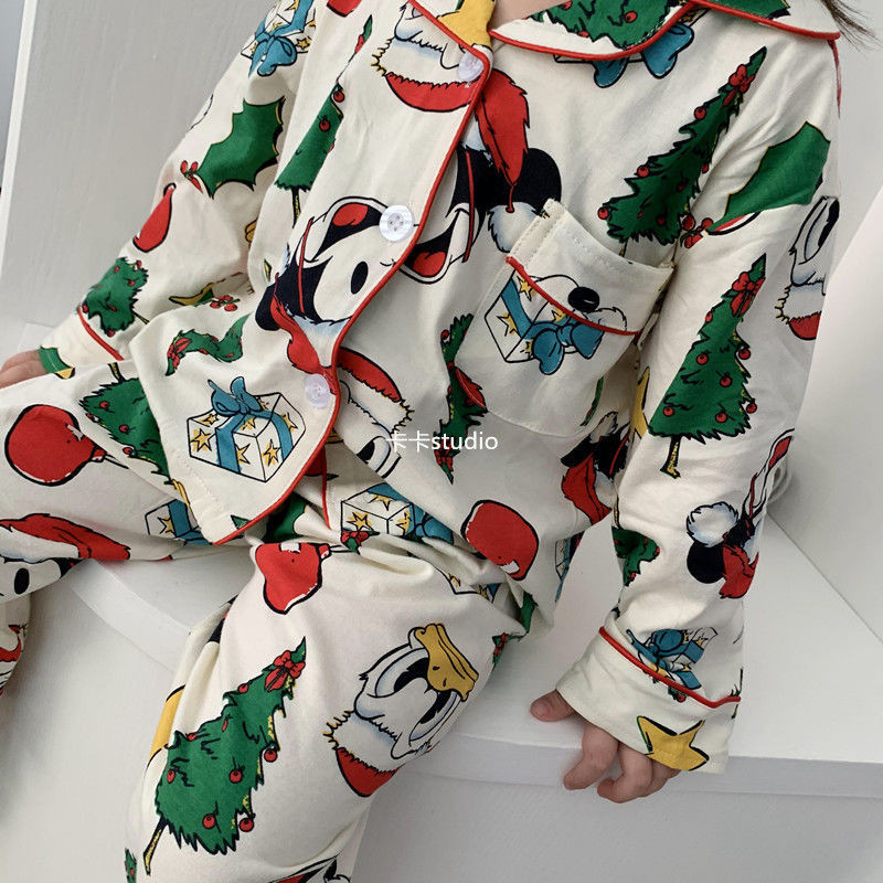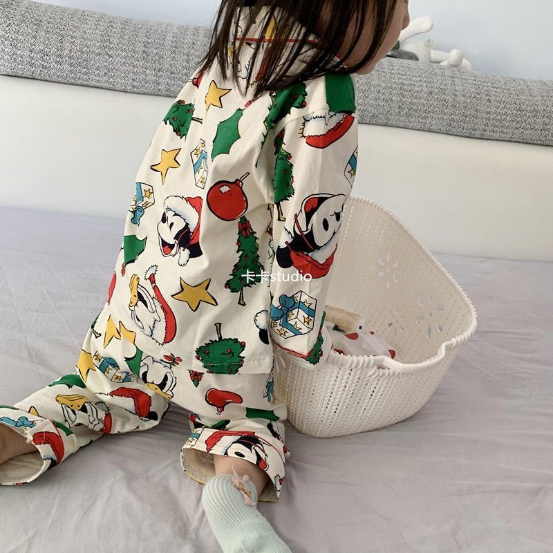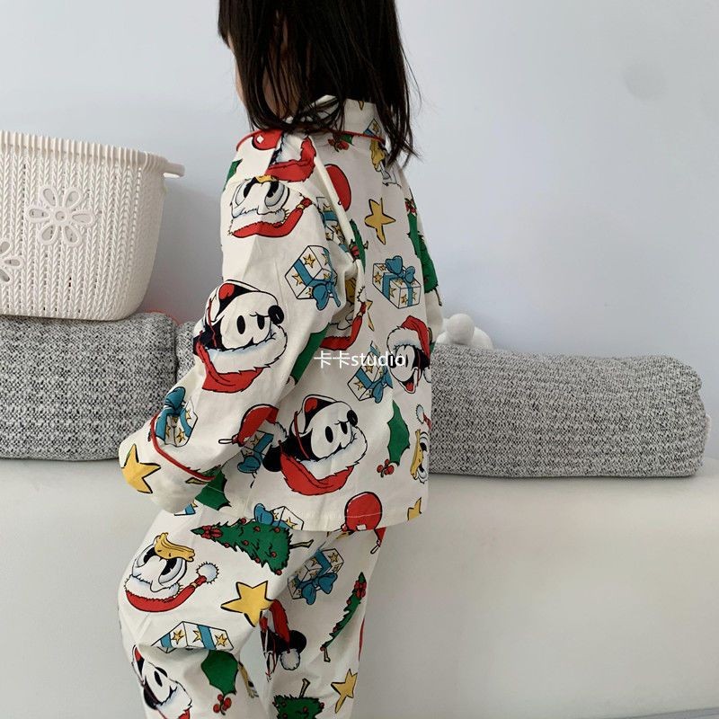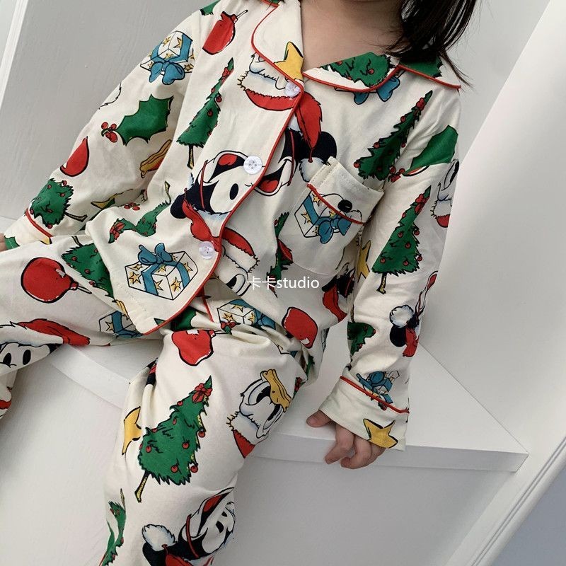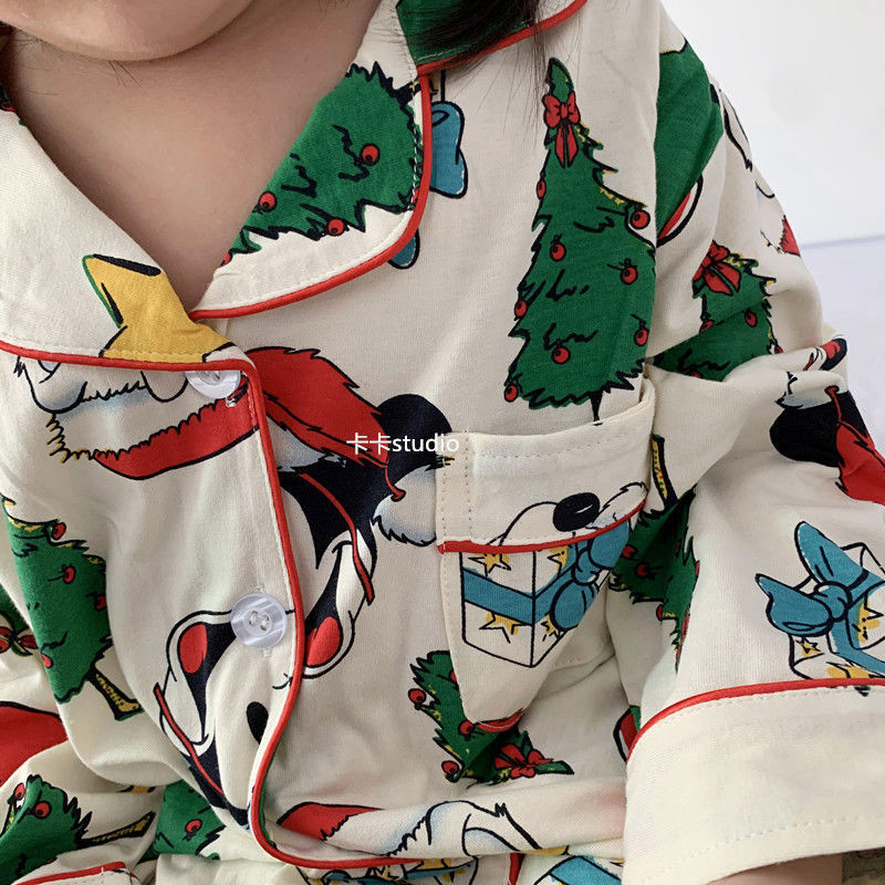 [W.M KIDS & BABY] พร้อมสต็อก & จัดส่งฟรีชายหญิงชุดนอนฤดูใบไม้ผลิฤดูใบไม้ร่วงเวอร์ชั่นเกาหลีสไตล์ใหม่เด็กแขนยาวต้นคริสต์มาสพิมพ์Homewearสูทขนาดกลางขนาดใหญ่เด็กสบายๆPa