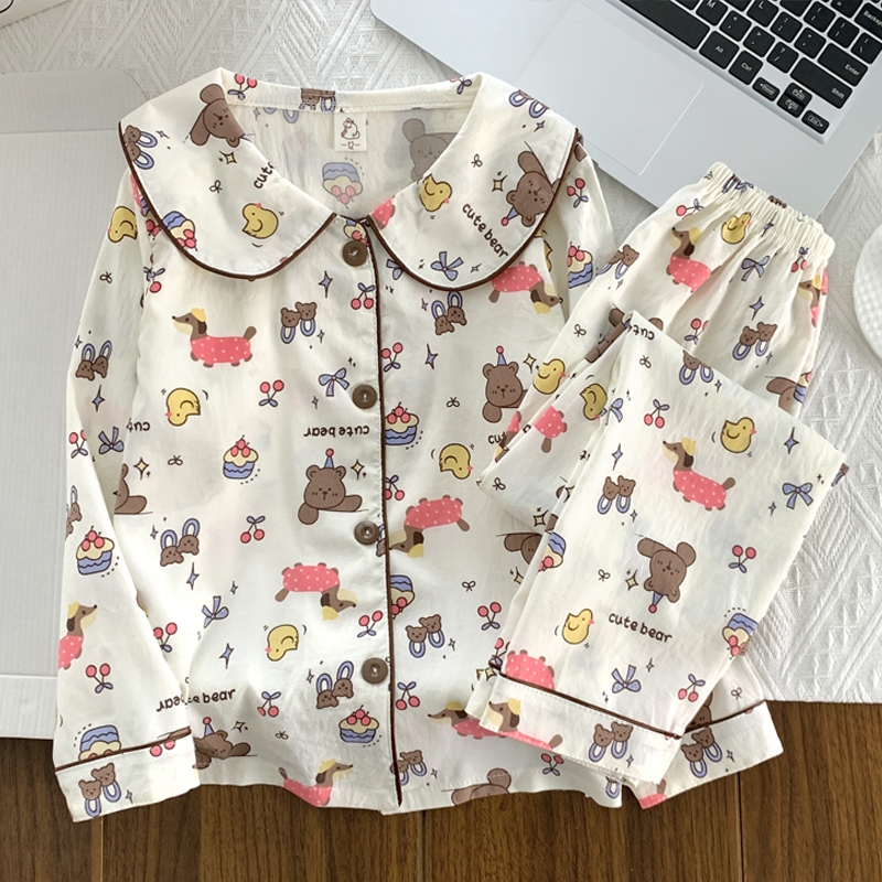 ??ใหม่น่ารักการ์ตูนเด็กผู้ชายชุดนอนแขนยาวกางเกงขายาวเด็กผู้หญิงชุดนอนเด็กชุดนอนการ์ตูนชุดนอน Swoan127