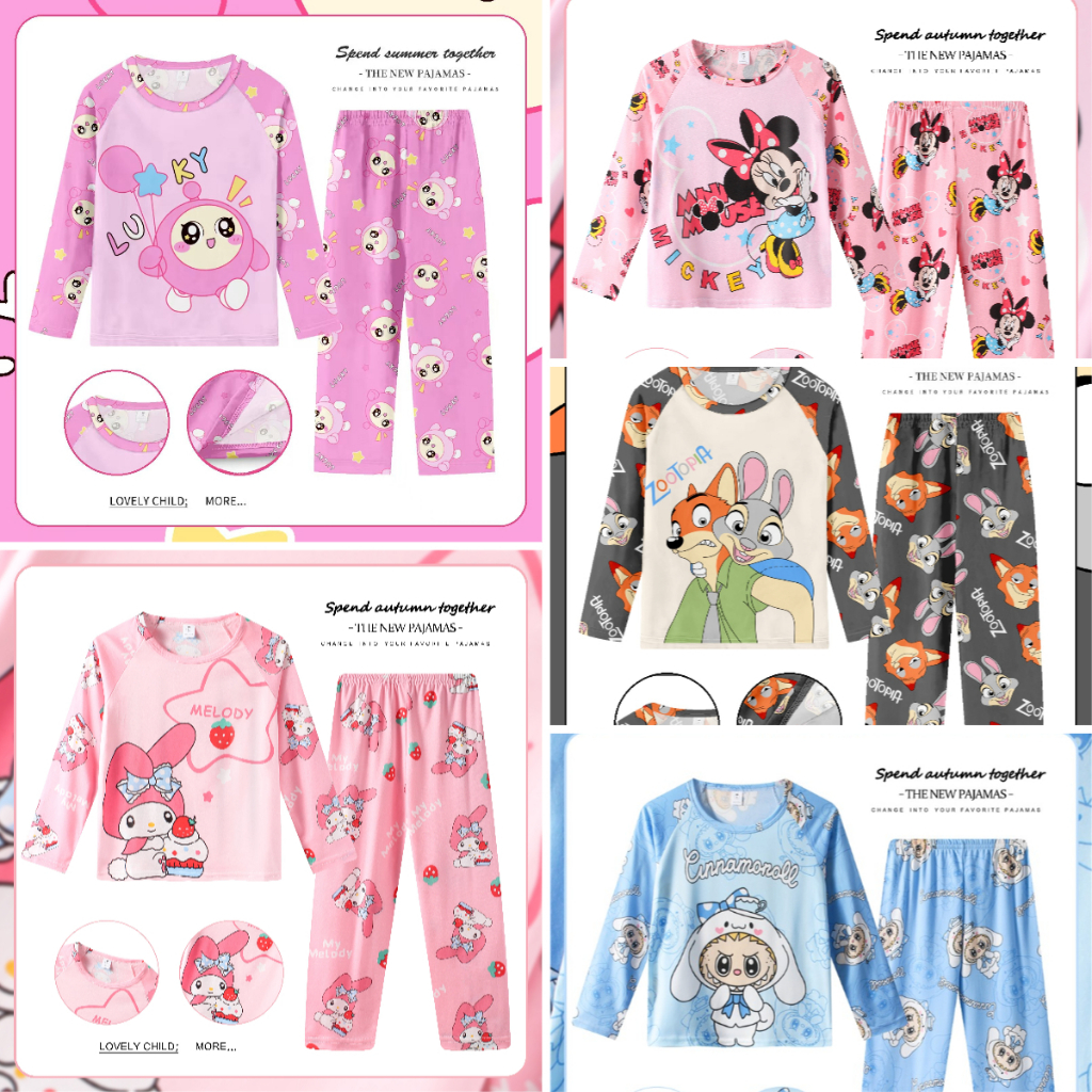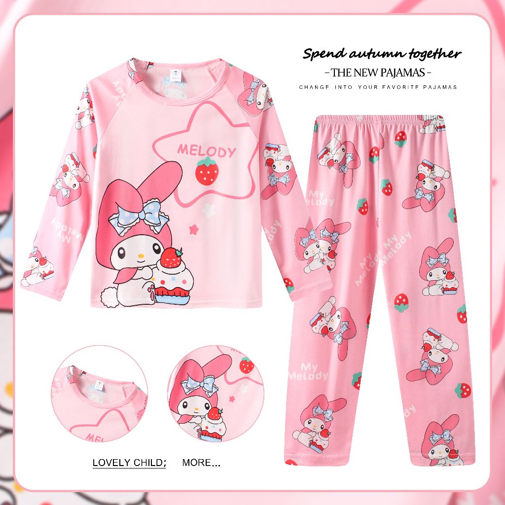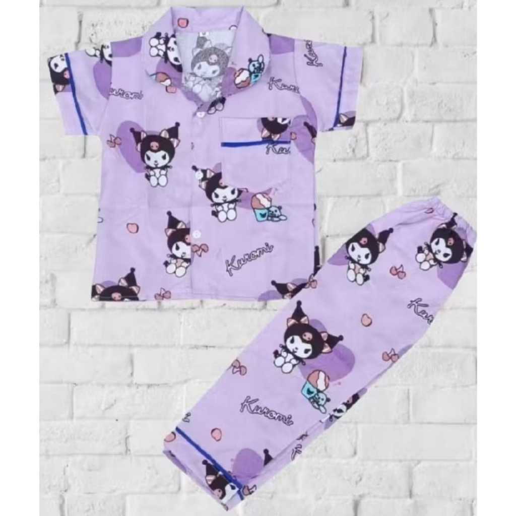UNGU ใหม่ล่าสุด CHILDRENS PAJAMAS/SLEEPWEAR สีม่วง KUROMI MOTIF AGES 1-10 ปี