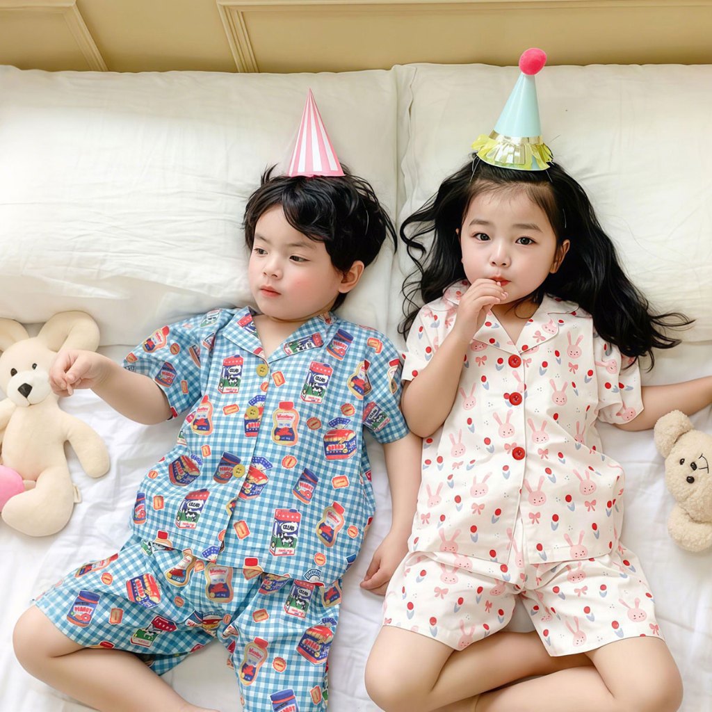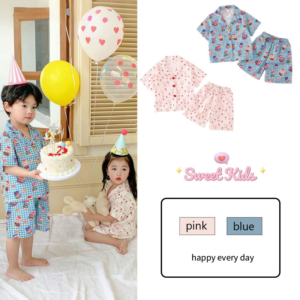 SweetKids พร้อมส่งจากกทม?ชุดนอนเด็ก?ชุดสองชิ้น เสื้อแขนสั้นกางเกงขาสั้น ลายการ์ตูนน่ารัก เนื้อผ้ามีความนุ่มลื่น ใส่สบายมาก ใส่ได้ทั้งเด็กผู้ชายและผู้หญิง