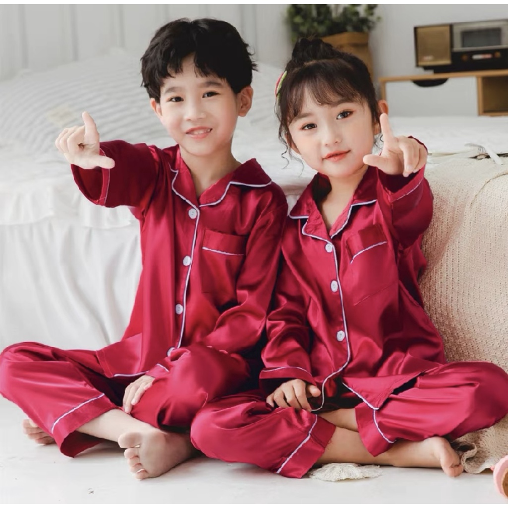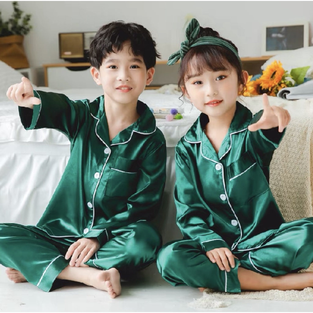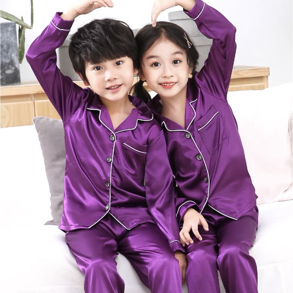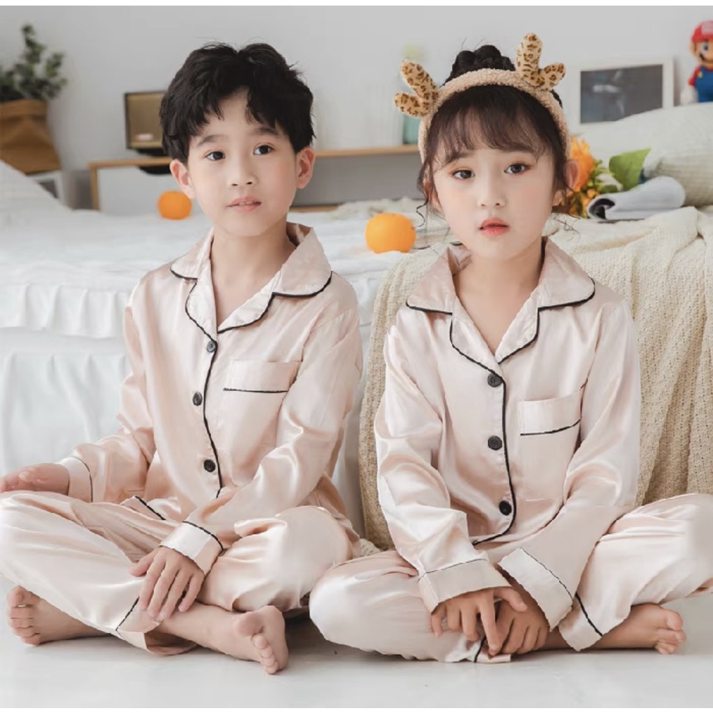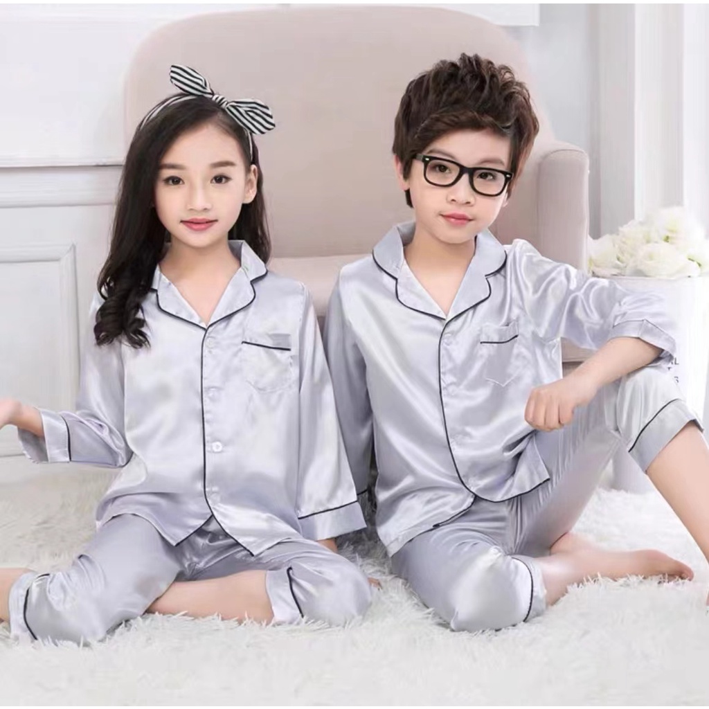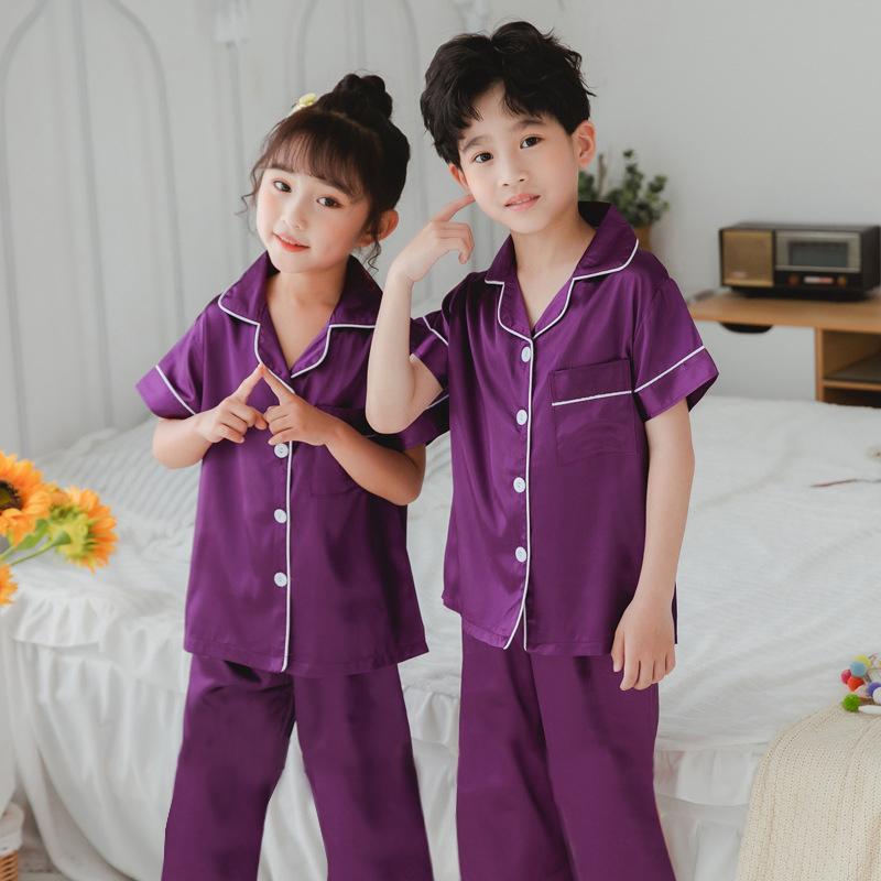 Molyy 3 ปี – 10 ปี ชุดนอนผ้าไหมเย็นสำหรับเด็กผู้ชายและเด็กผู้หญิง แขนสั้น กางเกงขายาว สวมใส่สบาย