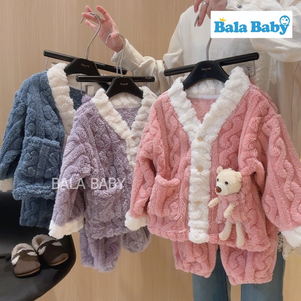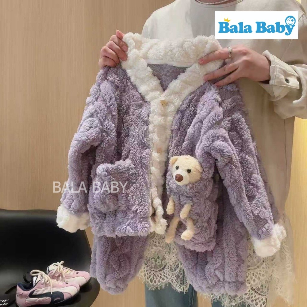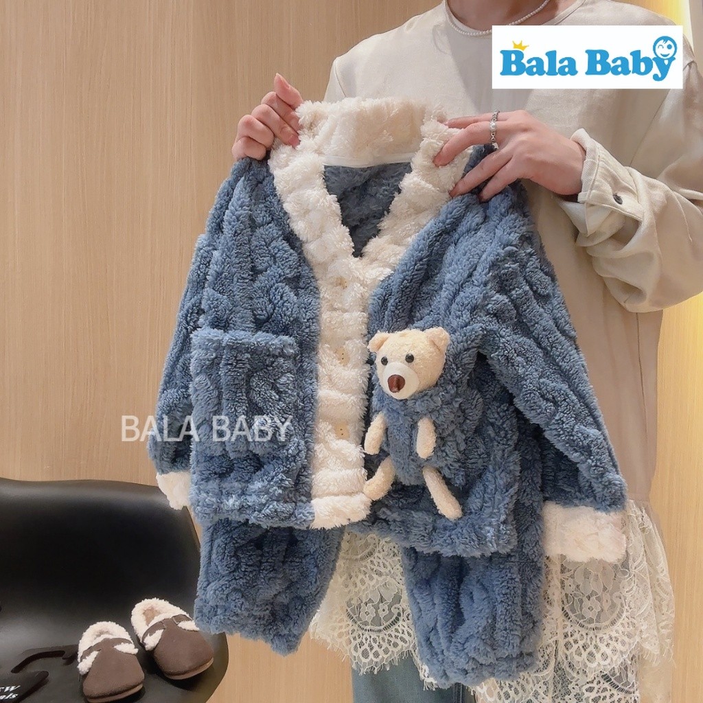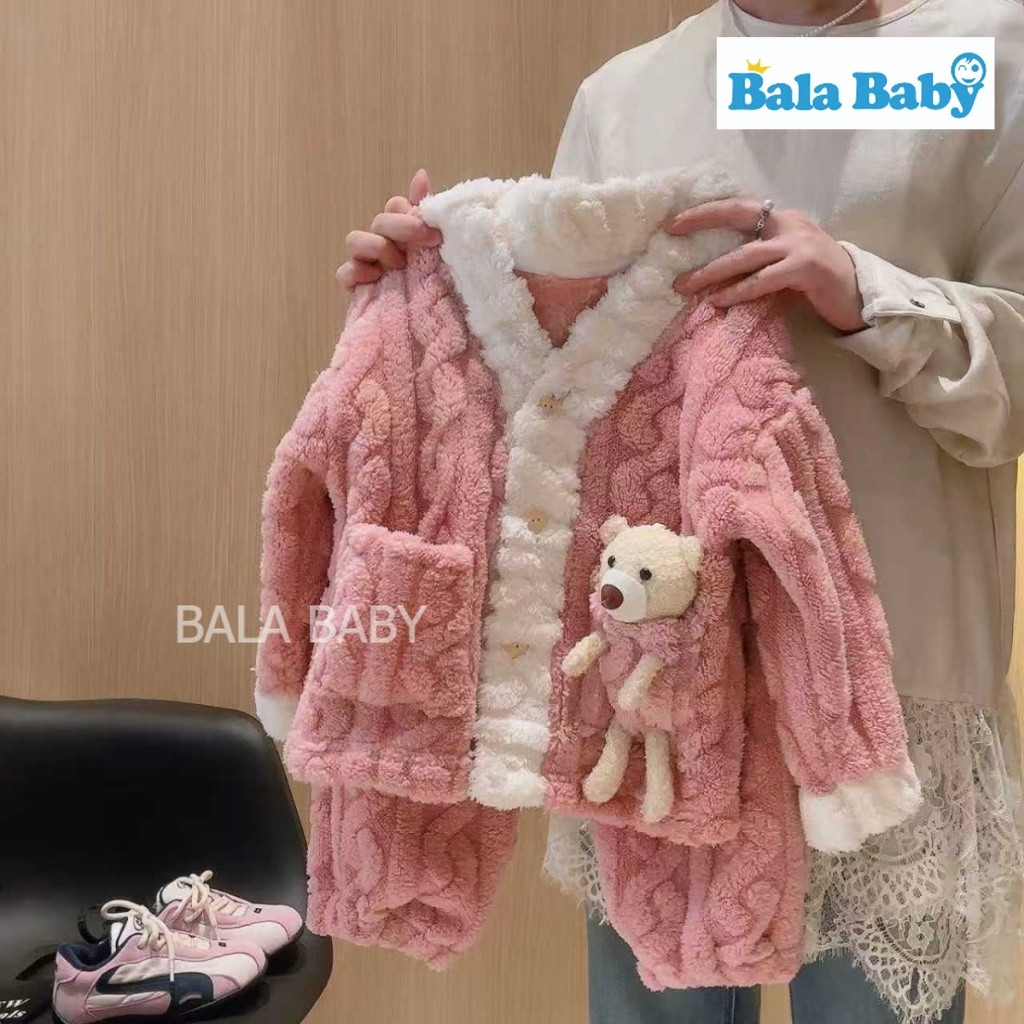 ชุดนอนกันหนาวเด็ก ชุดนอนเซ็ต 2 ชิ้น ชุดนอนเด็กผ้าสักหลาด บุขนแกะด้านใน ติดน้องหมี3D หนานุ่มอุ่น CXT23