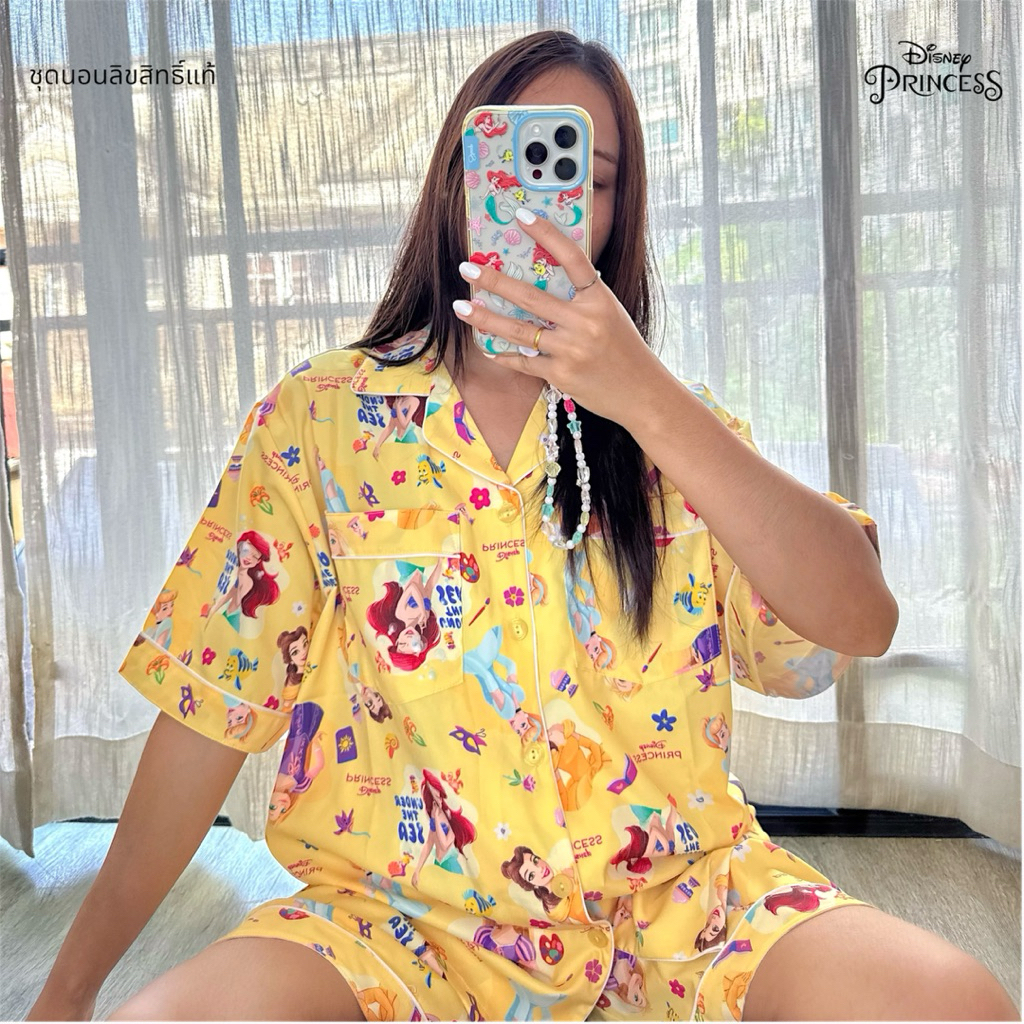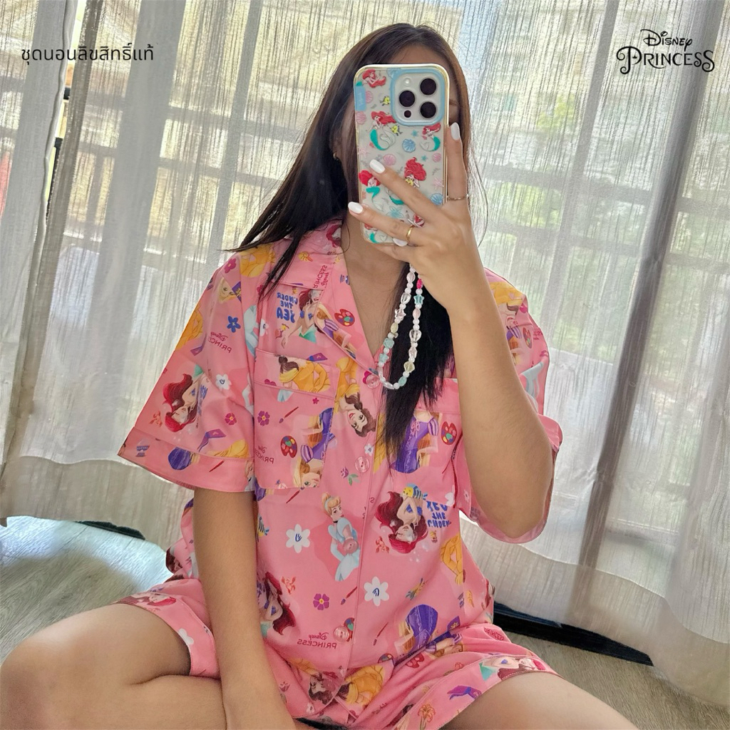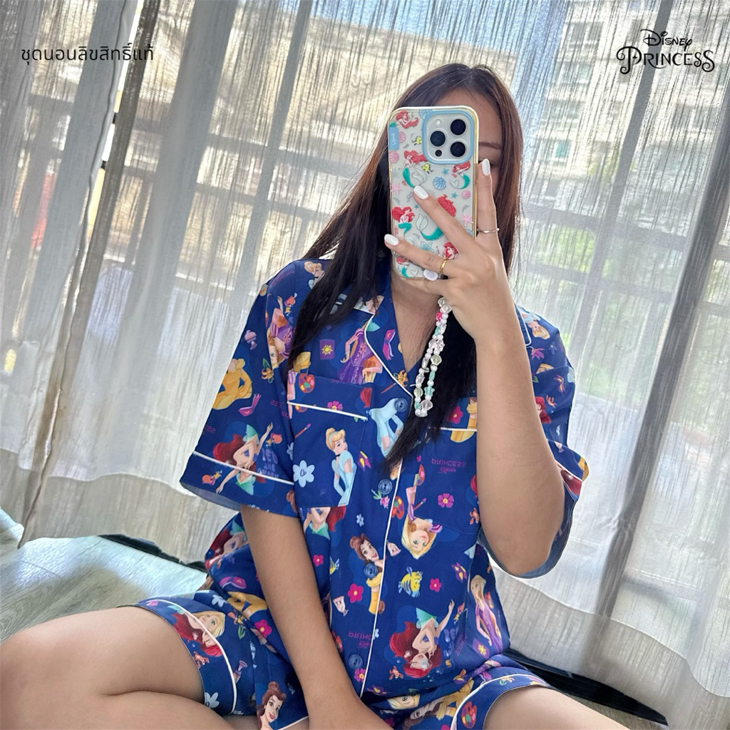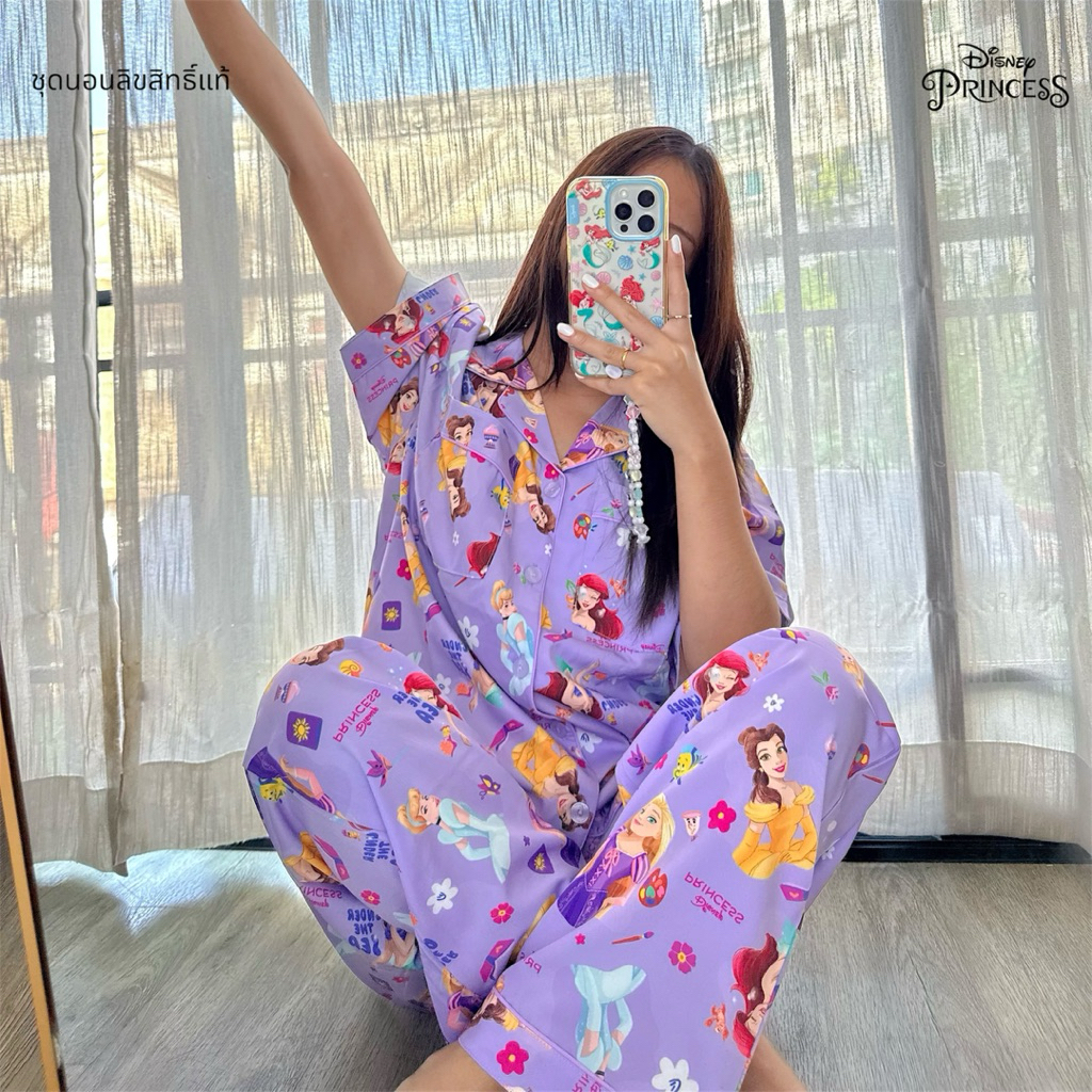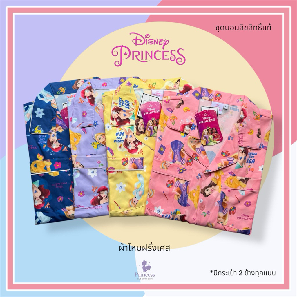 ชุดนอน ผ้าไหมอิตาลี่ เจ้าหญิง Disney Princess รอบอก 44” มีกระเป๋า 2 ข้างทุกแบบ ลิขสิทธิ์แท้