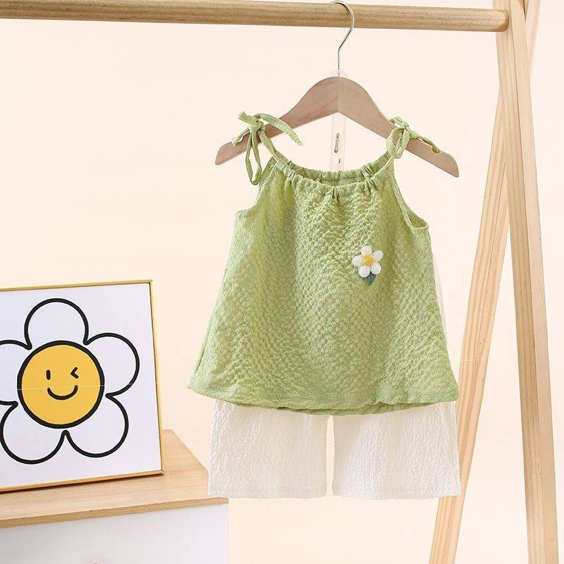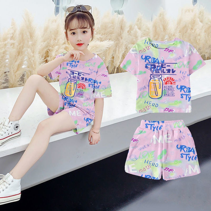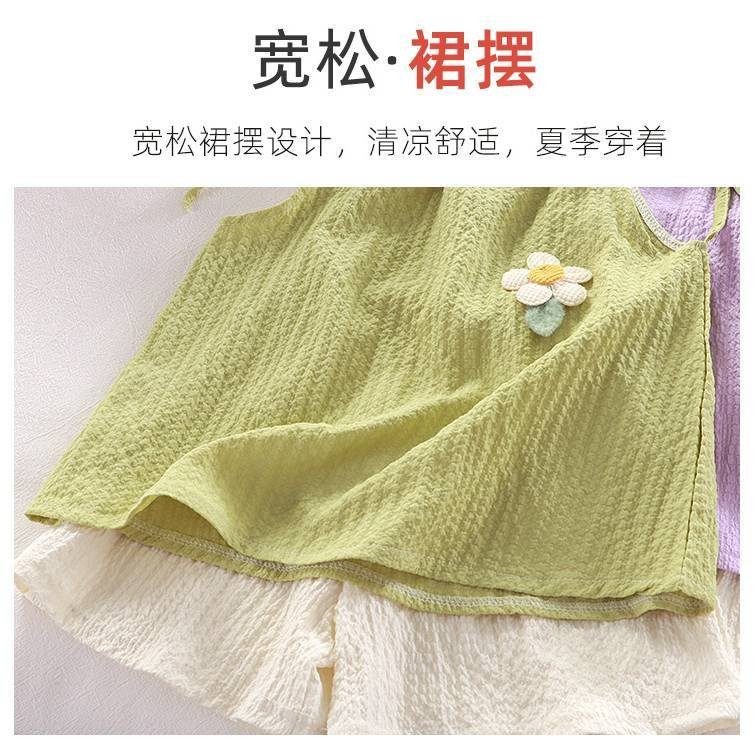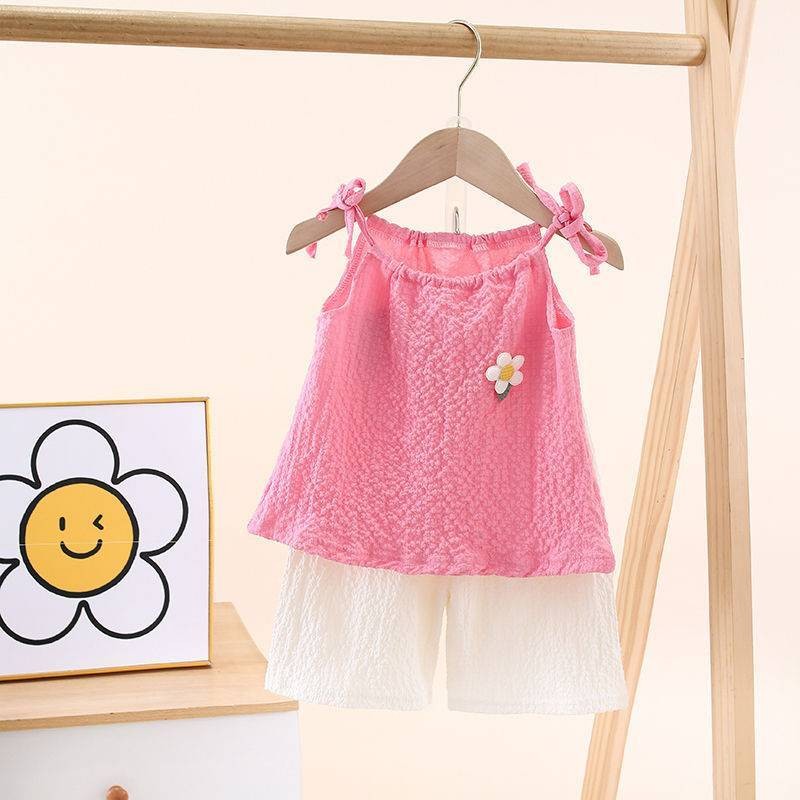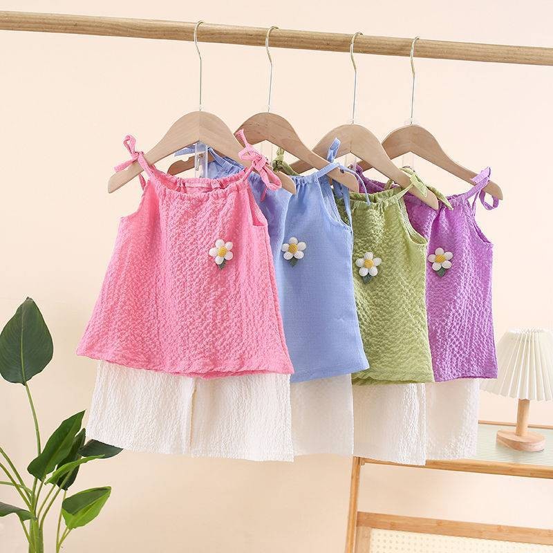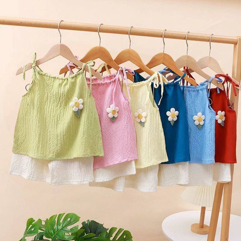 ?ชุดกีฬาเด็กผู้หญิงฤดูร้อน ใหม่สไตล์ต่างประเทศเด็กแขนกุดขากว้างกางเกงขาสั้นสาวน้อยแฟชั่นชุดสองชิ้น
