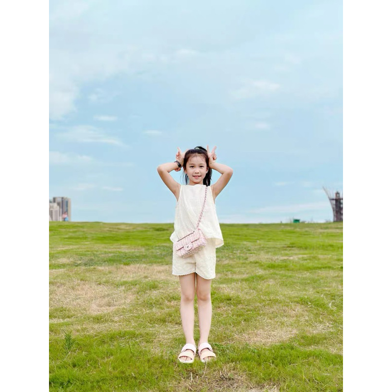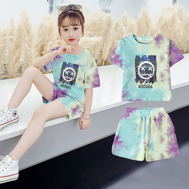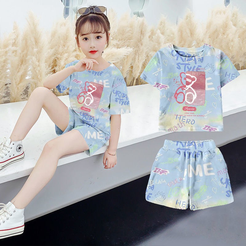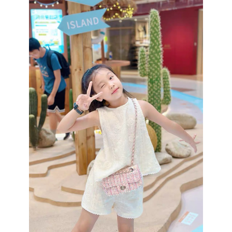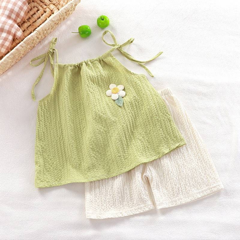 ?ชุดกีฬาเด็กผู้หญิงฤดูร้อน ใหม่สไตล์ต่างประเทศเด็กแขนกุดขากว้างกางเกงขาสั้นสาวน้อยแฟชั่นชุดสองชิ้น
