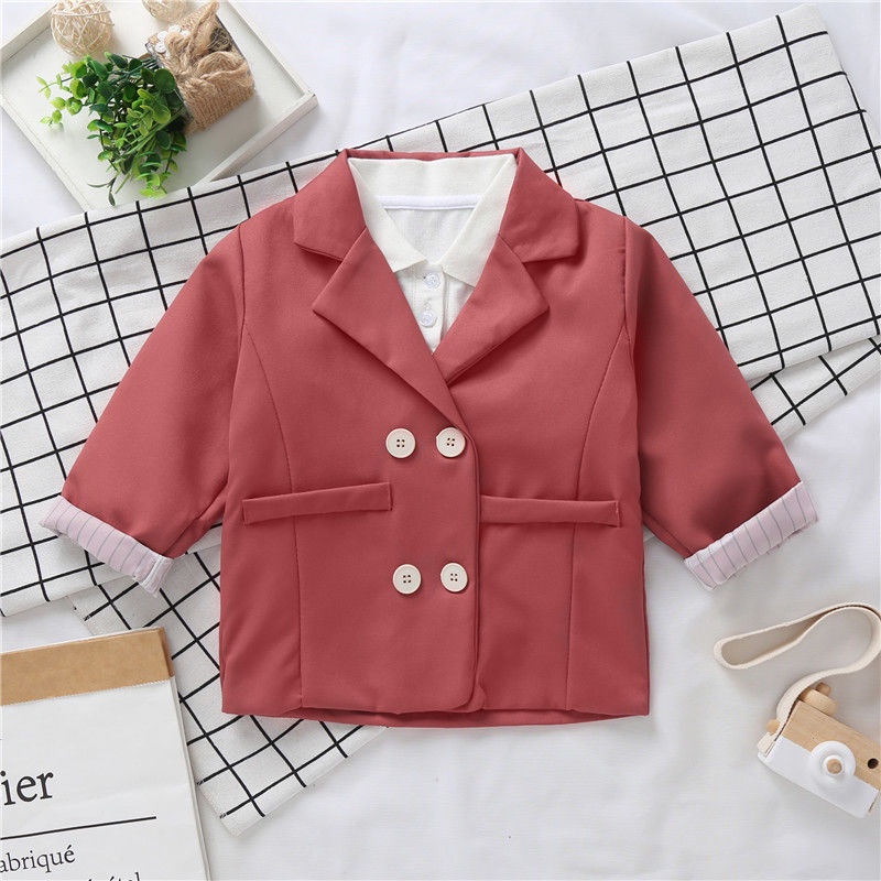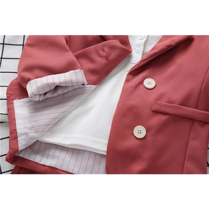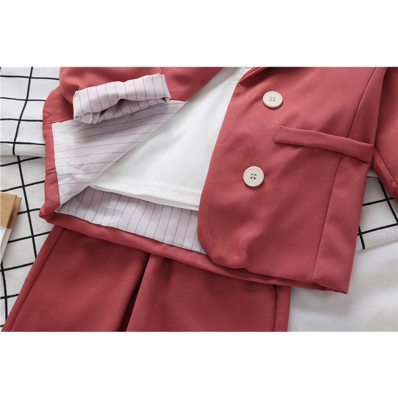 ?ชุดเซ็ตเด็กเล็ก เสื้อสูท+กางเกง สไตล์เกาหลี สีชมพู แฟชั่นสำหรับเด็ก 2-8 ขวบ