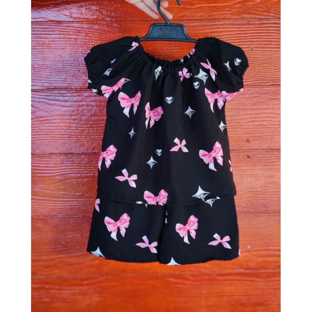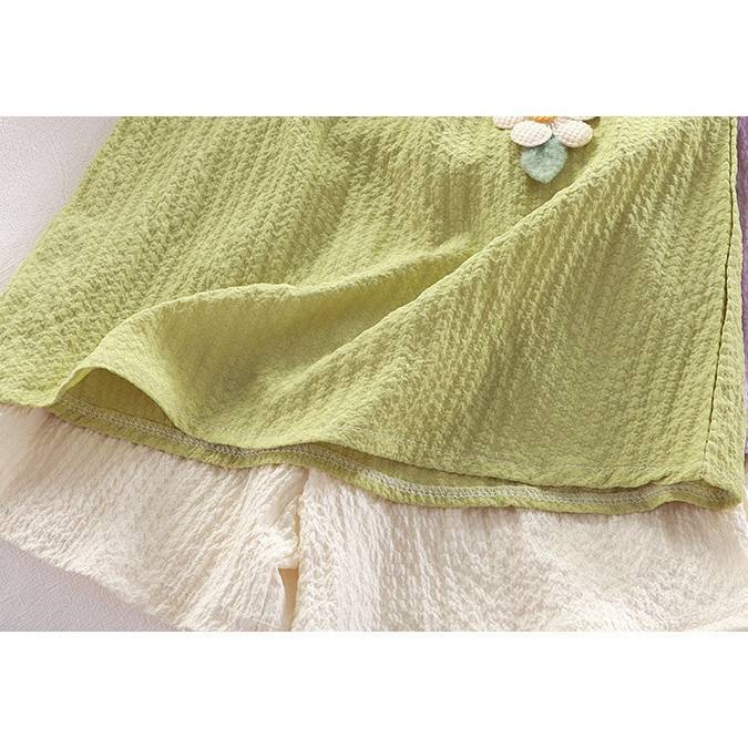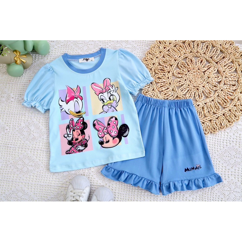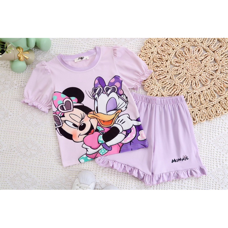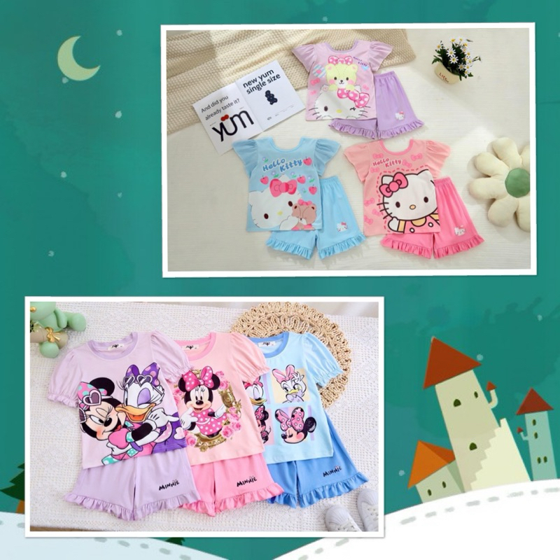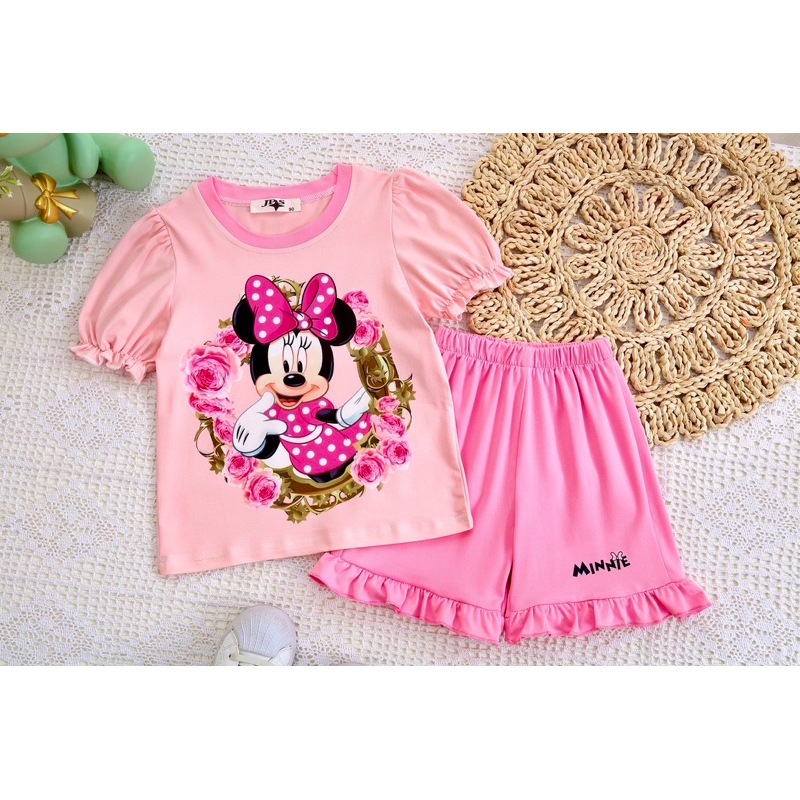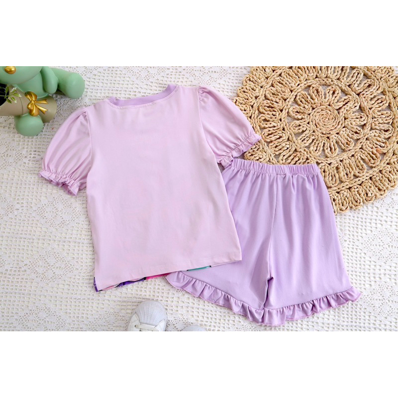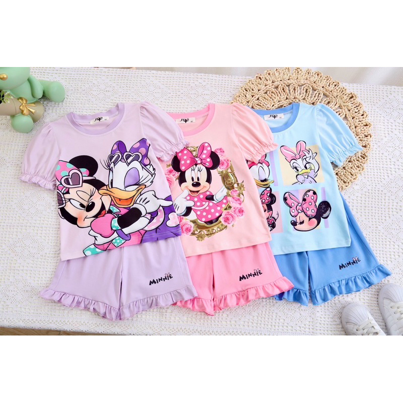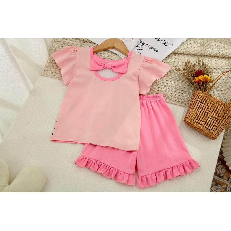 ‼️พร้อมส่งจากไทย‼️ชุดเซ็ตเด็กผู้หญิง แขนตุ๊กตา ขาสั้นแต่งระบาย ผ้านิ่ม ใส่สบาย