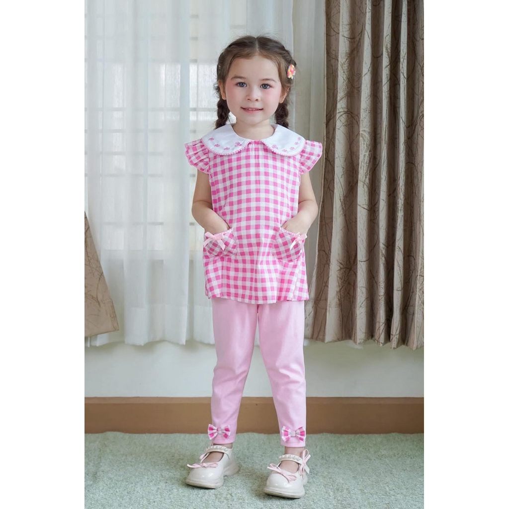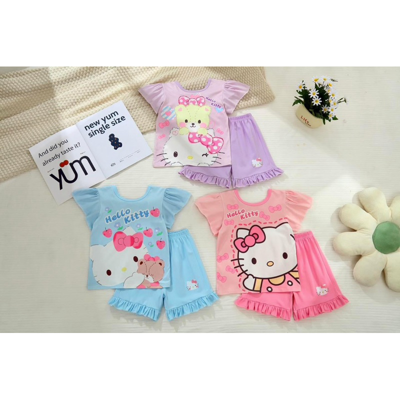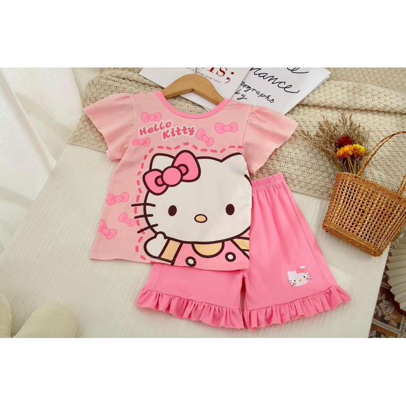 ??? ชุดเด็กผู้หญิง 2 ชิ้น ฤดูร้อน2025 ใหม่ล่าสุด Hello Kitty เสื้อแขนสั้น+กางเกงลายตาราง โบว์แต่งน่ารัก ผ้าฝ้ายสบาย #สินค้าแนะนำ