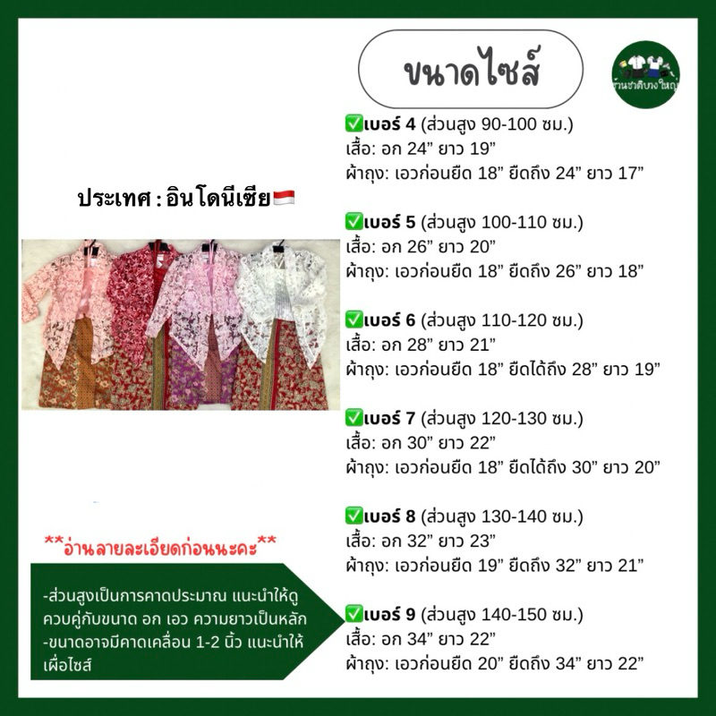 ?พร้อมส่งด่วน! จากนนทบุรี✨ ชุดอาเซียนเด็กผู้หญิง ประเทศอินโดนีเซีย ชุดภาคใต้ มาเลเซีย