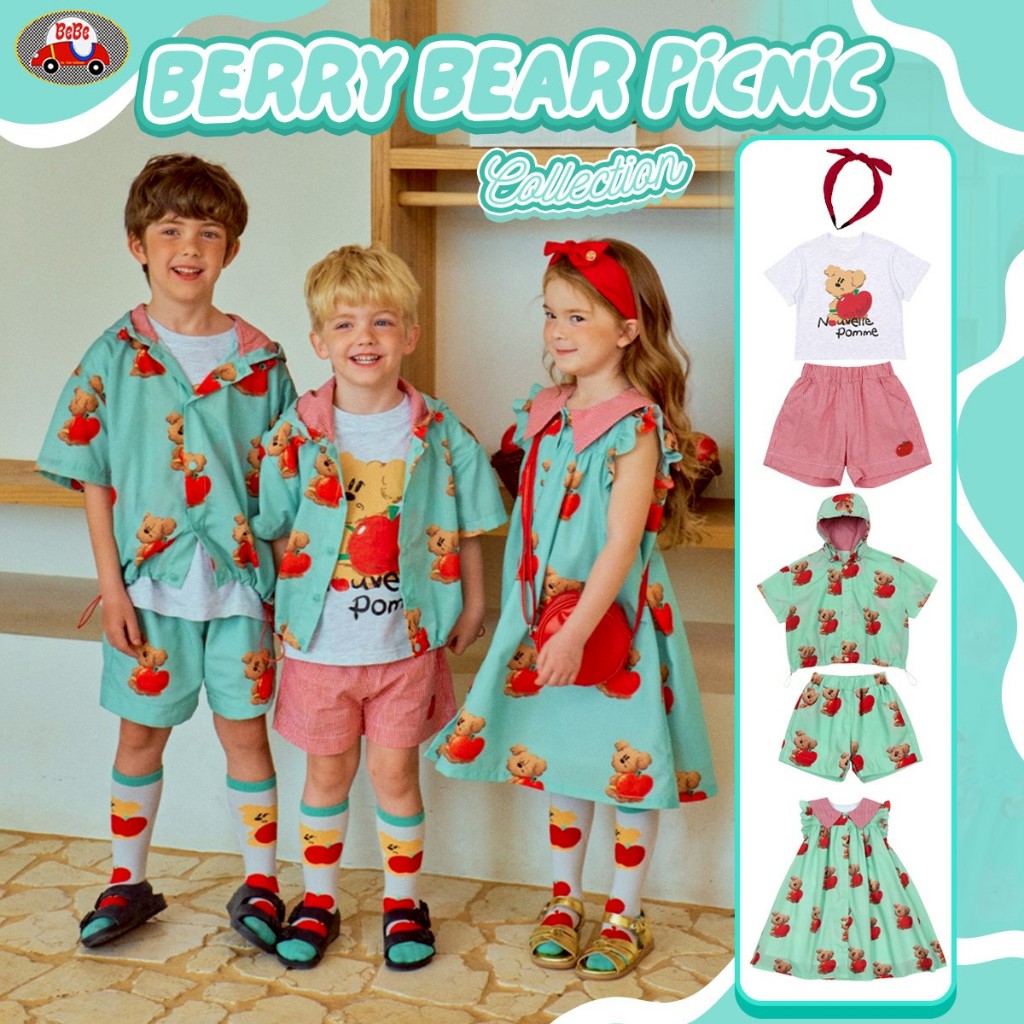 ??ส่งไวทันที ?? BeBe (mattburry ของแท้ นำเข้าเกาหลี ) Berry bear picnic ชุดเด็กผู้หญิง เด็กชาย คุณภาพแบรนด์เกาหลี