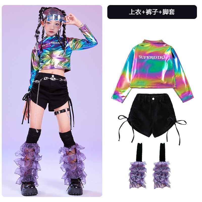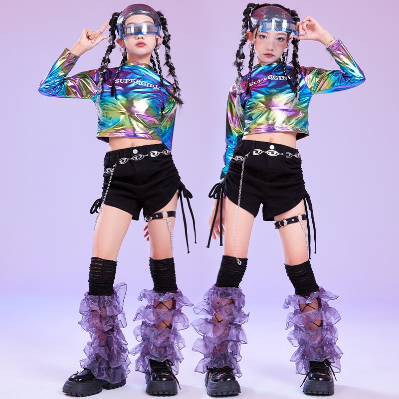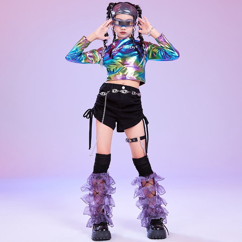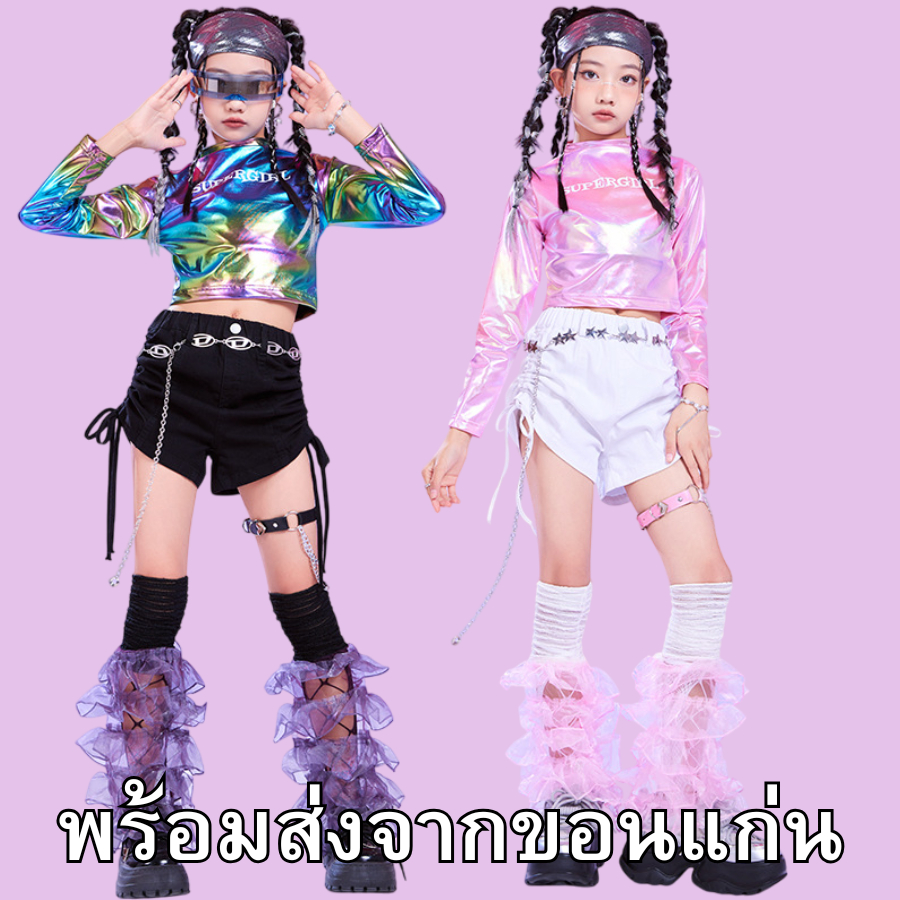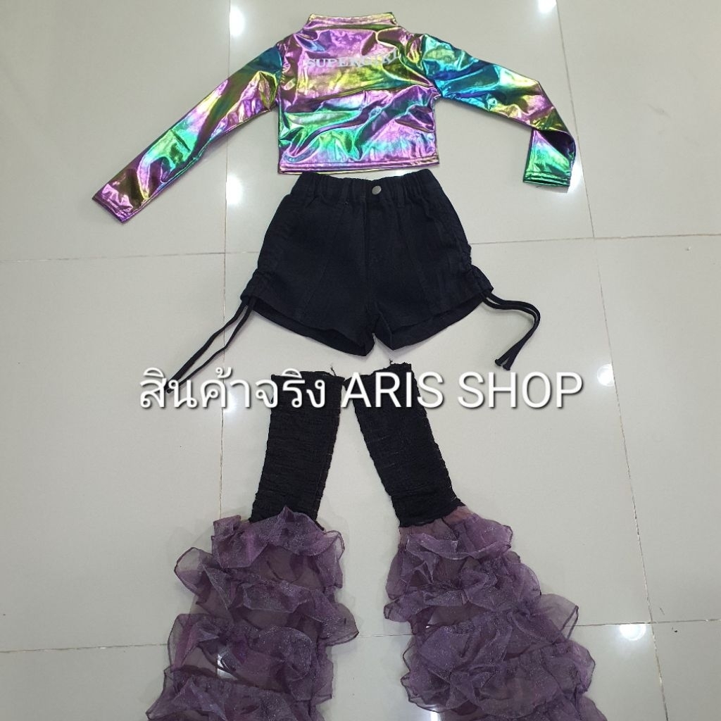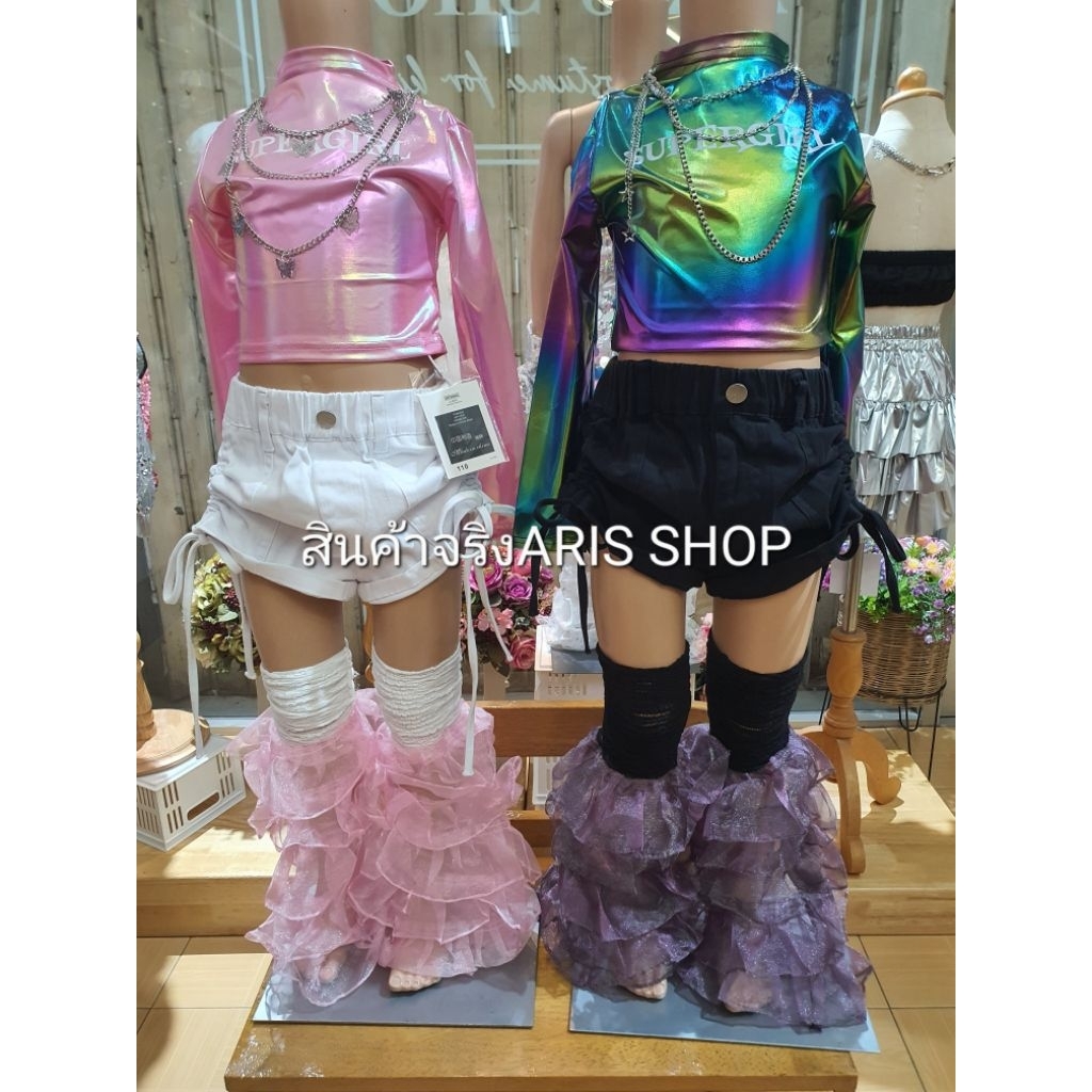 (??ส่งจากขอนแก่น) #ชุดแดนซ์ เซ็ตเสื้อสีเมทาลิค+กางเกงขาสั้น+ถุงเท้าเต้น ชุดDANCE ชุดHIPHOP ใส่เต้น ใส่โชว์ สวยสุด