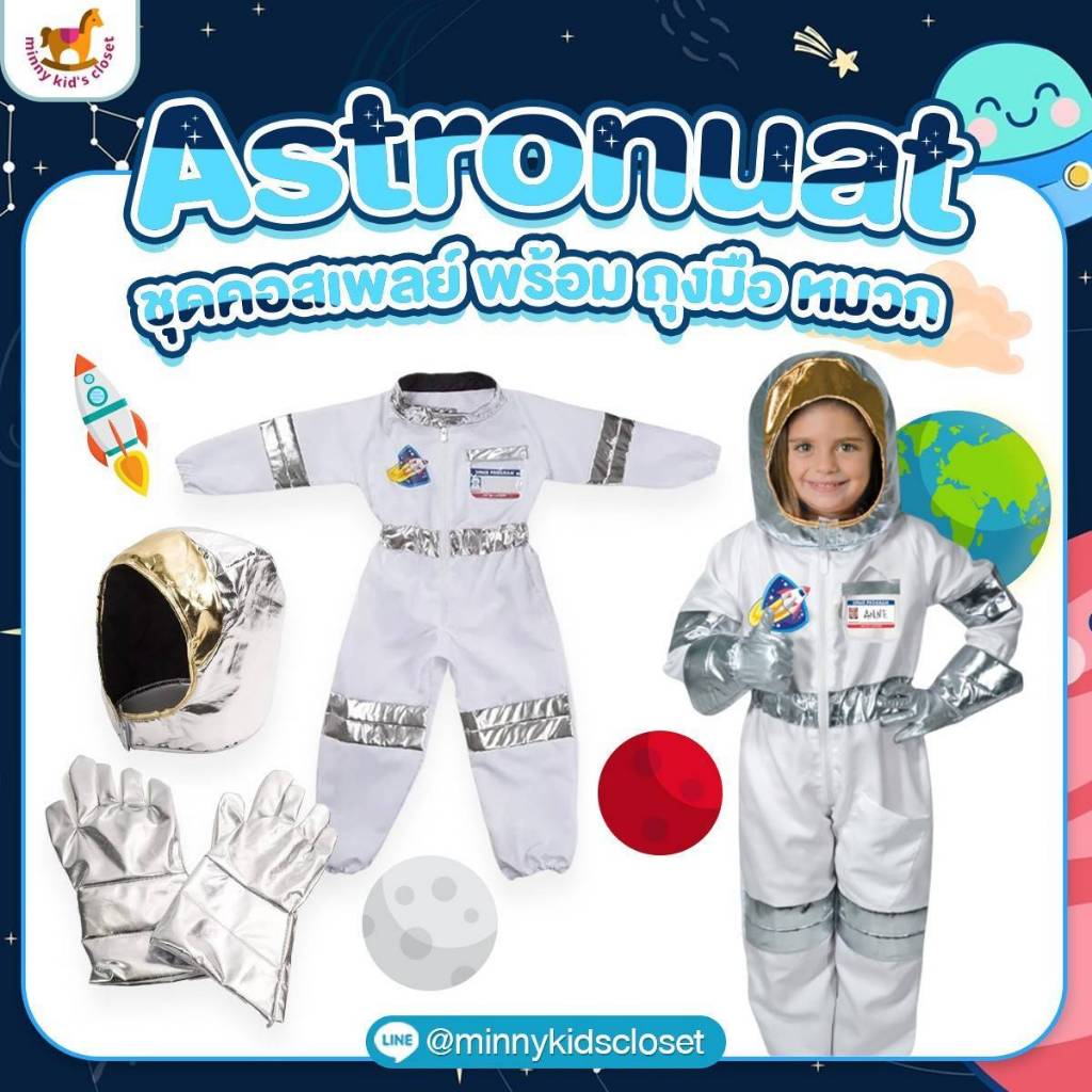 ??ส่งไวทันที ??เกรดห้าง Astronuat ชุดนักบินอวกาศเด็ก ชุดอาชีพเด็ก ชุดคอสเพลย์ พร้อม ถุงมือ หมวก ชุดเด็ก ชุดนักบิน