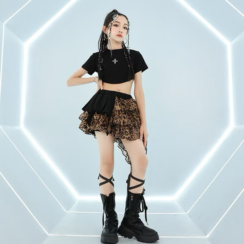 ?พร้อมส่งในไทย? ชุดนักเต้นฮิปฮอป / ชุดเต้นแจ๊สฮิปฮอป / ชุดฮิปปี้เด็ก กระโปรงแมงกระพรุน กระโปรงลายเสือ