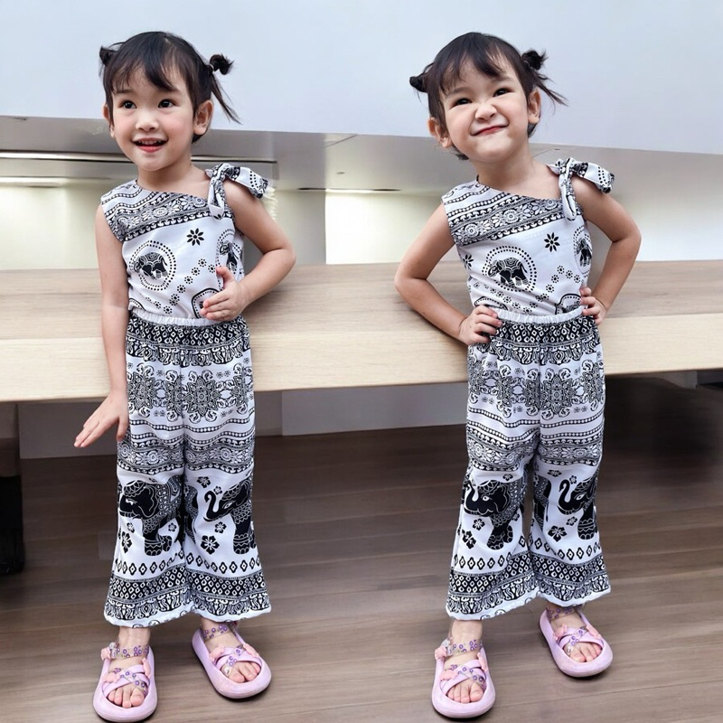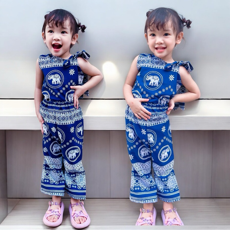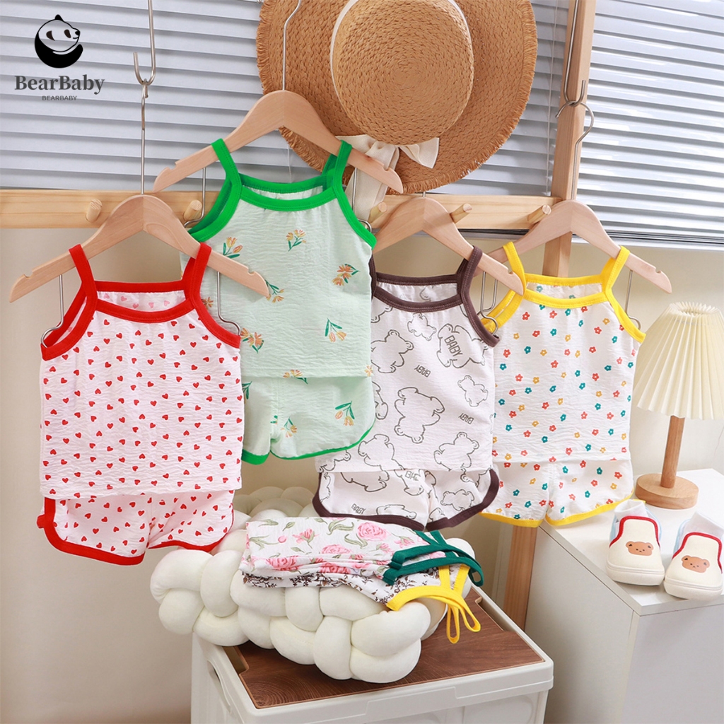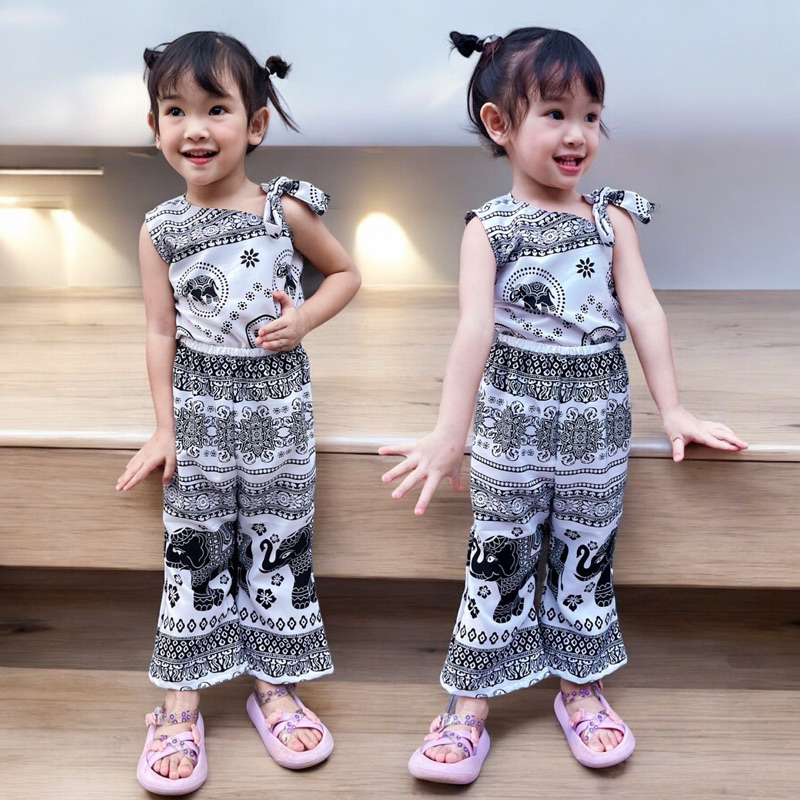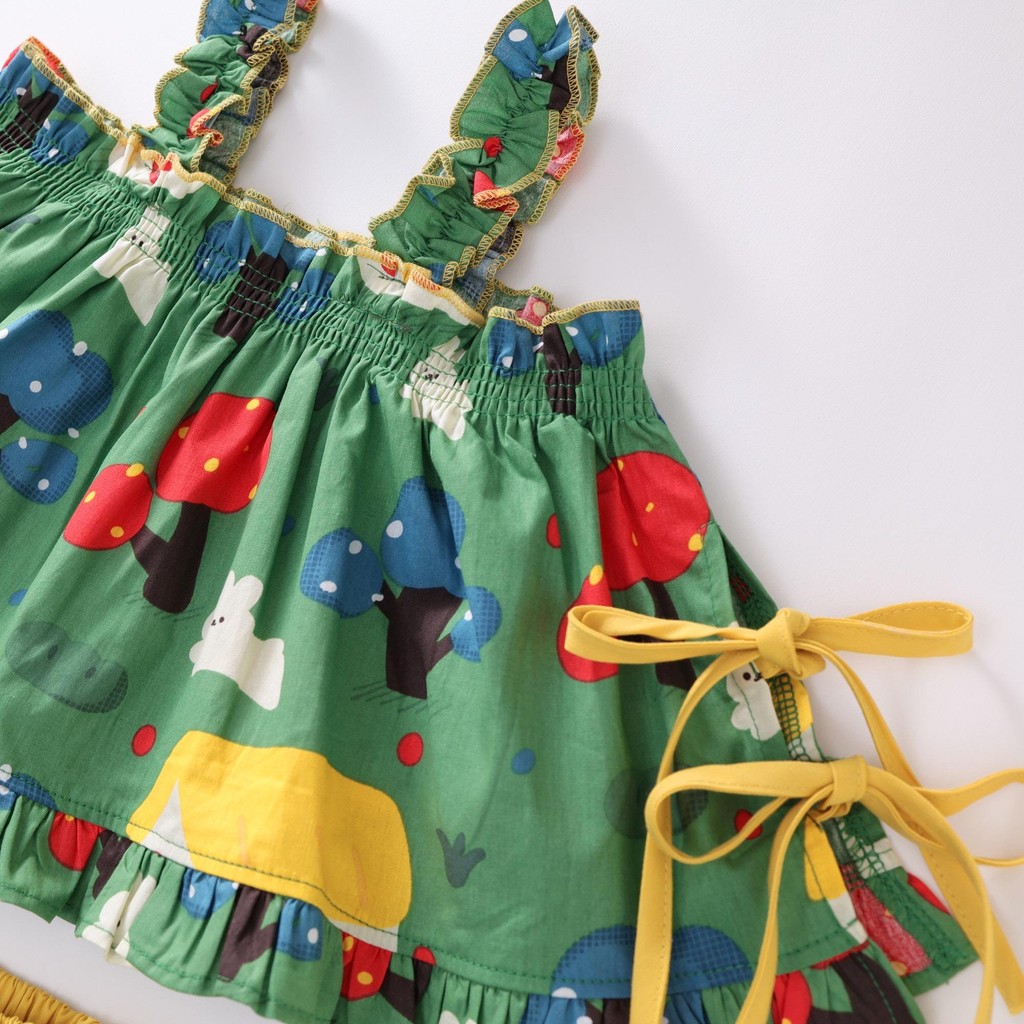 ชุดสายเดี่ยวเด็กหญิง ชุดเซทเด็ก 2ชิ้น ลายดอกไม้น่ารัก ทำขอบสี สีสันสดใส ไซส์80-110