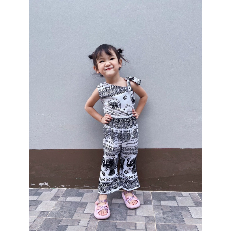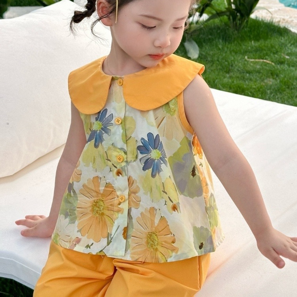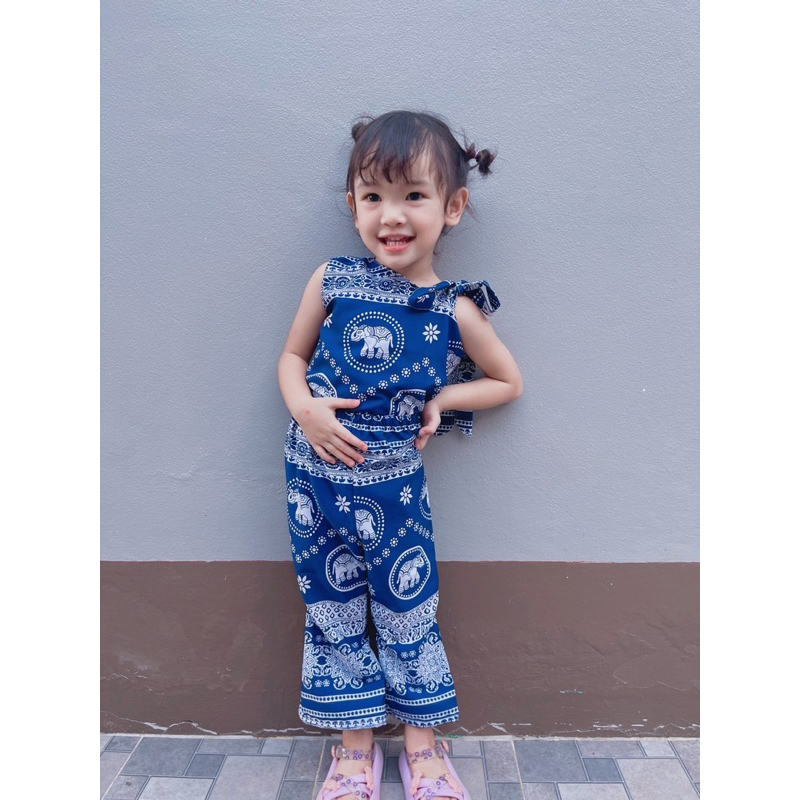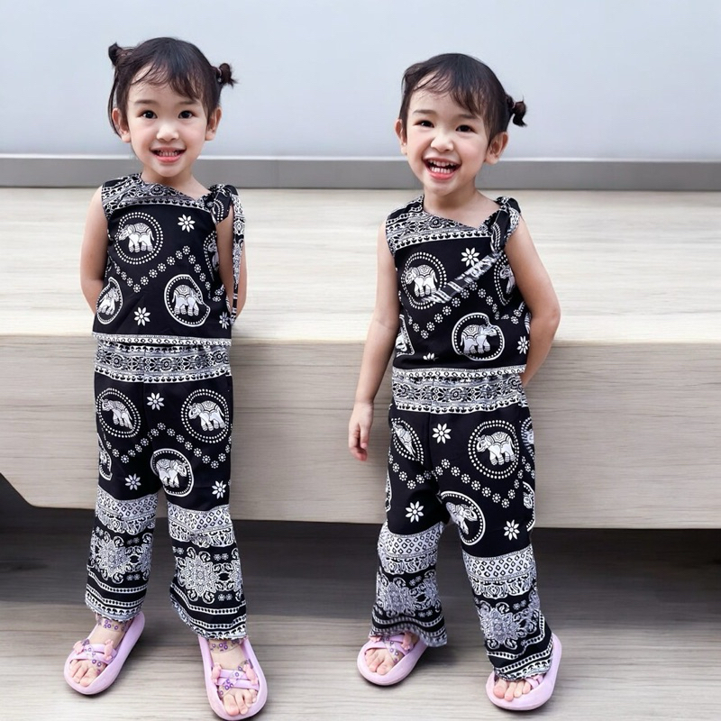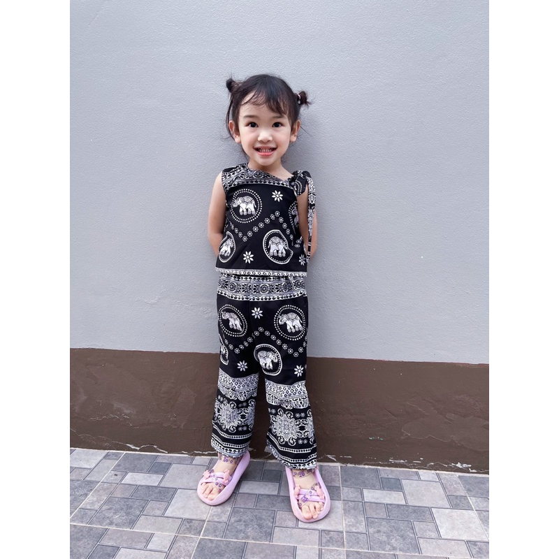 ชุดสายเดี่ยวเด็กหญิง ชุดเซทเด็ก 2ชิ้น ลายดอกไม้น่ารัก ทำขอบสี สีสันสดใส ไซส์80-110