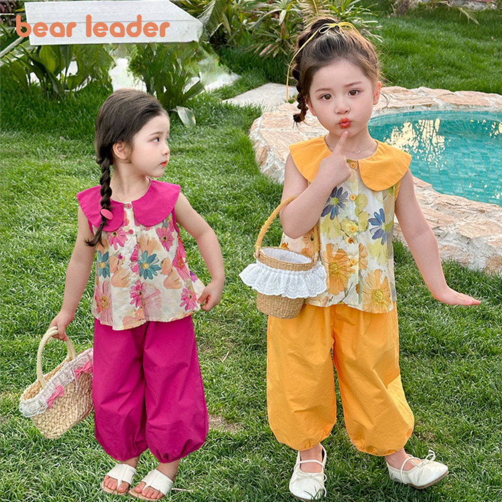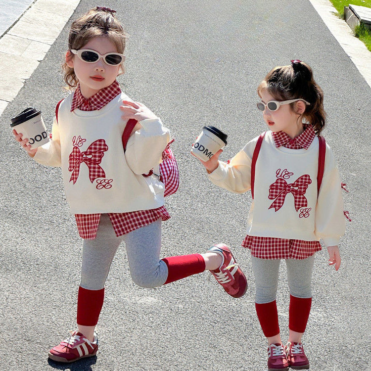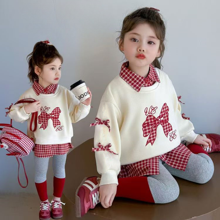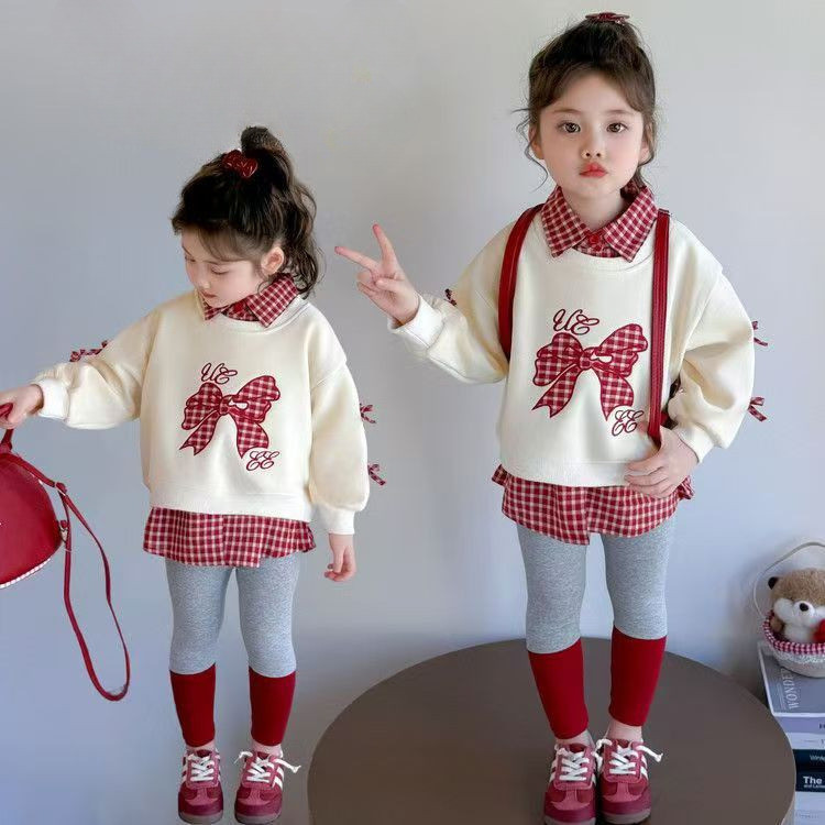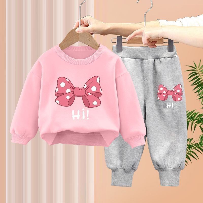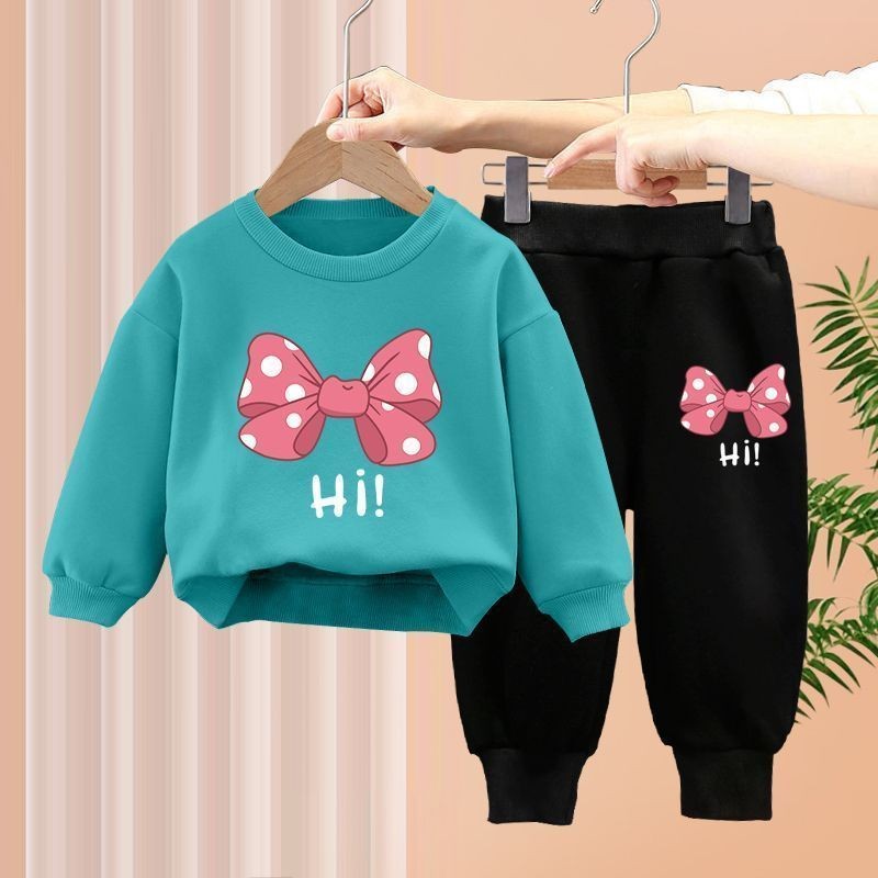 ชุดสองชิ้นสำหรับทารกหญิง ออกแบบมาพร้อมโบว์ด้านบนและเลกกิ้ง สไตล์เกาหลีสำหรับเด็กอายุ 1-7 ปี