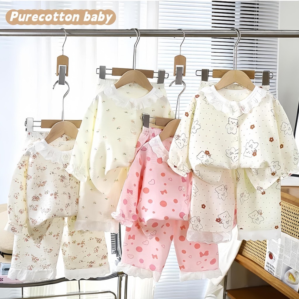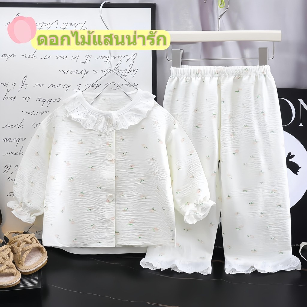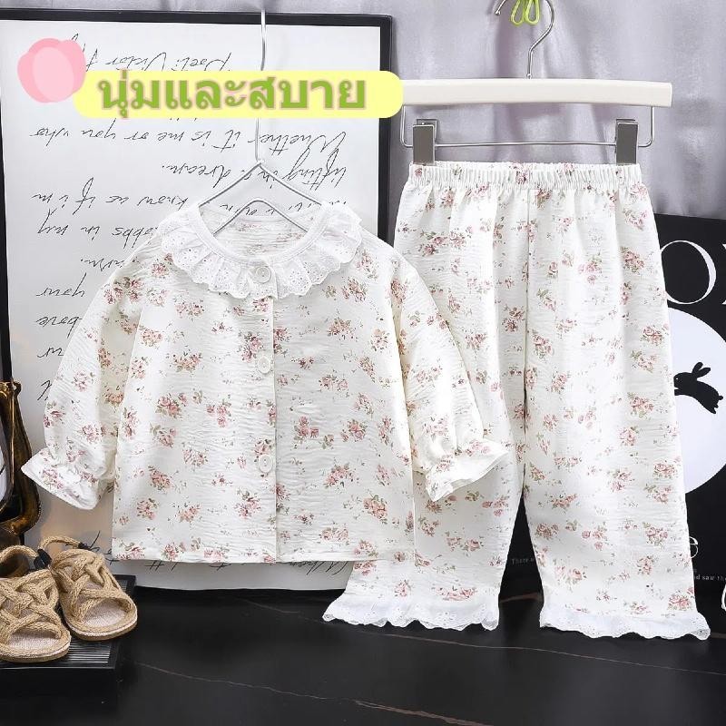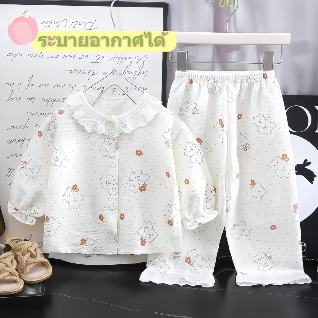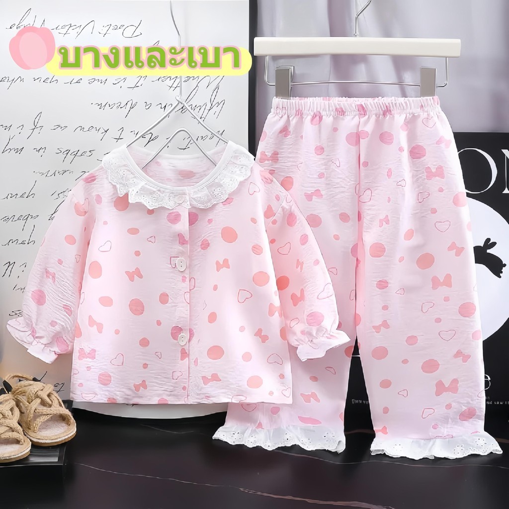 ชุดนอนแขนยาวสำหรับเด็กผู้หญิง ลวดลายน่ารักสดใส ระบายอากาศได้ดี กันยุง ใส่สบาย ไม่อับชื้น มีให้เลือกหลายแบบ