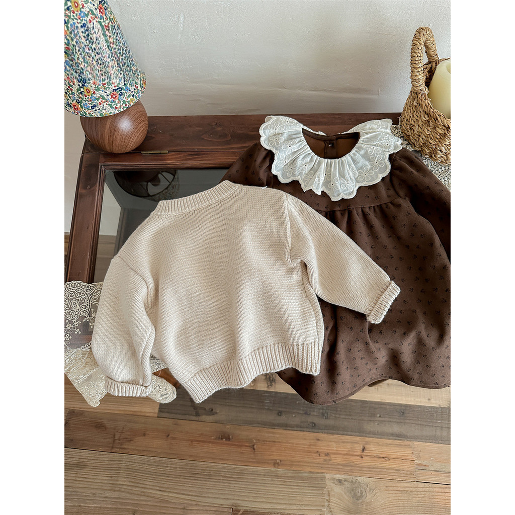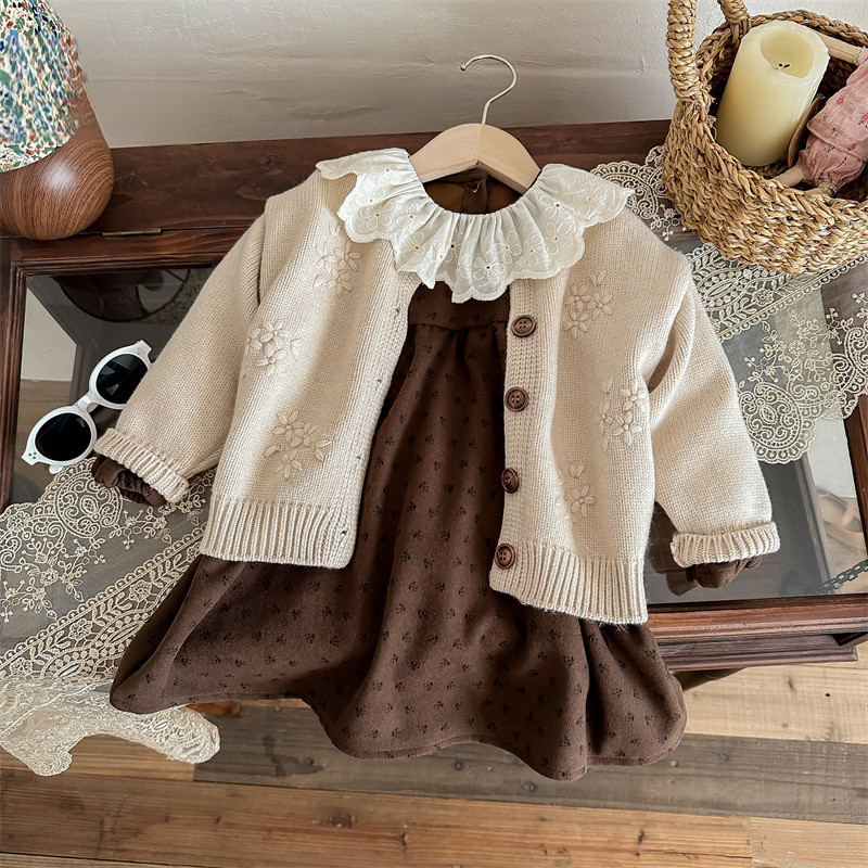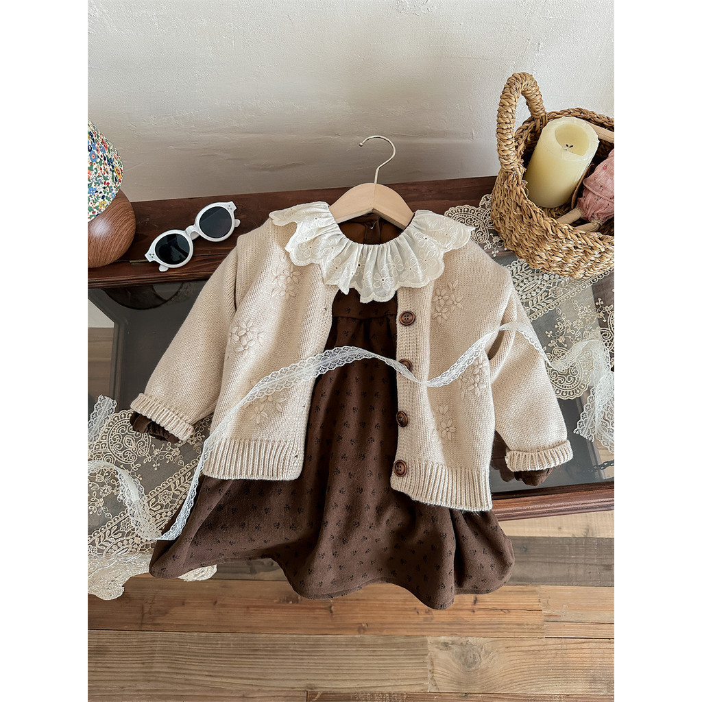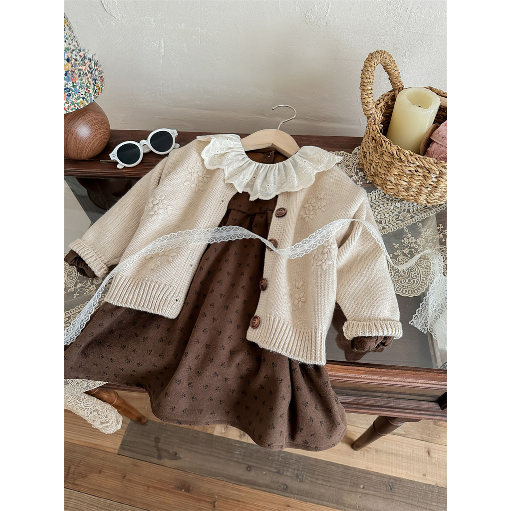 ชุดสูทเกาหลีย้อนยุคสำหรับเด็กหญิง ทำจากโครเชต์ พร้อมคาร์ดิแกน เหมาะสำหรับฤดูใบไม้ร่วง