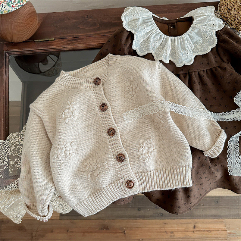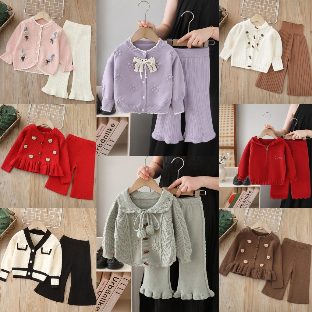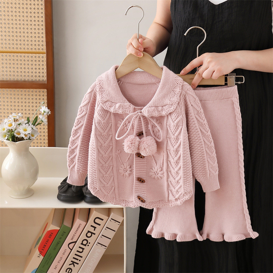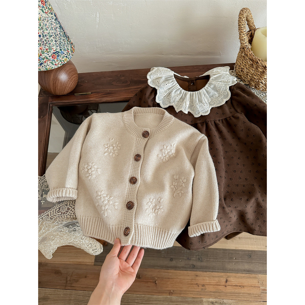 ชุดสูทเกาหลีย้อนยุคสำหรับเด็กหญิง ทำจากโครเชต์ พร้อมคาร์ดิแกน เหมาะสำหรับฤดูใบไม้ร่วง